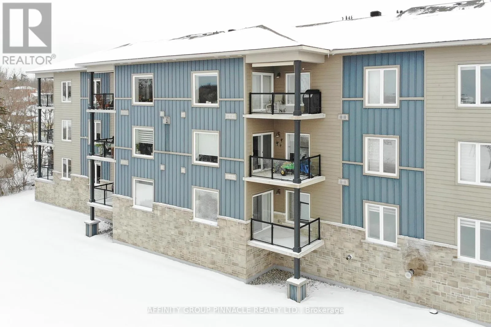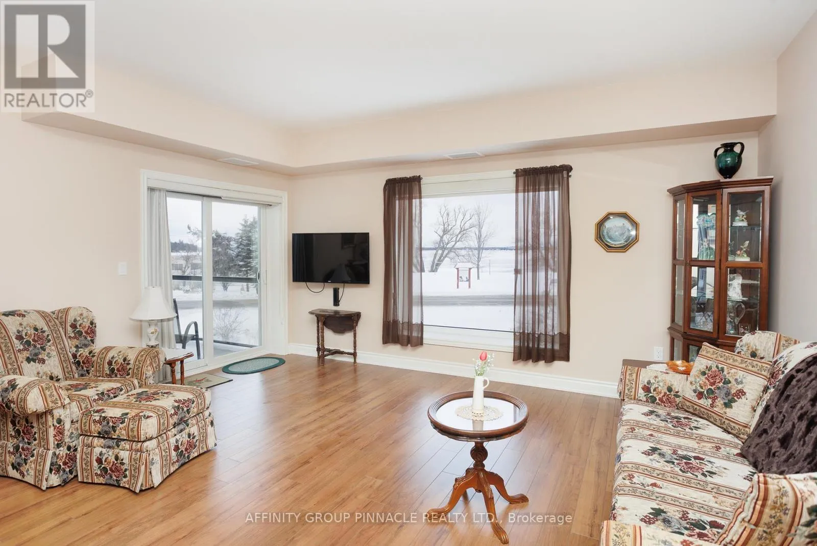 Francis St W/Colborne 2 bedroom, 2 bathroom condo in a quiet and well maintained building. This affordable main floor unit is perfect for retirees, seniors and those with mobility issues. Offering 1080 square feet of well maintained open concept living with beautiful views from the kitchen and living area over Cameron Lake. Wake up in your primary suite with an ensuite bathroom, walk in closet and more lakeside views. Ensuite laundry located in the utility room and an 80 square foot balcony is a great place for bbqing, and enjoying warmer weather days and beautiful Cameron Lake sunsets! This unit also includes one private locker and one underground parking space. Excellent location with a public beach and The Victoria Rail Trail just outside your door which is perfect for walking and cycling, and just a short walk to downtown Fenelon Falls. Don't miss this great opportunity! (id:27476)