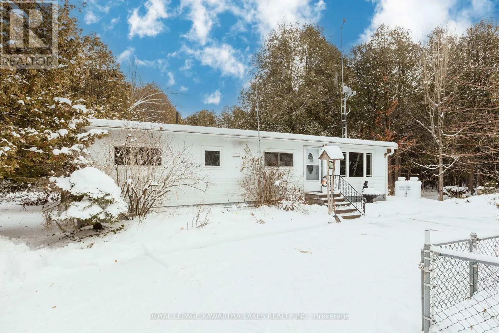 CR 121 N of Fenelon Falls Well kept bungalow with a detached garage on 10.8 acres backing onto the Victoria Rail Trail for snowmobiles, ATVs, and walking. Very private setting, tucked away off a quiet road and surrounded by lush forest. 1000 sqft 2 bedroom 1 bathroom home with a paved driveway canopied by trees. Propane furnace 2024, septic 1974, shingles 2011, 200 amp electrical, drilled well aprx 5 GPM. 10 minutes north of Fenelon Falls. Yearly road maintenance fee is $150. (id:27476)