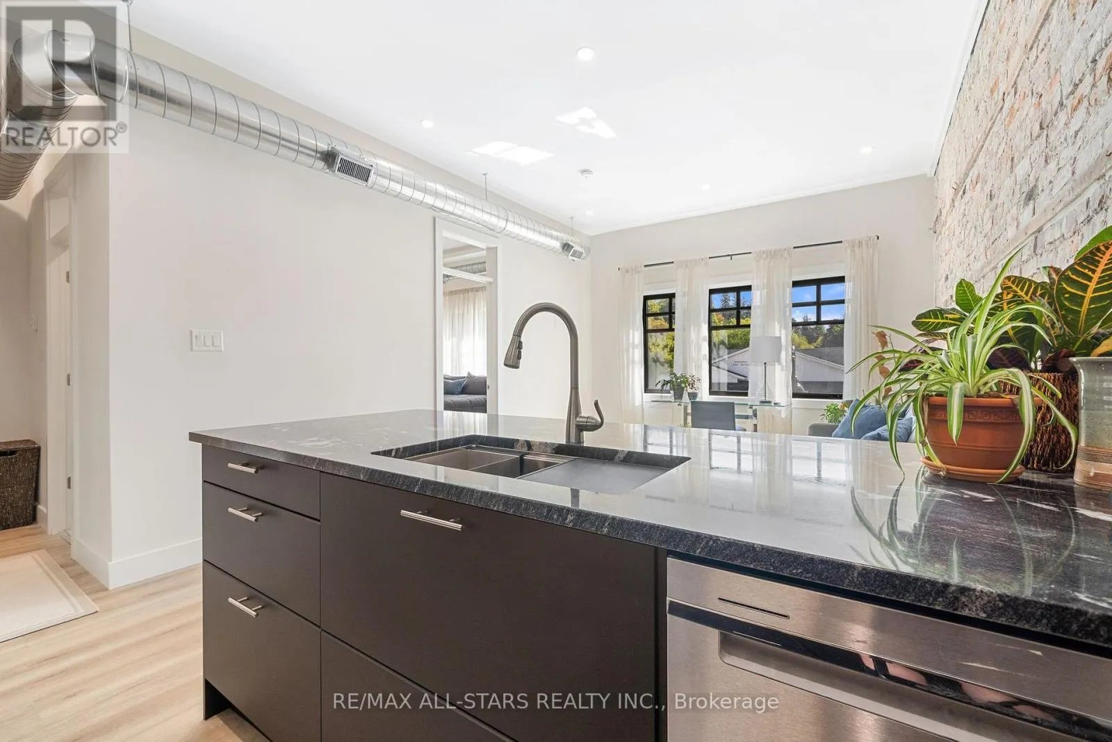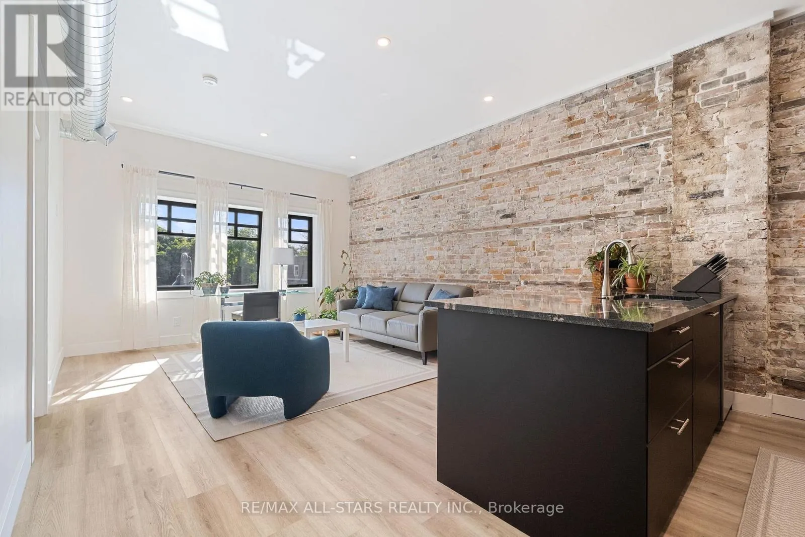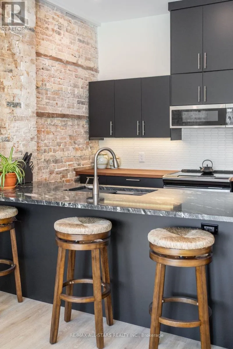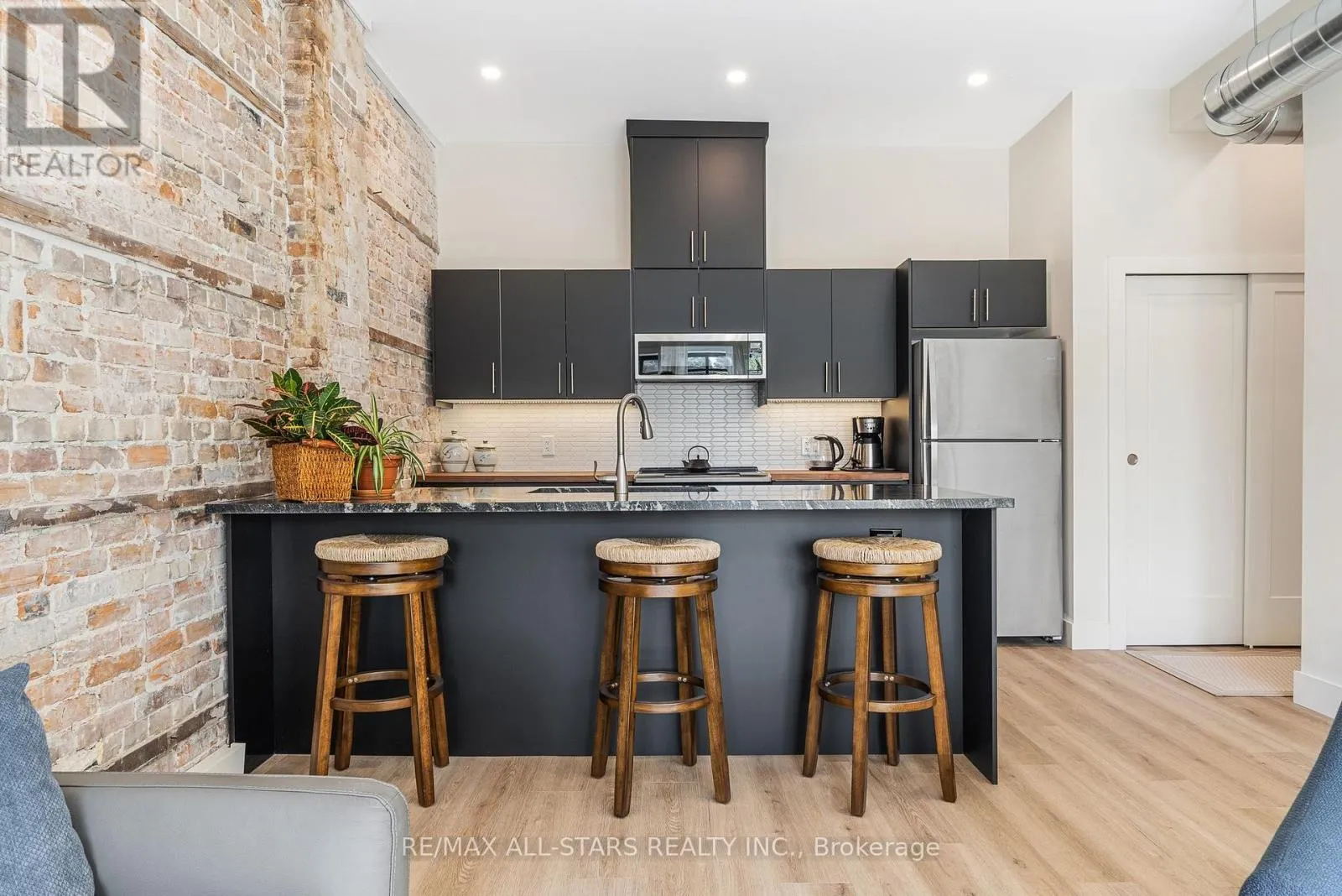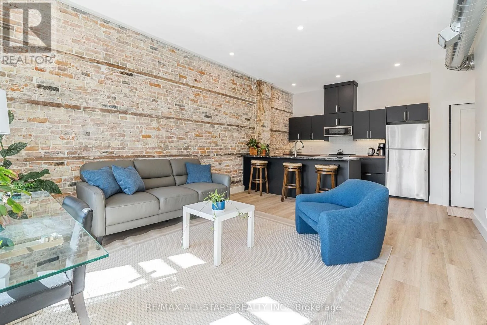 Cross Streets: main/colborne. ** Directions: Down town Fenelon Falls. Discover modern living in this fully renovated 1-bedroom apartment located right on the main street of Fenelon Falls. Perfectly situated within walking distance to restaurants, shopping , beaches, and local amenities, this home offers the ideal blend of convenience and small-town charm. Inside, enjoy a stylish open-concept layout featuring a striking exposed brick wall in the kitchen and living area, quartz countertops, and durable laminate flooring throughout. The kitchen flows seamlessly into the living space, creating a warm and inviting atmosphere prefect for everyday living or entertaining. Additional highlights include a shared backyard green space, ideal for enjoying fresh air and a reserved single parking space located at the back of the building. This apartment is perfect for those seeking a low-maintenance, modern lifestyle right in the heart of town. (id:27476)