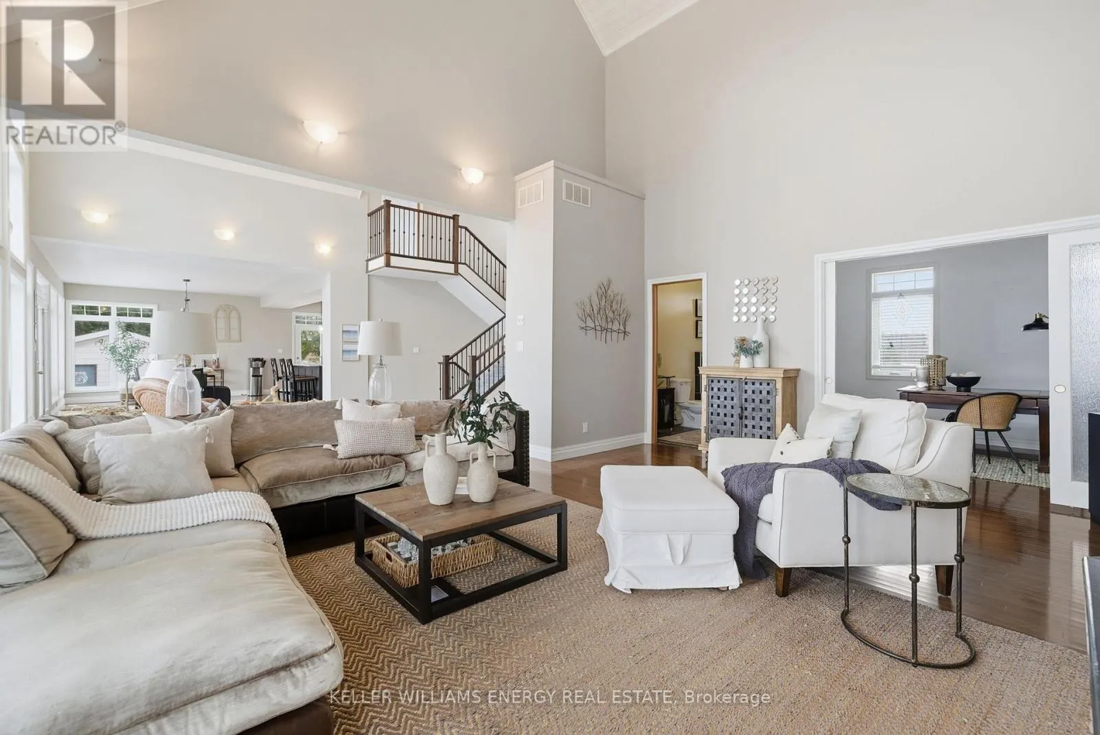 Frank Hill Rd. & Peninsula Dr. Welcome to this stunning 1+2 bedroom, 3 bathroom bungaloft nestled on the beautiful Trent Severn Waterway. Offering direct waterfront access and the ability to explore 5 lakes without passing through a single lock, this property is a true year-round retreat! Step inside through a spacious front entrance into an impressive open-concept layout with cathedral ceilings and wall-to-wall windows showcasing breathtaking water views. The main floor features a cozy fireplace, convenient laundry room, and seamless access to the wrap-around upper deck - perfect for entertaining or simply enjoying the Call of the Loons. The primary bedroom suite offers a private escape with a 3-piece ensuite and a walk-in closet, creating the perfect blend of comfort and functionality. The walk-out basement extends your living space, featuring a dry bar, ample storage, and direct access to the waterfront. Spend your days boating, fishing, or relaxing on your private dock, then enjoy skating or snowmobiling right from your backyard in the winter. Located in a mature, quiet neighbourhood, this home offers easy access to downtown Peterborough, PRHC hospital, and Hwy 115, while nearby golf courses and outdoor recreation make every day feel like a getaway. This Kawartha Lakes bungaloft delivers comfort, charm, and the perfect balance of relaxation and adventure. (id:27476)