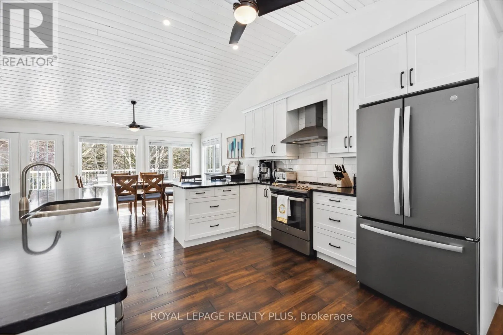 Northline Road/Black Bear Dr Fully renovated home offering breathtaking water views and luxurious living. The main floor features an open-concept layout with floor-to-ceiling windows, a full-length terrace, a modern kitchen with stainless steel appliances, pot lights throughout, and a spacious primary bedroom with a stunning ensuite and direct walkout to the terrace. The ground-level lower floor offers a full walkout, floor-to-ceiling windows, a sauna, a cozy fireplace, and a large den that can easily be converted into a fourth bedroom. The front yard includes a two car garage, a private driveway accommodating 1016 vehicles, and an additional workshop with potential to convert into a summer house. The backyard is large, private, and surrounded by mature trees, creating a peaceful retreat. Conveniently located near Highway 407 and top-rated schools, this property combines elegance, privacy, and accessibility in a highly sought-after setting. (id:27476)