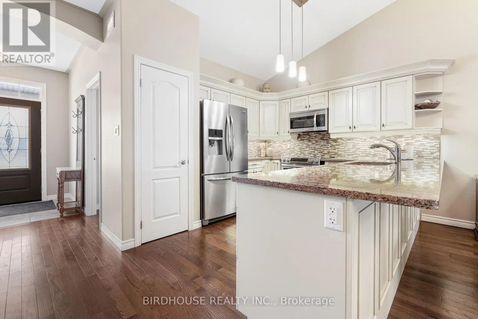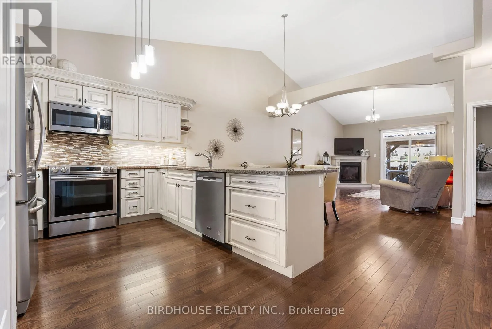 Angeline Street North to Chadwin Drive Welcome to this beautifully appointed 1215 sq ft bungalow townhouse, ideally located in a sought-after area of Lindsay close to all amenities and a short walk to Giant Tiger. This inviting home features 2 bedrooms and 3 bathrooms with a bright, open-concept layout. The living room offers a cozy gas fireplace and walkout to the backyard, where a deck with pergola creates a comfortable outdoor space with a BBQ for casual entertaining and relaxed evenings. The gorgeous, updated kitchen features vaulted ceilings and modern finishes. A spacious primary bedroom includes a private ensuite, while the fully finished basement provides a rec room and a 3 pc bath adding additional living space. An attached one-car garage adds convenience and storage. (id:27476)