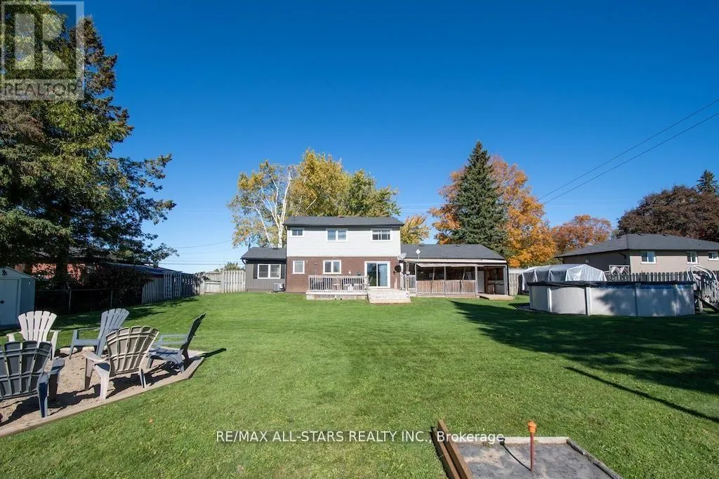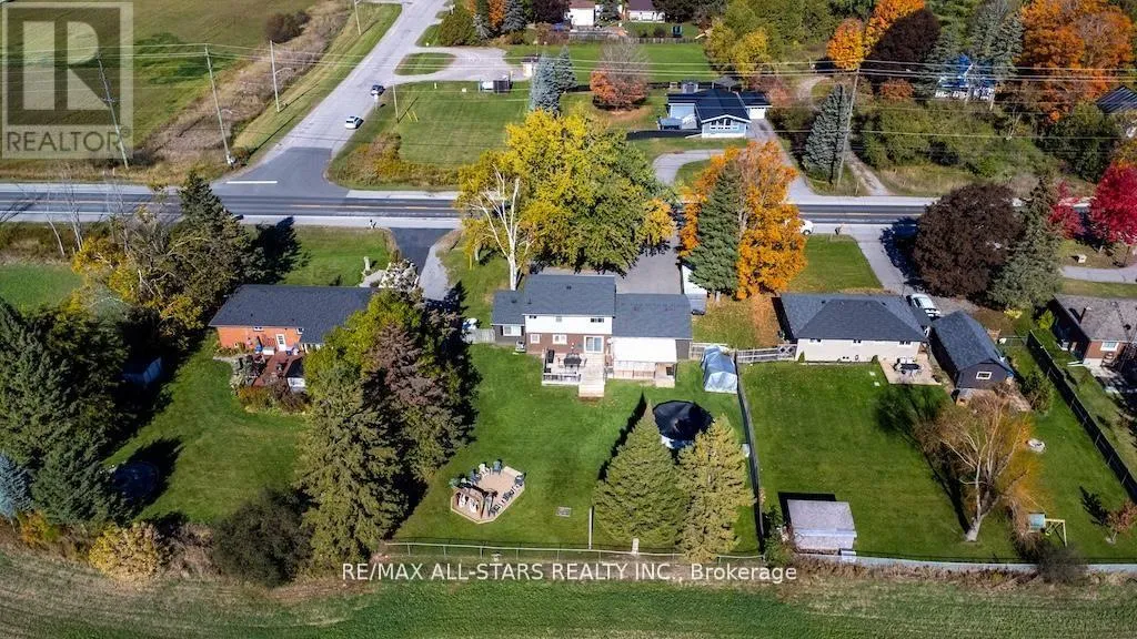 Cross Streets: Highway 7A Bethany/ Longfield. ** Directions: Highway 7A in Bethany. Step into this beautifully updated 3-bedroom, 2-storey home where comfort meets style. The open-concept main floor features a stunning kitchen with a large centre island, perfect for entertaining and family gatherings. Upstairs, you'll find three spacious bedrooms and a luxurious 5-piece bathroom complete with a relaxing soaker tub and separate shower. The backyard is truly magical featuring a covered porch/gazebo with a bar, a cozy fire pit area, and an above-ground pool for endless outdoor fun. The double garage, circular driveway, and full basement provide ample space for vehicles, hobbies, and storage & beyond. Plus, you'll love the privacy and views as this property backs onto open farmers fields. Upgrades in the last 5 years include: Paved driveway, shingles, windows, siding, pot lights, garage doors, soffits, facia, eavestrough, pool liner, fire pit on the outside AND on the inside: island, gas furnace, air conditioning unit, appliances, powder room refresh, counter tops and the basement; walls/ flooring etc. This is the one you've been waiting for with a modern living with a country feel! (id:27476)