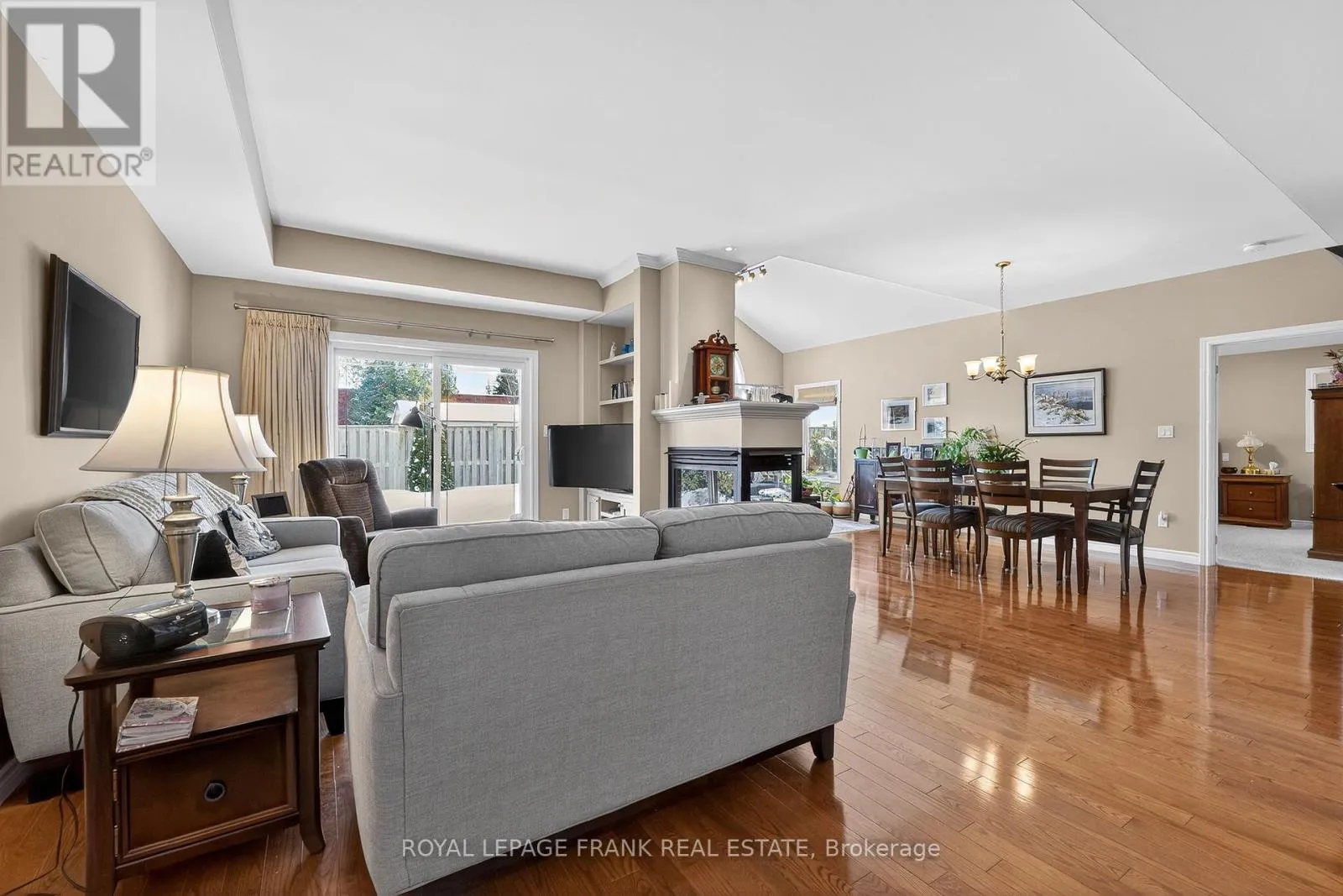 ANGELINE ST. S./GREEN ARBOUR WAY Step into a Masterclass of Visual Harmony! Nestled in an exclusive, architecturally controlled enclave, this 1,600+ sq. ft. bungalow is far more than a home, it is a distinctive statement of quality & captivating design. Imagine the "WOW" factor as you enter an open-concept sanctuary defined by the artistic flair of raised & tray-style ceilings & a spectacular 3-sided gas fireplace, cleverly positioned to cast a warm glow across both the great room & adjoining versatile living space. Natural light is a permanent guest here, invited in by the graceful curve of a sunny, south-facing round-top picture window. Designed for the home chef, the integrated kitchen is an organizational dream featuring a large center island, pantry & beautiful countertops. The principal suite is your private escape, complete with 5pc en-suite & a king-sized walk-in closet. With beautiful hardwood floors, custom built-ins, & a layout that breathes, every inch of this home feels intentional. Space for guests- with 2+2 bedrooms & 3 baths, there is room for everyone... a future dream rec room is already drywalled. Step through one of two bright entrances to your fully fenced backyard brick patio including privacy hedge & electric awning. Bonus: extra large basement windows, mf laundry & oversized 2 car garage. Centrally located, & just a short walk to the Recreation Complex. For those who appreciate uncompromising quality & a sparkling clean, turn-key home, this is your exclusive chance. (id:27476)