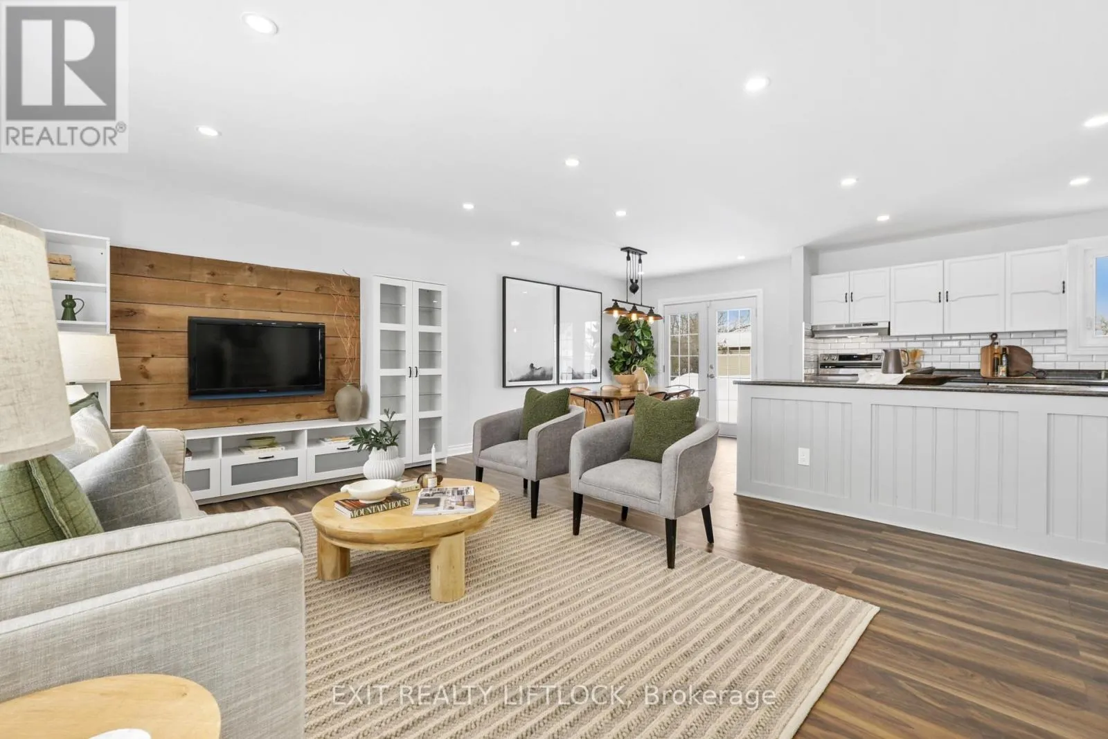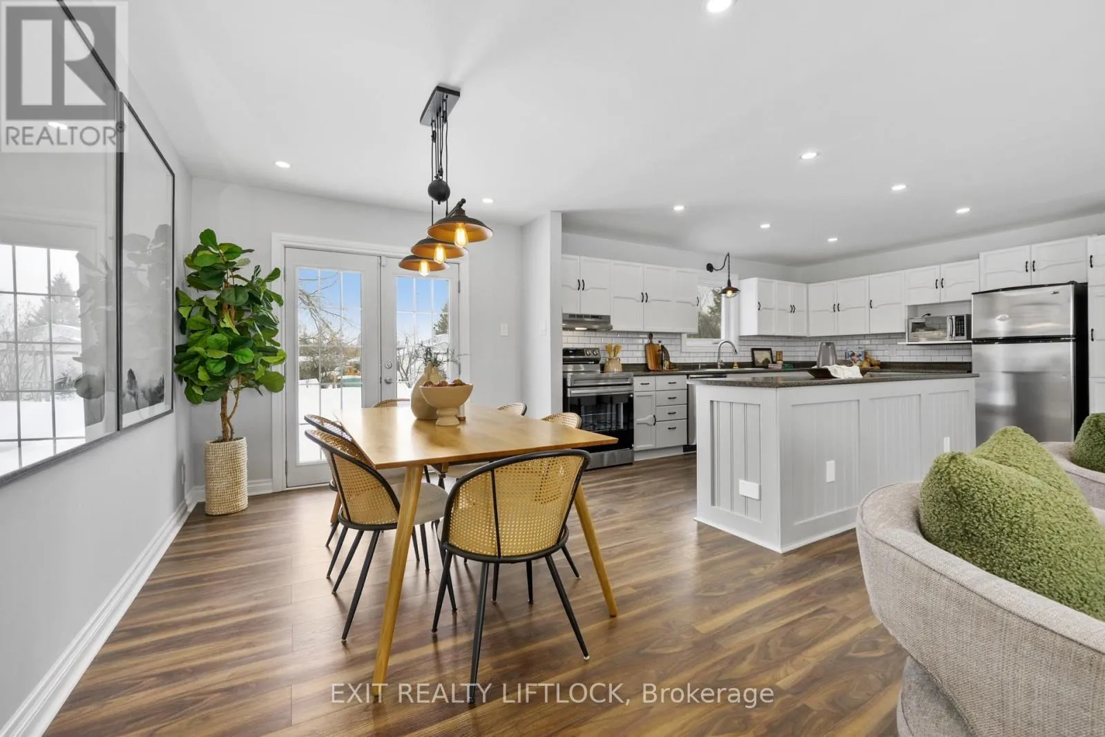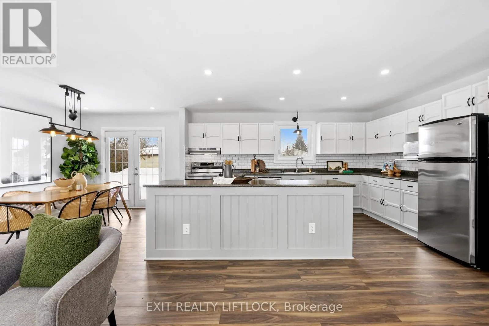 Cross Streets: Hwy 7 and Meadowview Rd. ** Directions: Hwy 7 and Lily Lake Rd. Set on a large, private lot on the edge of town, this beautifully updated four-level side-split offers the best of country-style living with everyday convenience close by. A bright, open-concept main level welcomes you with seamless living, dining, and kitchen spaces, complemented by stainless steel appliances and an inviting flow ideal for entertaining. The upper level features three bedrooms, including a stylish primary retreat with a striking feature wall and hardwood flooring throughout. The spa-inspired main bathroom is a true showstopper, complete with a standalone air-jet tub, walk-in shower, and modern LED pot lighting. The lower level adds versatility with a fourth bedroom, a convenient two-piece bath, and a beautifully finished laundry room with sink and high counters. The large drive is paved and continues behind the garage to the shed. It was formerly used as a basketball court. An attached double-car garage and a serene, oversized lot just minutes from town complete this exceptional offering. (id:27476)