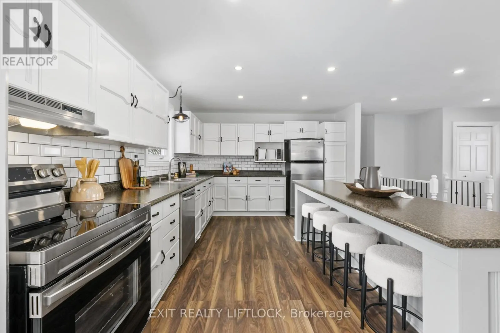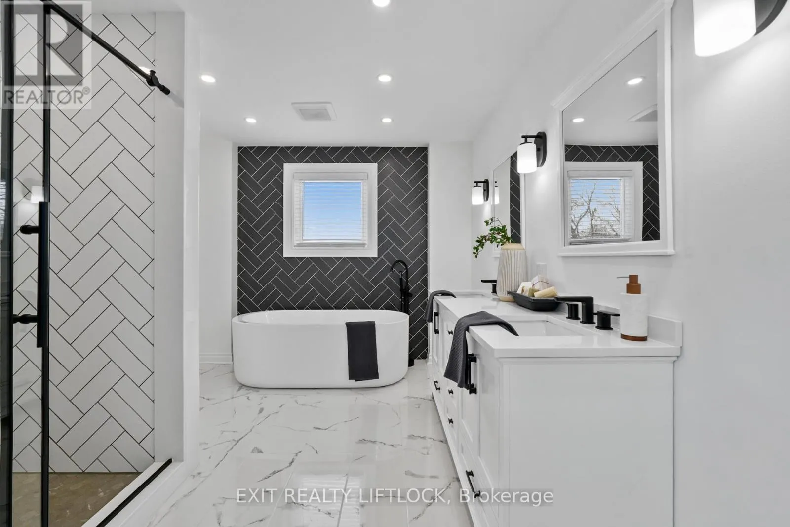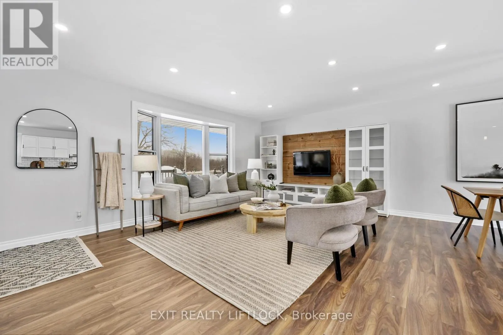 Cross Streets: Hwy 7 and Meadowview Rd. ** Directions: Hwy 7 and Lily Lake Rd. Set on a large, private lot on the edge of town, this beautifully updated four-level side-split offers the best of country-style living with everyday convenience close by. A bright, open-concept main level welcomes you with seamless living, dining, and kitchen spaces, complemented by stainless steel appliances and an inviting flow ideal for entertaining. The upper level features three bedrooms, including a stylish primary retreat with a striking feature wall and hardwood flooring throughout. The spa-inspired main bathroom is a true showstopper, complete with a standalone air-jet tub, walk-in shower, and modern LED pot lighting. The lower level adds versatility with a fourth bedroom, a convenient two-piece bath, and a beautifully finished laundry room with sink and high counters. The large drive is paved and continues behind the garage to the shed. It was formerly used as a basketball court. An attached double-car garage and a serene, oversized lot just minutes from town complete this exceptional offering. (id:27476)
