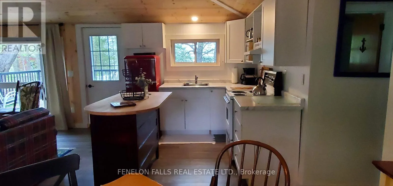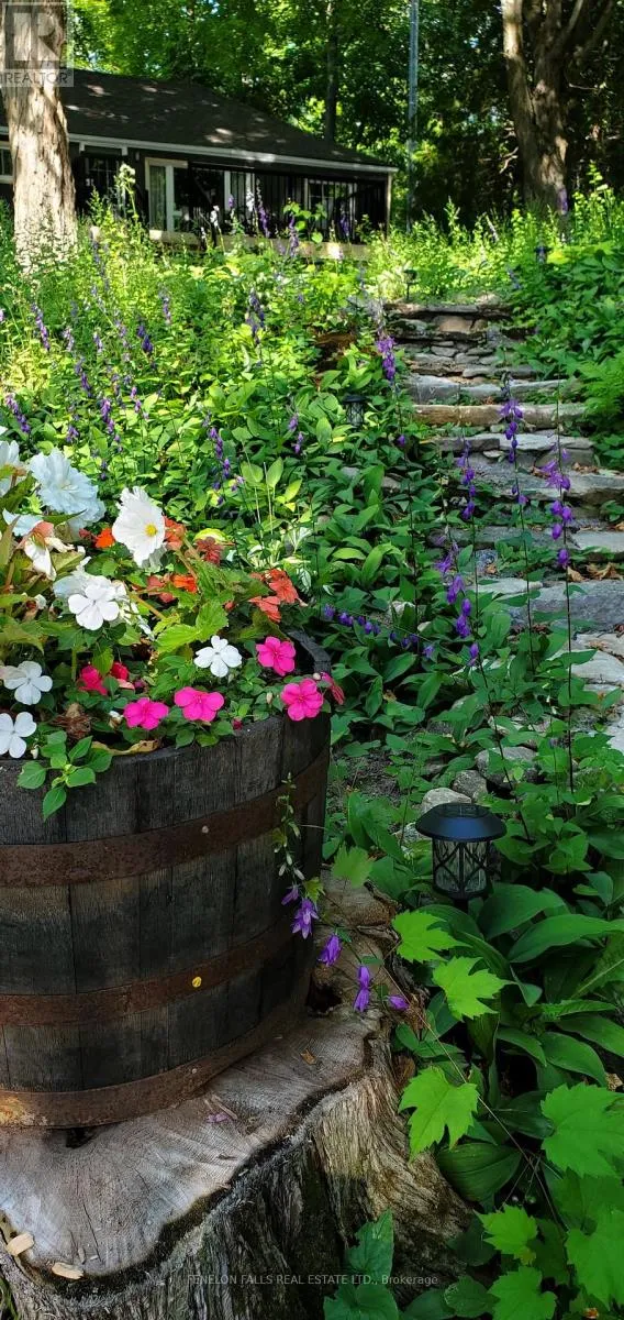 Cross Streets: Hwy 35 and Lakebreeze. ** Directions: Lakebreeze Rd is off Hwy 35 North of Fenelon, south of Rosedale. \"Grass St\" on map does not exist. It is a driveway for 164&166 Lakebreeze. Rare offering, 3 Season Cameron Lake cottage in scenic Lakebreeze neighbourhood. Totally updated, gutted and rebuilt in 2022 with cozy pine interiors, pine cathedral ceilings, easy maintenance vinyl plank flooring, new kitchen, new 4 piece bathroom. Comes fully furnished and equipped, ready for you to relax and enjoy! Tier 2 on the water means an unopened road allowance sits between the cottage and the lake, used mostly in the winter as the snowmobile trail comes off Cameron Lake at this property, and backlot neighbours occasionally come down for a swim in the summer = Affordable cottage ownership with Low taxes! Cottage sits on hilltop with quaint stone walk way and steps leading down through perennial and wildflower gardens to firepit area and waterfront. In the summer this property offers quiet, scenic, comfortable and affordable waterfront living. Dock has been shared with neighbour. Water source is filtered from neighbour's well. (id:27476)