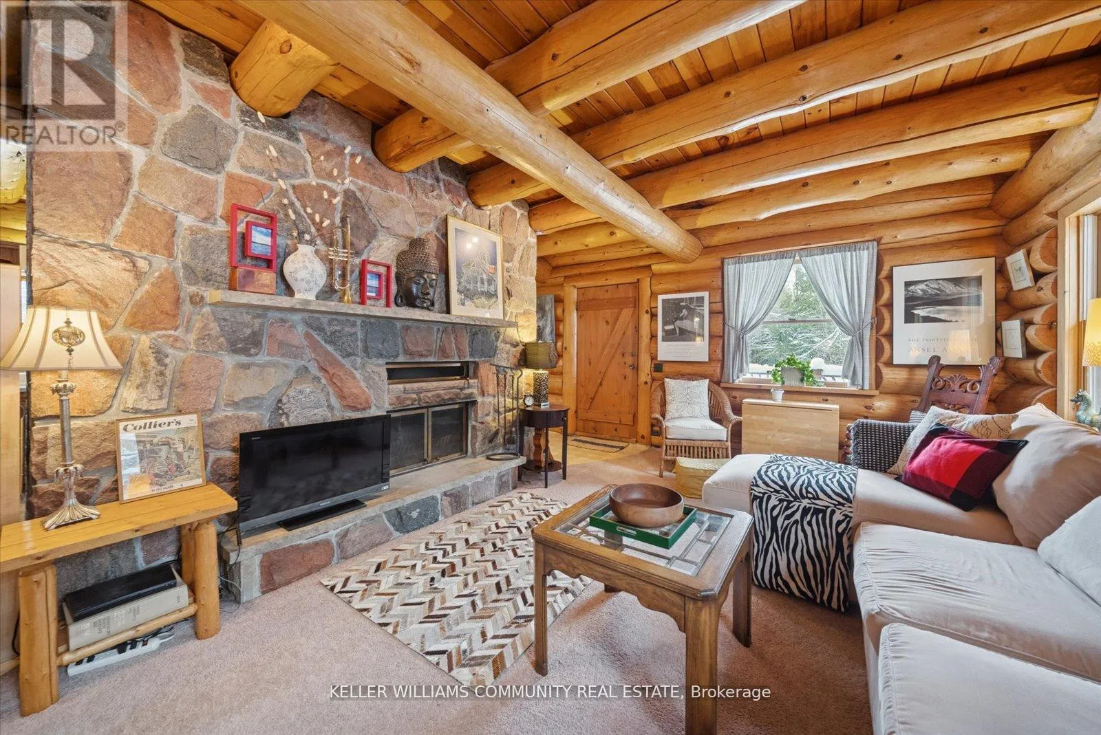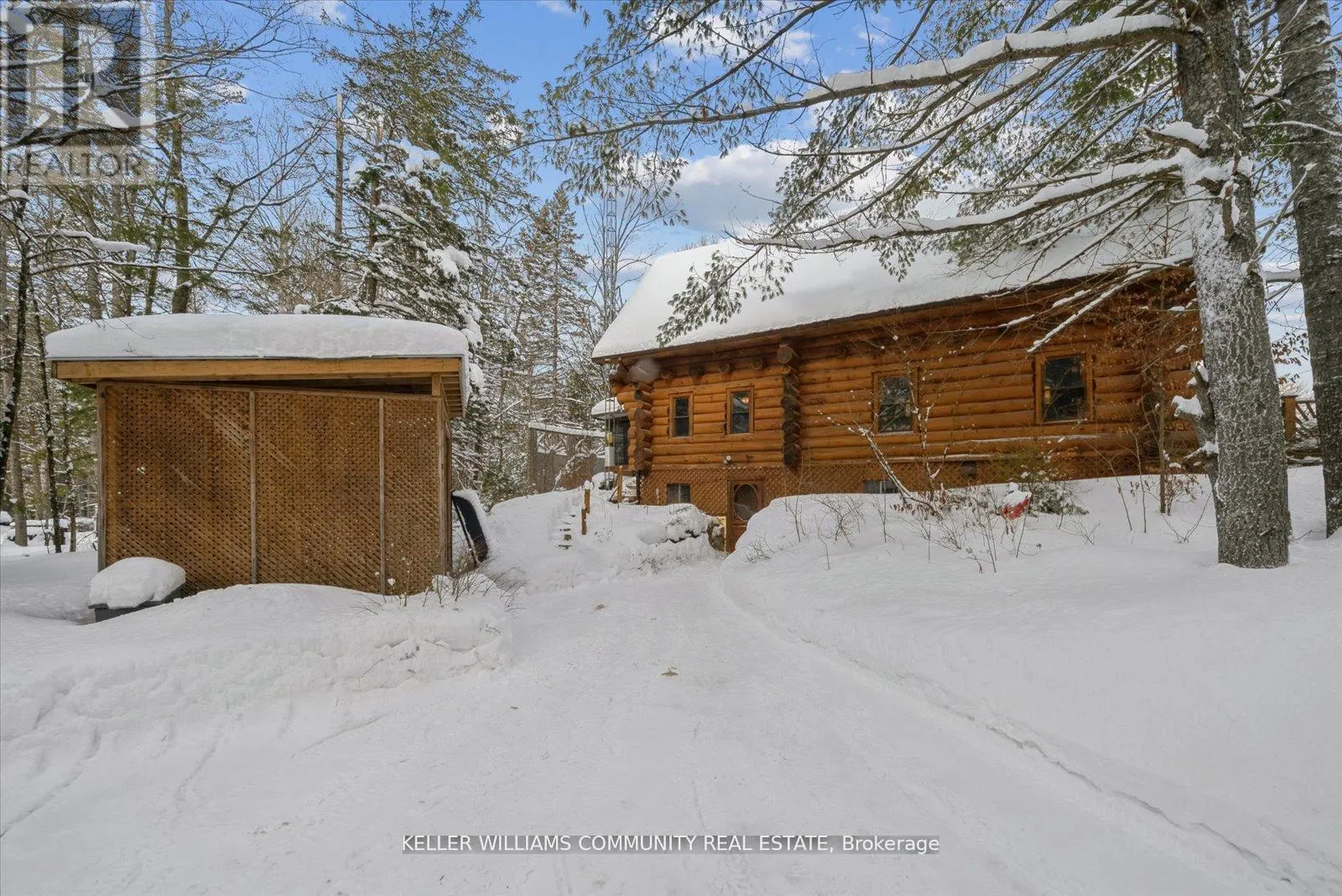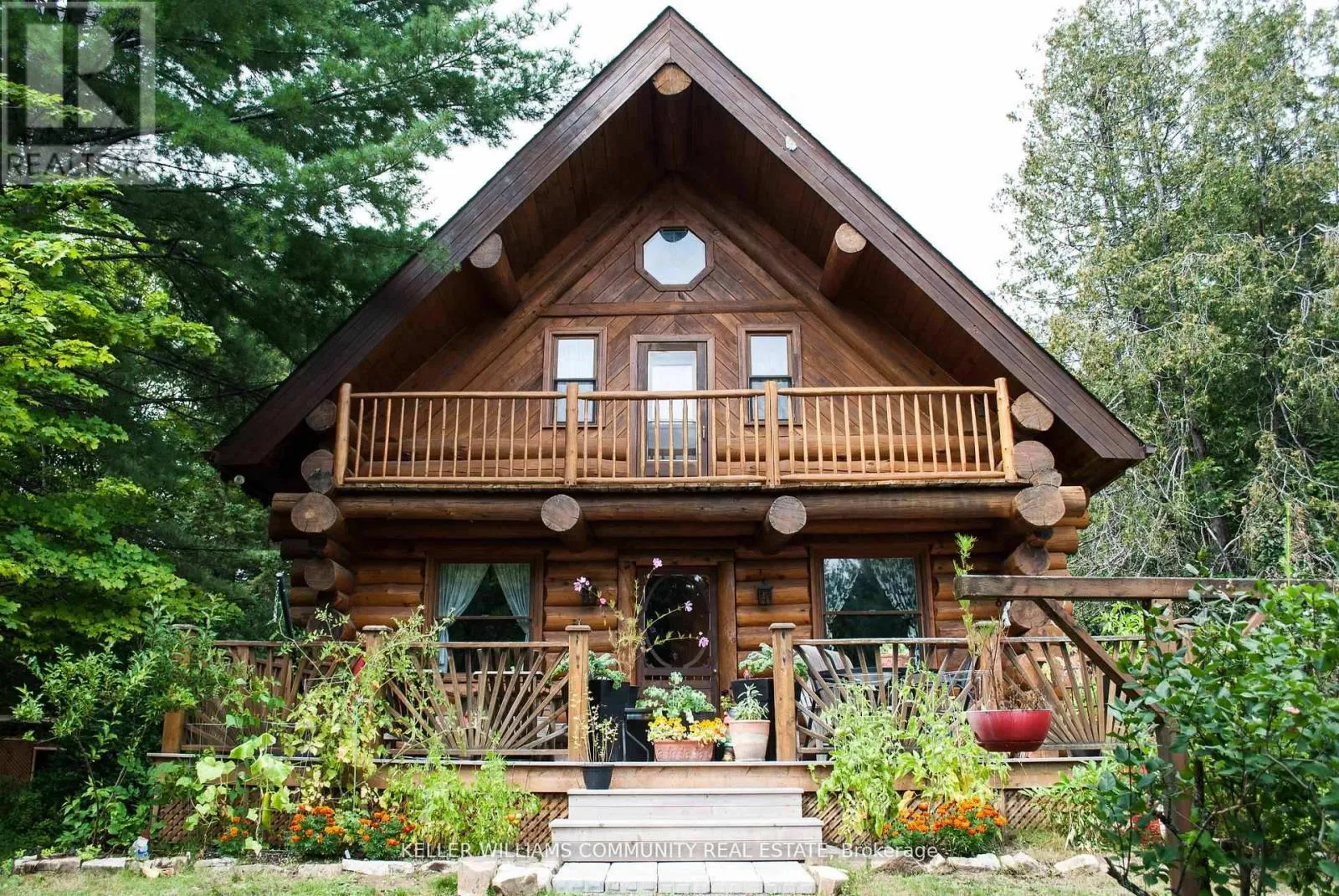 Cross Streets: COUNTY ROAD 121. ** Directions: County Road 121 to Hillside Drive or Burnt River Road to Hillside drive. Situated in the village of Burnt River, while still being tucked away from the everyday, this 2.5-storey Scandinavian-style log home feels like stepping into your own private world - quiet, natural, and the perfect mix of manicured landscaping and untouched forest. With 1.5 acres of open yard space and the rest of your 27 acres being forested trails, it's a haven for nature lovers, gardeners, and anyone craving room to grow and explore, or just breathe. Inside, a floor-to-ceiling stone fireplace anchors the kitchen and living area with instant warmth and rustic charm.The main floor also includes a flexible bedroom/office, a 3-piece bath, and a bright 3-season sunroom that feels like a fairy tale whether it's raining or the sunniest day on earth! From here you can head outside and down enchanting stone steps into your own greenery sanctuary. Upstairs offers three bedrooms, including a spacious primary with a bonus room currently used as an incredible walk-in closet, easily repurposed as an office or private retreat. Another full bathroom completes this level. The third-floor loft adds a playful touch, ideal for reading, relaxing, or a kids' hideaway.The finished walkout basement expands your living space and features a wood stove, which is a pleasant touch on those colder days. Outside, you'll find a triple-car garage (with 100amp service) with 1,000 sq. ft. of finished loft space above for guests, work, or hobbies, plus an 8x2 garden shed and an 10x24 drive shed for your tractor and toys. This is more than a home, it's a lifestyle. Mornings with birdsong, afternoons on wooded trails, evenings by the fire. Rustic charm and modern comfort meet here. Conveniently located near small-town essentials: Kinmount (14 minutes), Fenelon Falls (15 minutes), Bobcaygeon and Minden (~30 minutes), and direct access to the Victoria Rail Trail (ATV/snowmobile trails) a boat launch at the end of Hillside drive, and close proximity to Four Mile Lake and Crystal Lake. (id:27476)