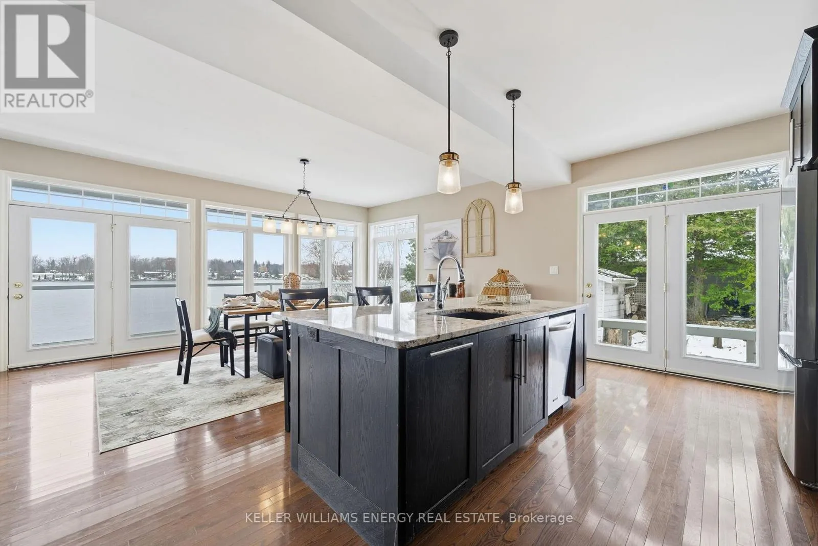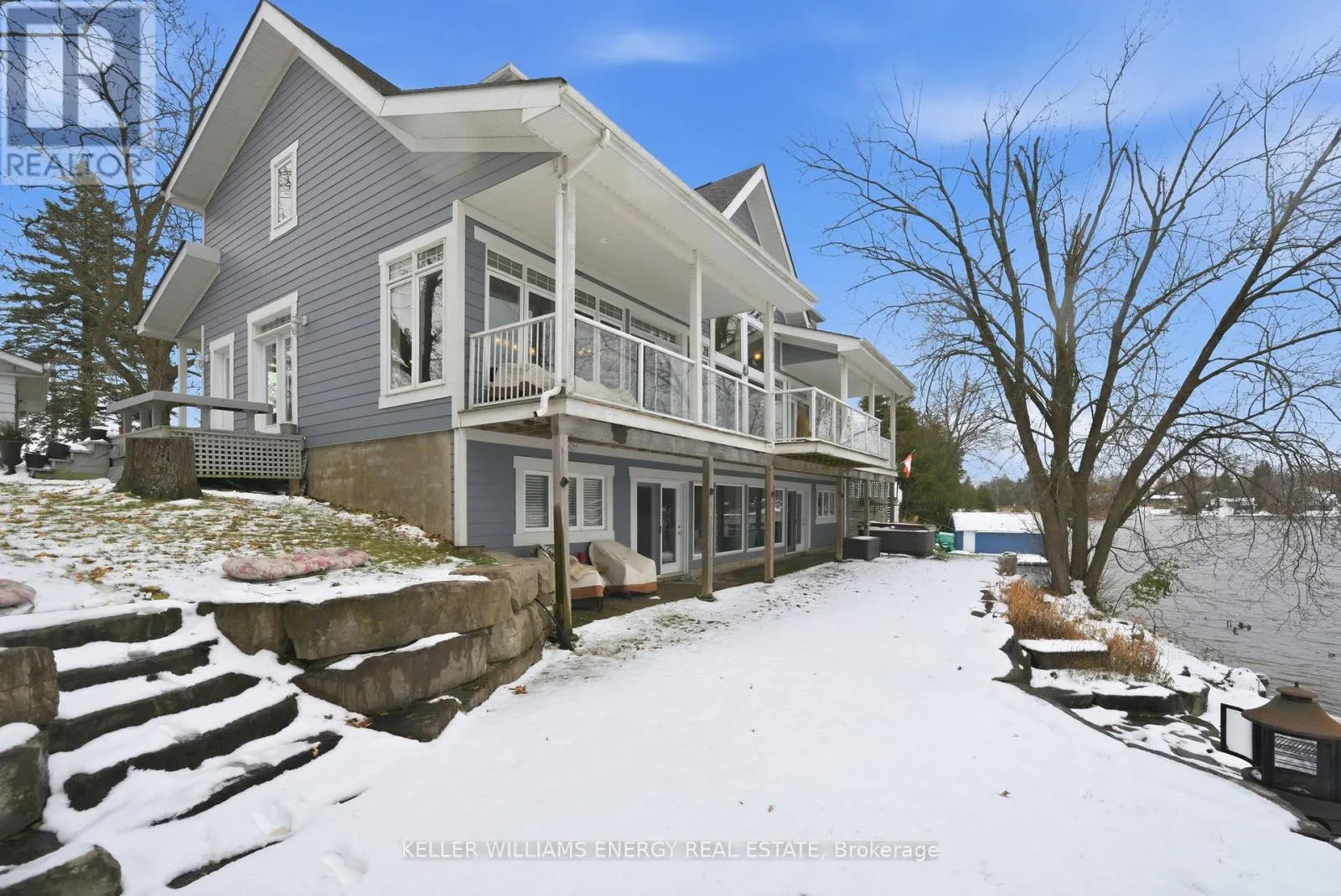Frank Hill Rd. & Peninsula Dr. Welcome to this stunning 1+2 bedroom, 3 bathroom bungaloft nestled on the beautiful Trent Severn Waterway. Offering direct waterfront access and the ability to explore 5 lakes without passing through a single lock, this property is a true year-round retreat! Step inside through a spacious front entrance into an impressive open-concept layout with cathedral ceilings and wall-to-wall windows showcasing breathtaking water views. The main floor features a cozy fireplace, convenient laundry room, and seamless access to the wrap-around upper deck - perfect for entertaining or simply enjoying the Call of the Loons. The primary bedroom suite offers a private escape with a 3-piece ensuite and a walk-in closet, creating the perfect blend of comfort and functionality. The walk-out basement extends your living space, featuring a dry bar, ample storage, and direct access to the waterfront. Spend your days boating, fishing, or relaxing on your private dock, then enjoy skating or snowmobiling right from your backyard in the winter. Located in a mature, quiet neighbourhood, this home offers easy access to downtown Peterborough, PRHC hospital, and Hwy 115, while nearby golf courses and outdoor recreation make every day feel like a getaway. This Kawartha Lakes bungaloft delivers comfort, charm, and the perfect balance of relaxation and adventure. (id:27476)