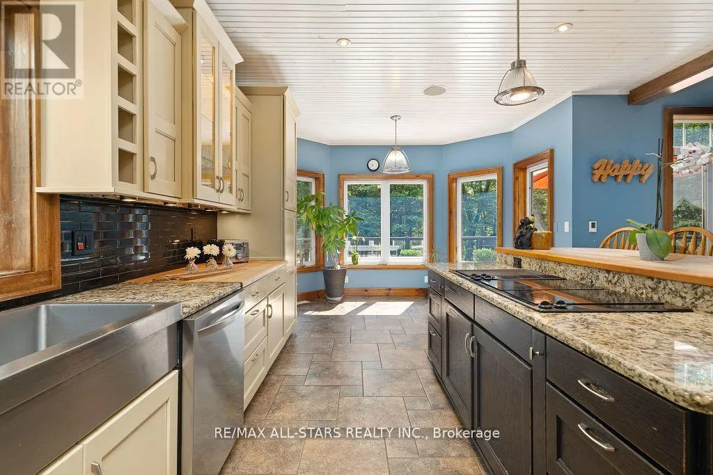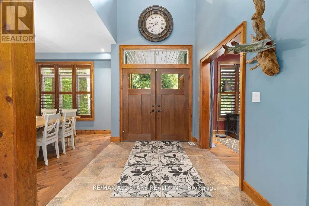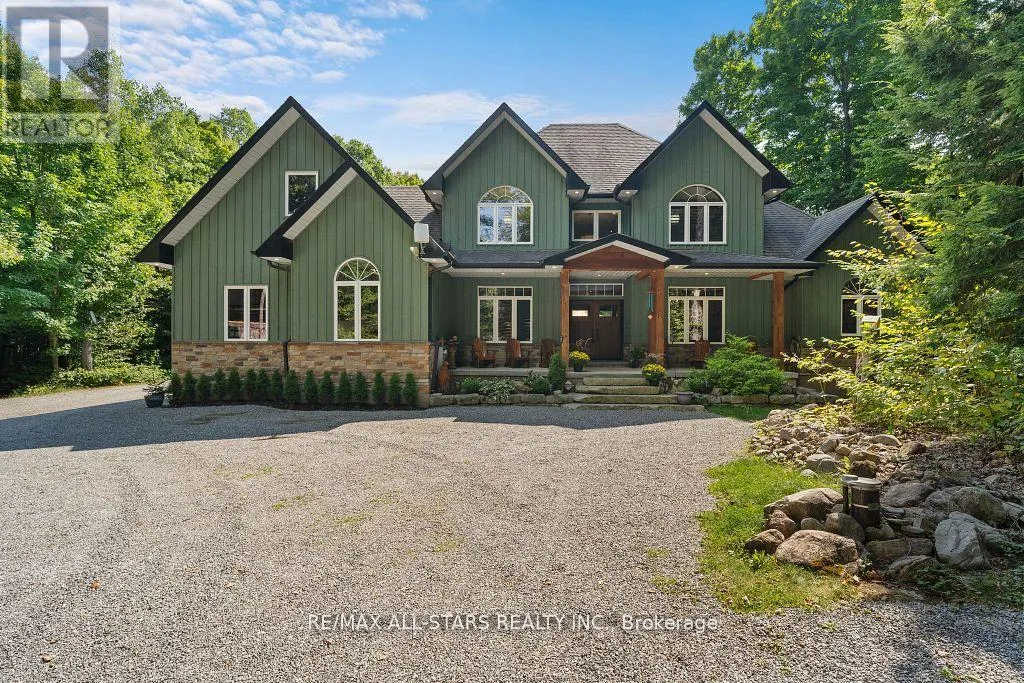 Cross Streets: Northline Rd/Black Bear Rd. ** Directions: From Fenelon Falls: Head N on 121, turn left onto Northline, turn right onto Black Bear Rd. then turn left onto Harmonious Dr. Home is on your right. Welcome to Black Bear Estates, where luxury and nature converge. This magnificent 3,404 Sq/Ft home offers over 190 ft of private waterfront connected to the renowned Trent Severn Waterway. Featuring 6 bedrooms and 4 bathrooms, this home is designed for comfort and style. The main floor welcomes you with wide plank wood floors, 18 ft vaulted ceilings in the living room and a stunning floor-to-ceiling stone fireplace that sets the tone for relaxation. The open-concept layout also includes a large dining area, a gourmet eat-in kitchen, and main-floor laundry for convenience. The primary suite is a true retreat, with his-and-her walk-in closets, a spa-like 5-piece en-suite with a Jacuzzi tub, dual vanities and a glass walk-in shower. Step out onto the private deck to enjoy sweeping views of the expansive backyard and tranquil waterfront. Upstairs, you'll find two bedrooms, an oversized versatile bonus room, perfect for a bedroom, games room, or office. The walk-out basement adds even more living space with a large family room, games area, workout space, bedroom and bathroom. There's also a generous storage room and oversized mudroom with plenty of space to keep everything organized. Outside, the property offers a large backyard, perfect for outdoor entertaining with a beach like waterfront and private dock or quiet evenings by the fire. This home is ideal for those seeking a luxurious, peaceful lifestyle on the water. (id:27476)