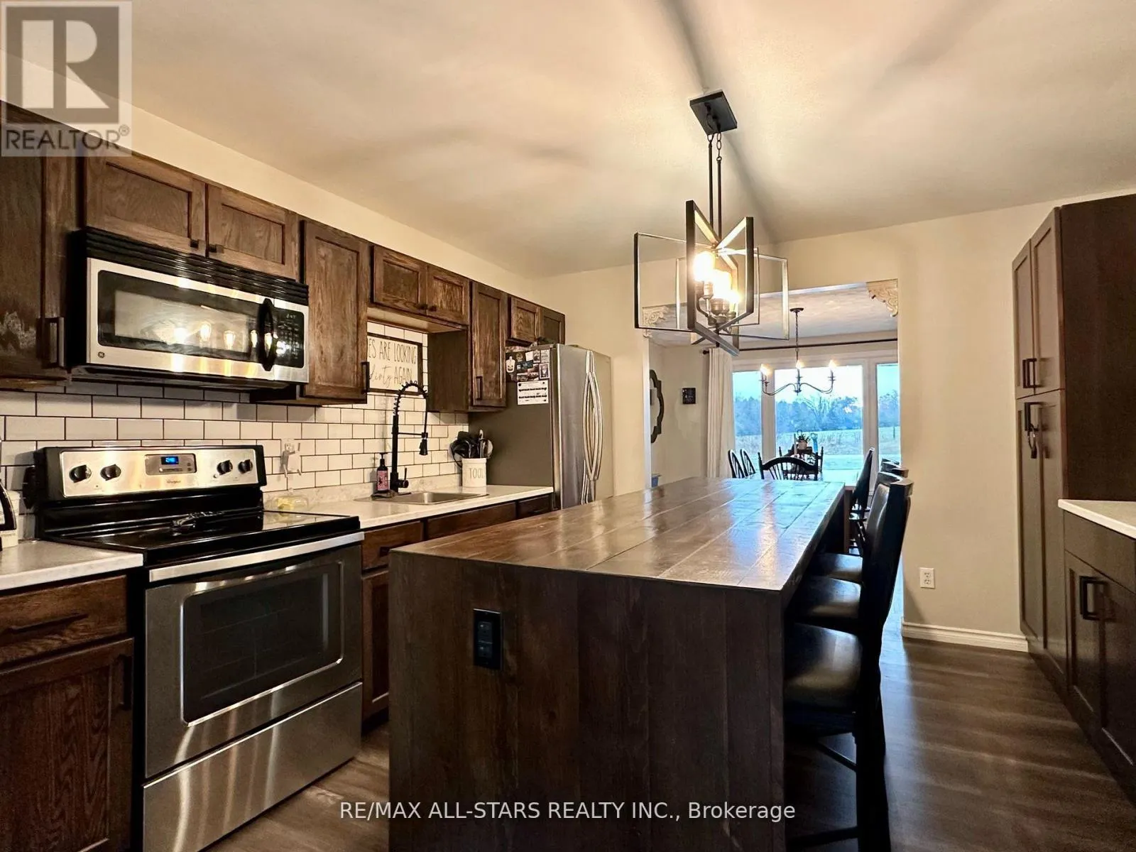 County Rd 8 Welcome to this beautifully renovated brick bungalow in the town of Bobcaygeon! This spacious home features 3+1 bedrooms plus an office, offering plenty of room for family and guests. Enjoy the bright four-season sunroom overlooking the private fully fenced backyard that backs onto a peaceful forest. The modern kitchen boasts stainless steel appliances, while the fully finished basement includes a rec room, full bath, 4th bedroom, office and wet bar-perfect for entertaining. Outdoor living shines here with a pavilion and large flat area ideal for gatherings. Additional highlights include a detached insulated garage, circular paved driveway, and a hot tub. (id:27476)