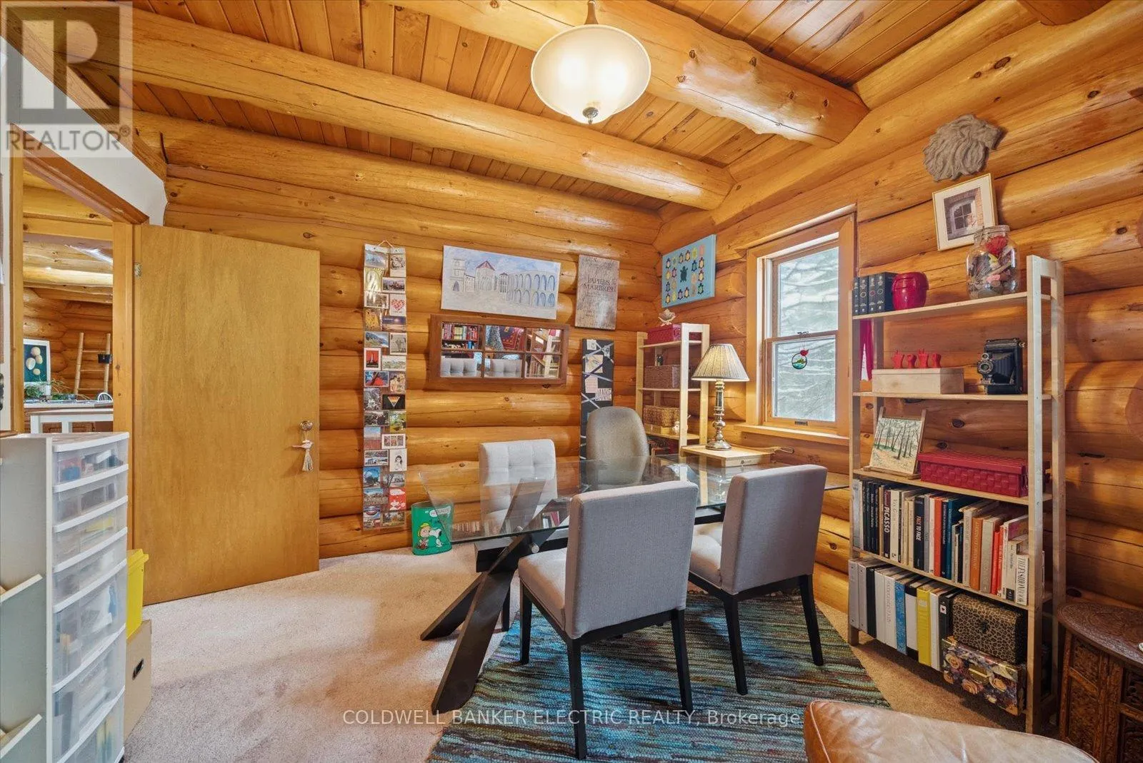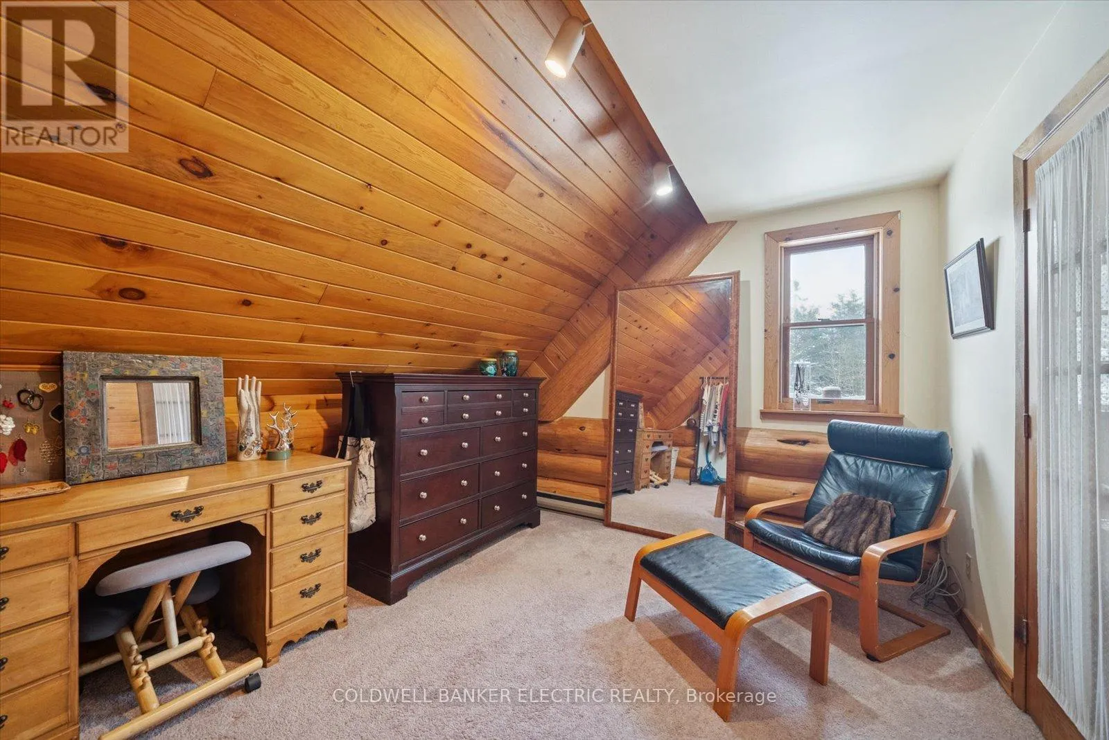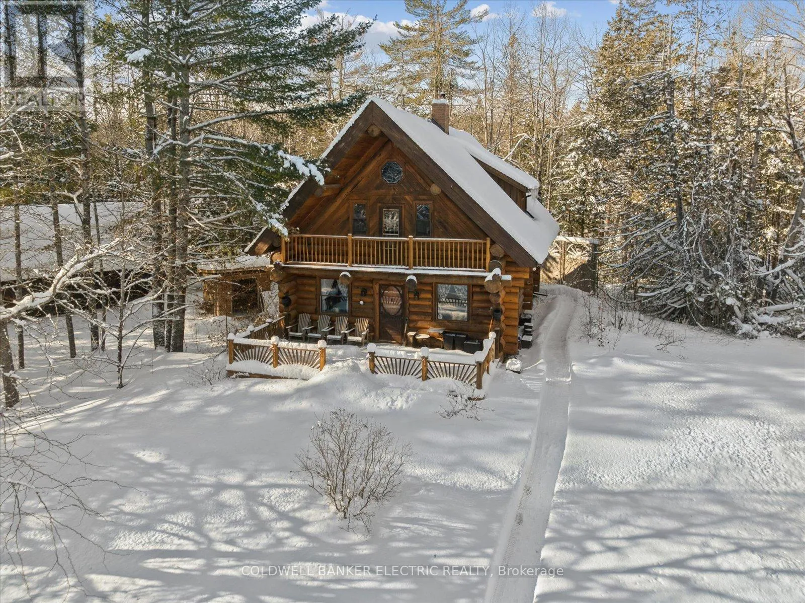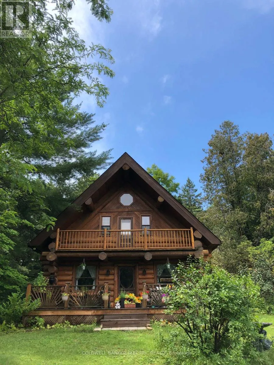 Cross Streets: COUNTY ROAD 121. ** Directions: County Road 121 to Hillside Drive or Burnt River Road to Hillside drive. Situated in the village of Burnt River, while still being tucked away from the everyday, this 2.5-storey Scandinavian-style log home feels like stepping into your own private world - quiet, natural, and the perfect mix of manicured landscaping and untouched forest. With 1.5 acres of open yard space and the rest of your 27 acres being forested trails, it's a haven for nature lovers, gardeners, and anyone craving room to grow and explore, or just breathe. Inside, a floor-to-ceiling stone fireplace anchors the kitchen and living area with instant warmth and rustic charm.The main floor also includes a flexible bedroom/office, a 3-piece bath, and a bright 3-season sunroom that feels like a fairy tale whether it's raining or the sunniest day on earth! From here you can head outside and down enchanting stone steps into your own greenery sanctuary. Upstairs offers three bedrooms, including a spacious primary with a bonus room currently used as an incredible walk-in closet, easily repurposed as an office or private retreat. Another full bathroom completes this level. The third-floor loft adds a playful touch, ideal for reading, relaxing, or a kids' hideaway.The finished walkout basement expands your living space and features a wood stove, which is a pleasant touch on those colder days. Outside, you'll find a triple-car garage (with 100amp service) with 1,000 sq. ft. of finished loft space above for guests, work, or hobbies, plus an 8x2 garden shed and an 10x24 drive shed for your tractor and toys. This is more than a home, it's a lifestyle. Mornings with birdsong, afternoons on wooded trails, evenings by the fire. Rustic charm and modern comfort meet here. Conveniently located near small-town essentials: Kinmount (14 minutes), Fenelon Falls (15 minutes), Bobcaygeon and Minden (~30 minutes), and direct access to the Victoria Rail Trail (ATV/snowmobile trails) a boat launch at the end of Hillside drive, and close proximity to Four Mile Lake and Crystal Lake. (id:27476)
