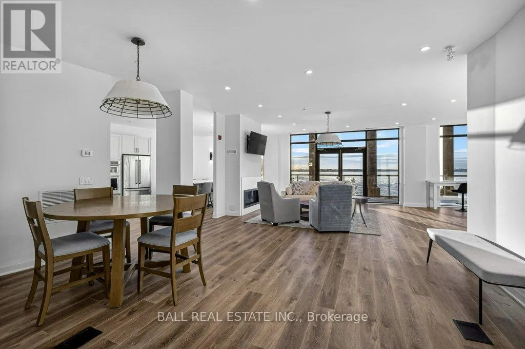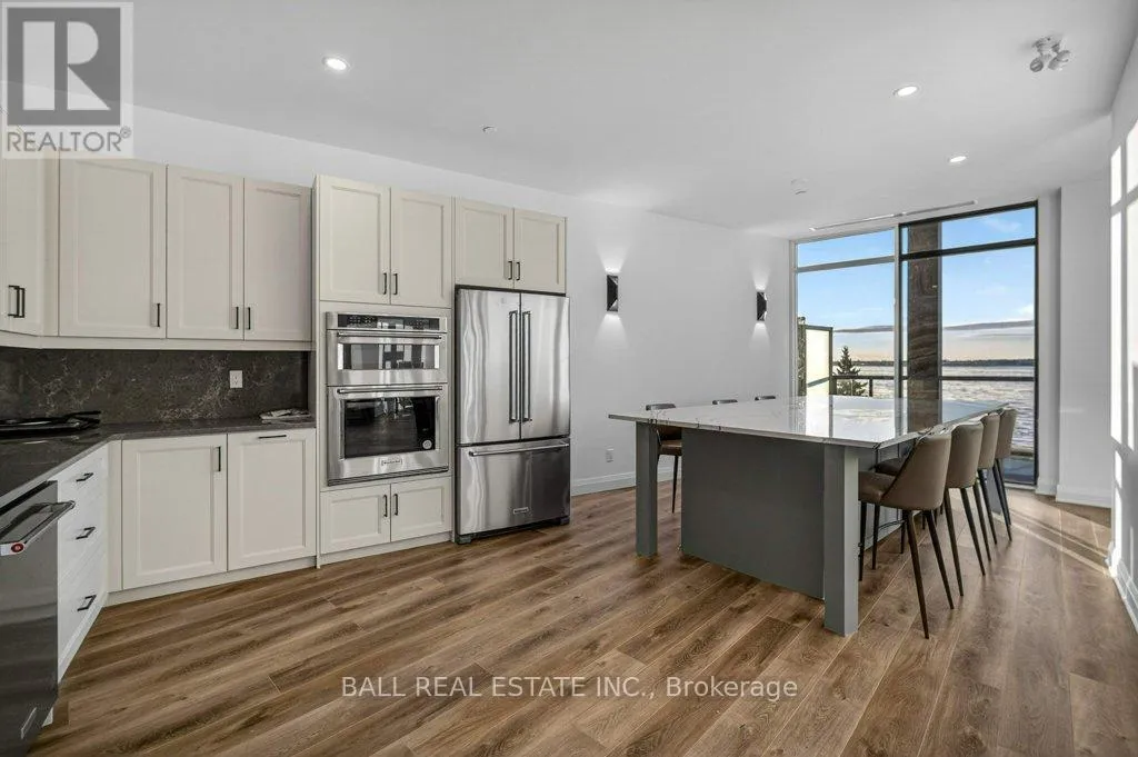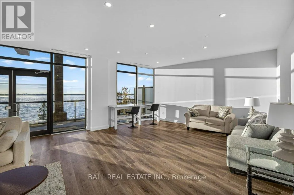 Cross Streets: Colborne Street & Louisa Street. ** Directions: Colborne Street and Louisa Street. Luxury Living in the Heart of Kawartha Lakes, experience resort-style living every day in Kawartha Lakes' premier condo development - The Moorings on Cameron Lake. This stunning 2-bedroom, 2-bath suite + den offers 1401 sq foot of elegant and spacious living with nine foot ceilings, clerestory windows and an open-concept layout with premium finishes throughout. Suite Features: Expansive kitchen/dining/living area with gas fireplace and walk-out terrace overlooking the lake with western sunsets (gas BBQ hookup). Upgraded kitchen with quality cabinets, quartz countertops, under-cabinet lighting, large island and stainless steel appliances. Primary suite has waterfront view with walk-in closet and luxurious en-suite bathroom. Second bedroom ideal for guests or office space with waterfront view. Den area with a walk-in closet. In-suite laundry room with extra storage. Engineered hardwood & porcelain tile flooring throughout, upgraded doors and trim. Two underground parking spots and private locker included. World-Class Amenities: Outside Lakeview lounge with western sunsets, lakeview state-of-the-art fitness centre with indoor sauna, lakeview owners lounge with caterer's kitchen and movie theatre, (can be booked for private events). Two guests suites, grand foyer with gas fireplace, heated outdoor pool & hot tub, tennis/pickleball court, and beautifully landscaped outdoor areas. Boat slips available for purchase at the on-site marina (to be built, spaces limited). Steps from the Victoria Trail, shopping, dining, wellness services, and entertainment. Located on the tranquil shores of Cameron Lake, part of the Trent-Severn Waterway, and just minutes to Lindsay and Bobcaygeon, this is an ideal blend of luxury, convenience, and nature. Enjoy spectacular western sunsets, peaceful surroundings, and vibrant local living - all less than 90 minutes from the GTA. Only a few units remain - don't miss this rare opportunity to own at The Moorings! (id:27476)