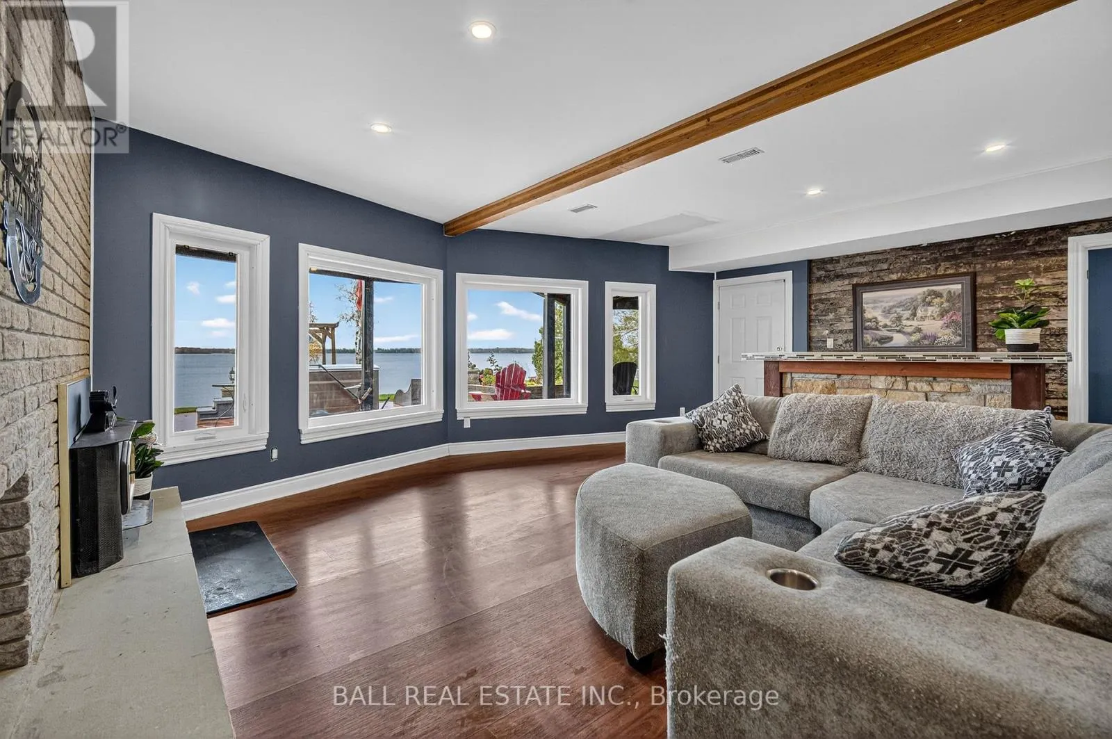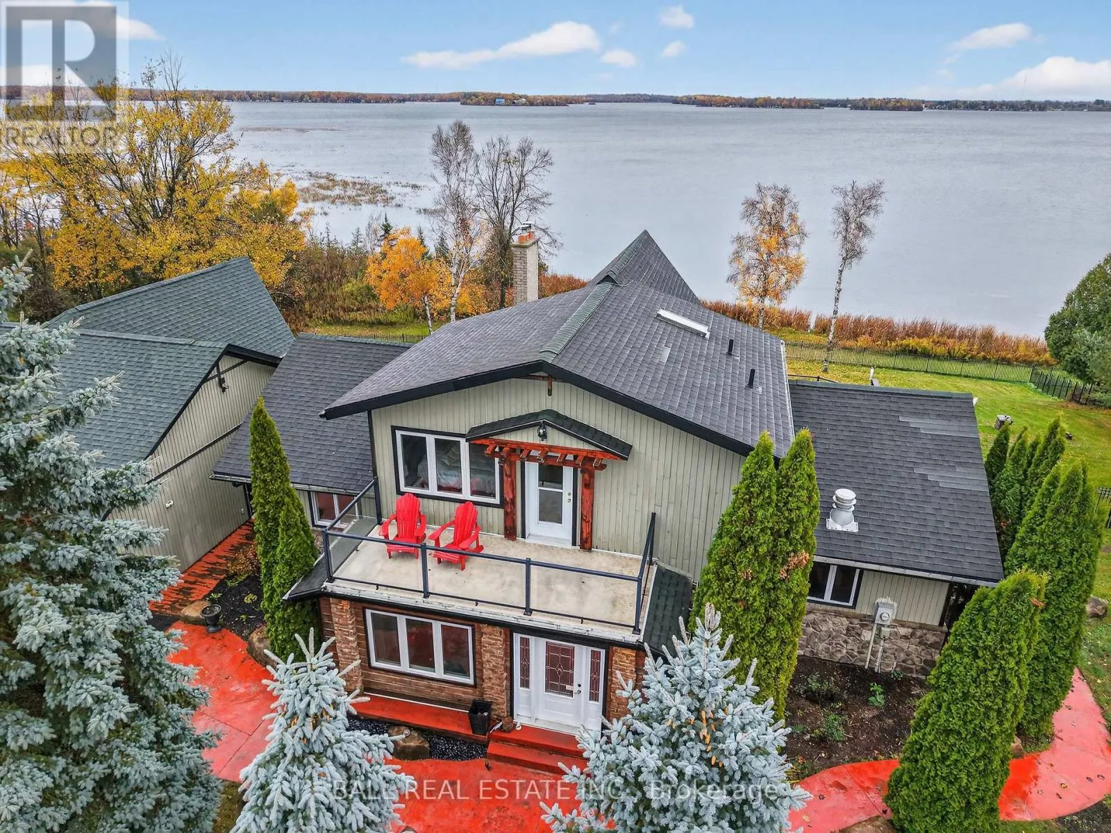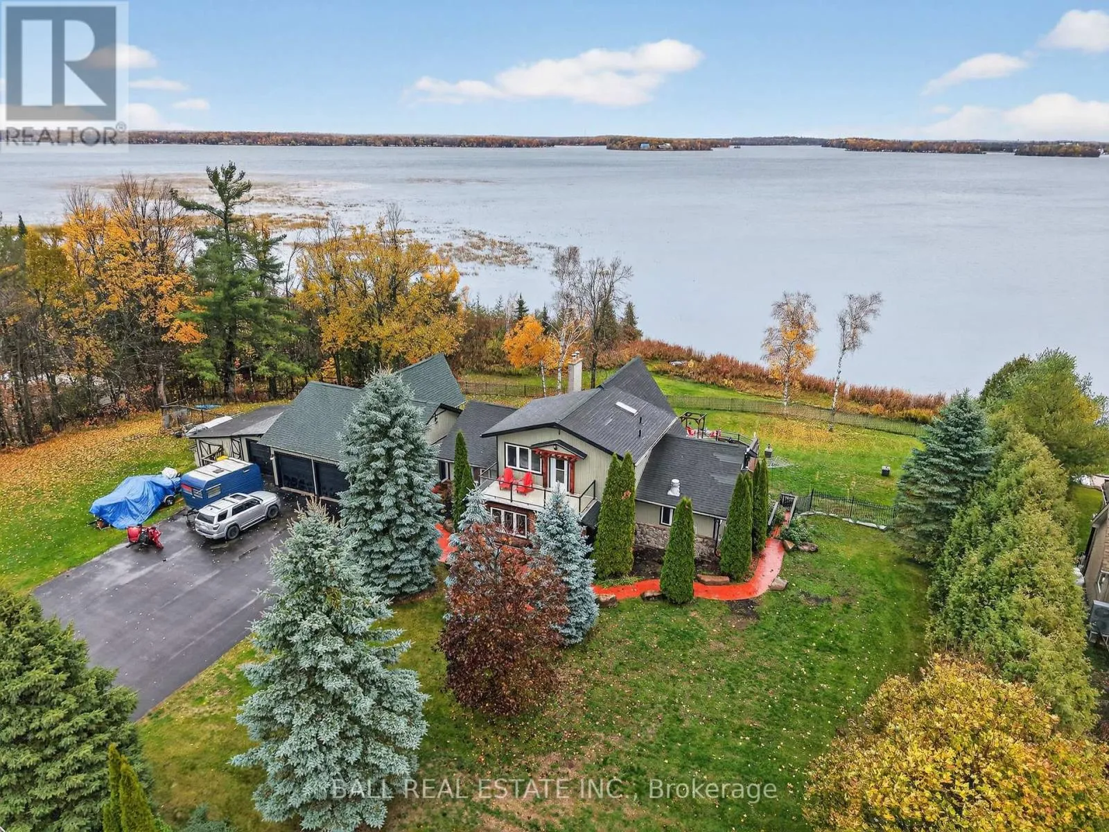 Pigeon Lake Road and Peller Court Road Welcome to 151 Peller Court, an exceptional custom-built estate in the prestigious Rolling Hills Estates community, just minutes south of Bobcaygeon on Pigeon Lake-part of the renowned Trent-Severn Waterway. Nestled on a private 4.8-acre lot surrounded by mature trees, this stunning property offers unparalleled privacy & breathtaking sunrise views over the lake. Boasting over 3,200 sq. ft. of beautifully finished living space across three levels, plus a separate 359 sq. ft. in-law suite, this home is designed for both luxurious living & effortless entertaining. Open-concept main floor features a chef's dream kitchen with high-end appliances, abundant wood cabinetry & a large central island, all flowing seamlessly to an expansive deck overlooking the lake. The kitchen opens into a spectacular dining & living area highlighted by soaring cathedral ceilings, rich hardwood flooring, a striking stone fireplace & floor-to-ceiling windows that capture incredible lake views. The spacious primary suite offers a beautiful en-suite & separate soaker tub room as well as a private balcony-perfect for enjoying peaceful sunsets-while three additional bedrooms & three bathrooms provide ample space for family & guests. The fully finished lower level is an entertainer's dream, complete with two large rec rooms, a stone fireplace, wet bar & multiple walkouts to a lower patio with serene lake views. Outdoors, enjoy a beautifully landscaped setting with a fenced area ideal for children & pets, plus install your own dock on Pigeon Lake. The property also features an oversized detached triple-car garage with a paved driveway, a fourth bay workshop & multiple outbuildings for added functionality. Ownership includes a 1/17th share in the Rolling Hills Estates Association, granting access to the private boat launch, docking facilities, gazebo waterfront strip. Located on a municipally maintained road, this is a rare opportunity to enjoy luxury, privacy, and waterfront living at its finest. (id:27476)