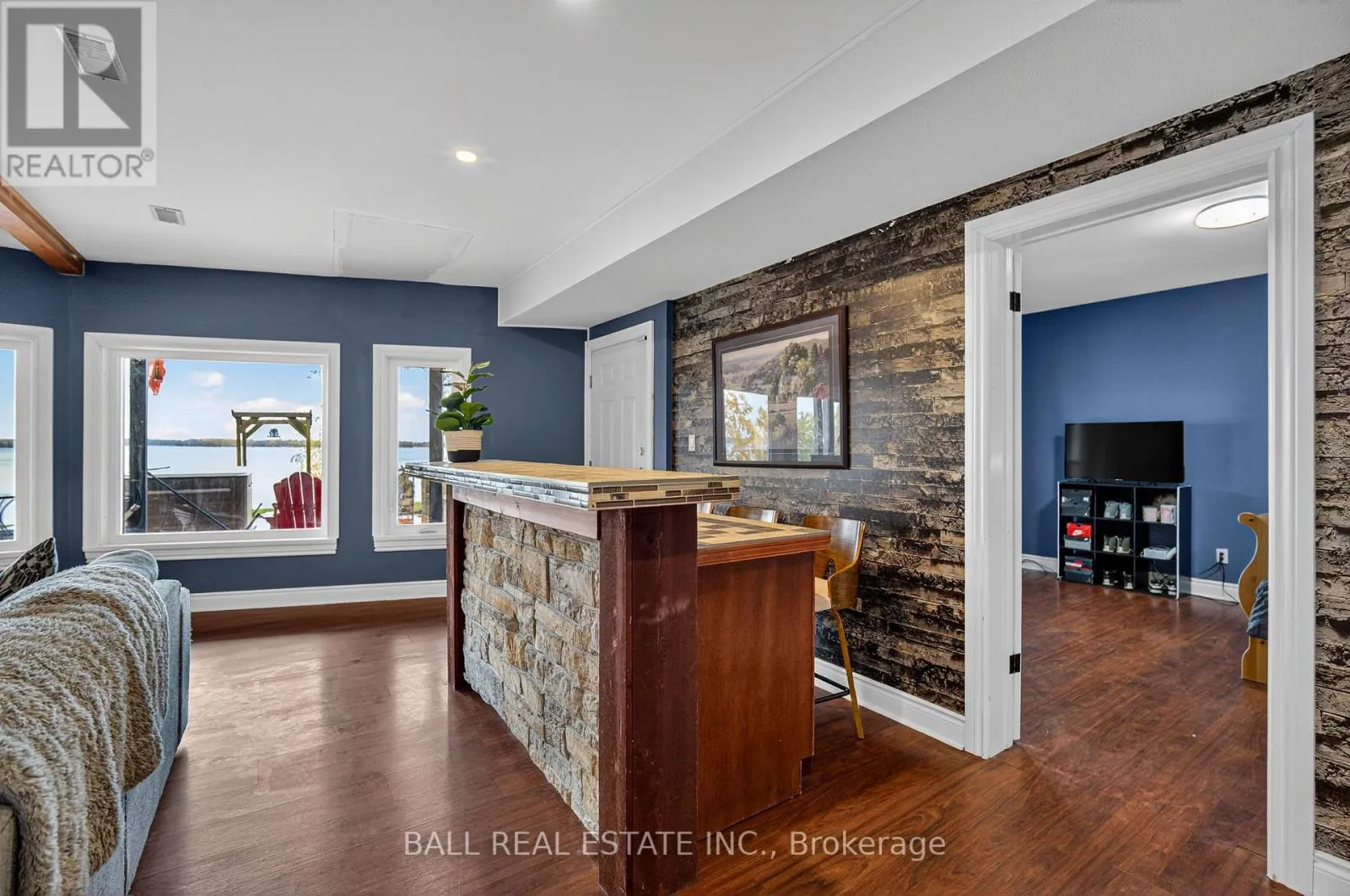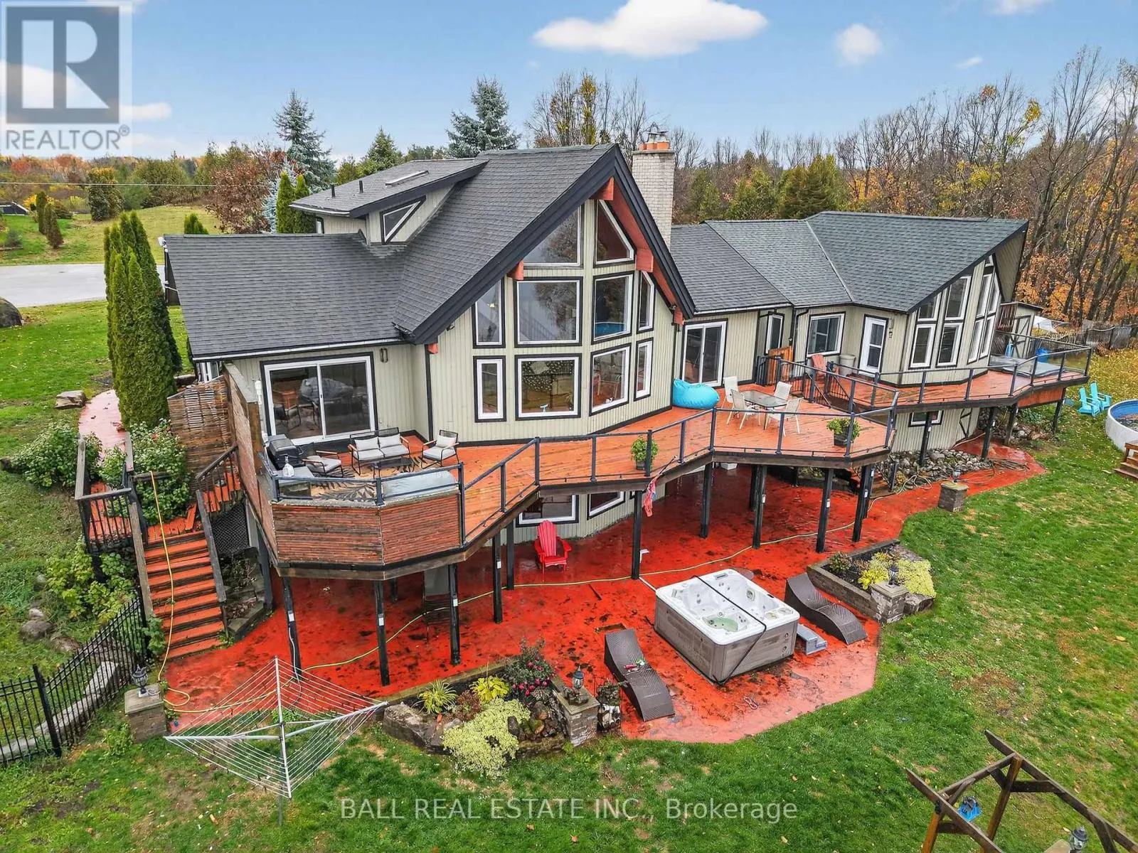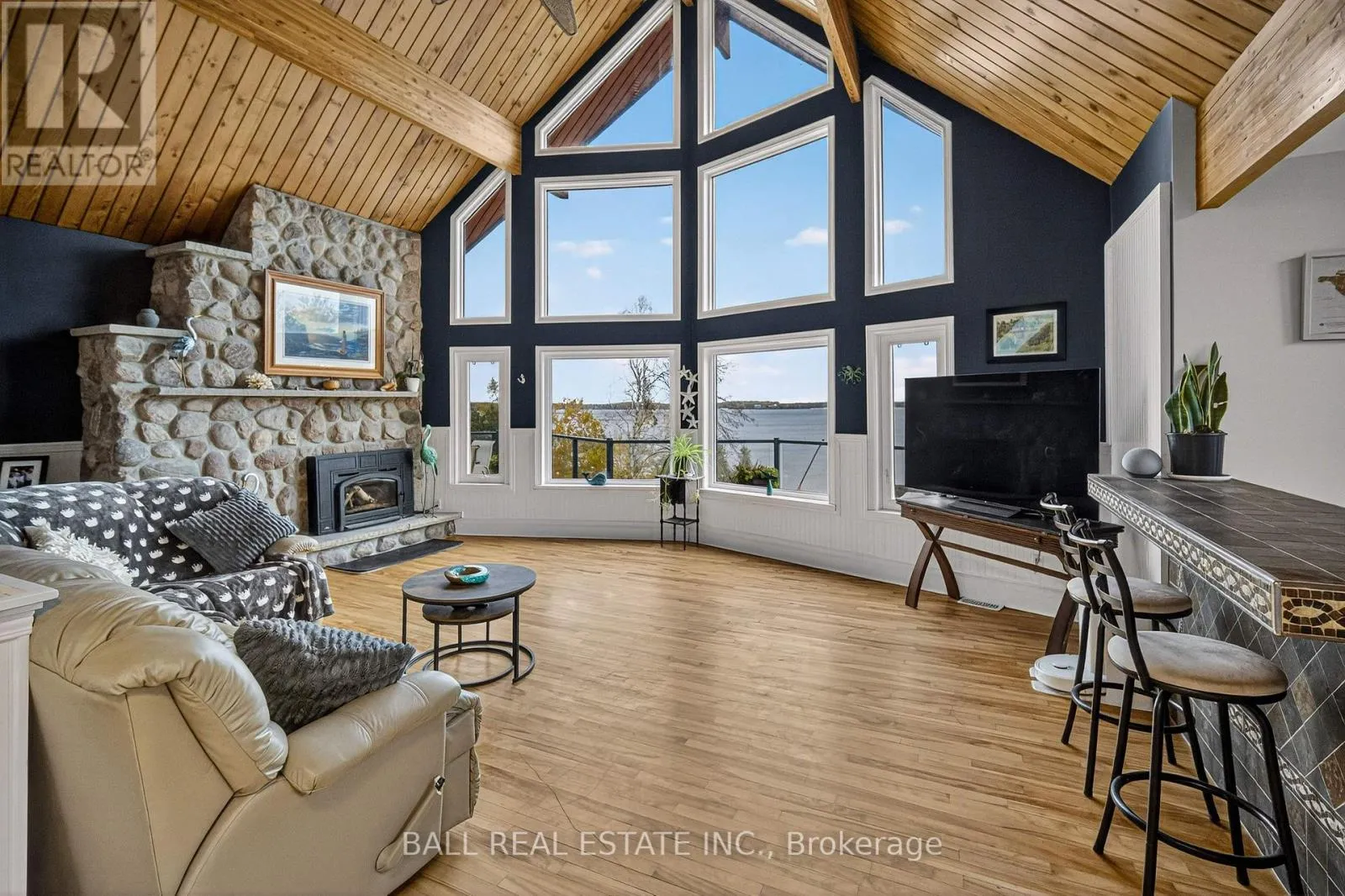Pigeon Lake Road and Peller Court Road Welcome to 151 Peller Court, an exceptional custom-built estate in the prestigious Rolling Hills Estates community, just minutes south of Bobcaygeon on Pigeon Lake-part of the renowned Trent-Severn Waterway. Nestled on a private 4.8-acre lot surrounded by mature trees, this stunning property offers unparalleled privacy & breathtaking sunrise views over the lake. Boasting over 3,200 sq. ft. of beautifully finished living space across three levels, plus a separate 359 sq. ft. in-law suite, this home is designed for both luxurious living & effortless entertaining. Open-concept main floor features a chef's dream kitchen with high-end appliances, abundant wood cabinetry & a large central island, all flowing seamlessly to an expansive deck overlooking the lake. The kitchen opens into a spectacular dining & living area highlighted by soaring cathedral ceilings, rich hardwood flooring, a striking stone fireplace & floor-to-ceiling windows that capture incredible lake views. The spacious primary suite offers a beautiful en-suite & separate soaker tub room as well as a private balcony-perfect for enjoying peaceful sunsets-while three additional bedrooms & three bathrooms provide ample space for family & guests. The fully finished lower level is an entertainer's dream, complete with two large rec rooms, a stone fireplace, wet bar & multiple walkouts to a lower patio with serene lake views. Outdoors, enjoy a beautifully landscaped setting with a fenced area ideal for children & pets, plus install your own dock on Pigeon Lake. The property also features an oversized detached triple-car garage with a paved driveway, a fourth bay workshop & multiple outbuildings for added functionality. Ownership includes a 1/17th share in the Rolling Hills Estates Association, granting access to the private boat launch, docking facilities, gazebo waterfront strip. Located on a municipally maintained road, this is a rare opportunity to enjoy luxury, privacy, and waterfront living at its finest. (id:27476)