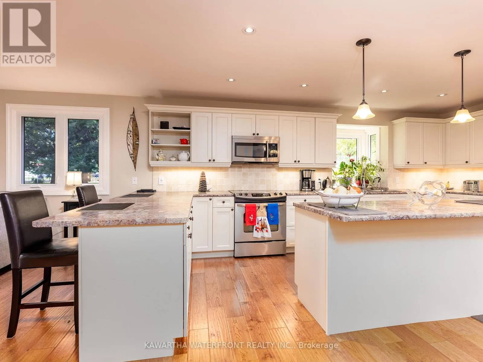 Cross Streets: County Road 121. ** Directions: County Road 121 to Northline Road. Welcome to this immaculately maintained country home ideally situated on an extremely picturesque private 1 acre lot within walking distance to amenities in Fenelon Falls. This 4 bedroom/3 bathroom home provides almost 2,800 sq ft of living area on 4 levels, and was totally renovated down to the studs in 2014 including new wiring and insulation. The open concept main living area is highlighted by a large and bright kitchen that overlooks the dining area and living room featuring a cozy propane fireplace. The main floor family room features a beautiful stone fireplace, laundry room, an enclosed front entrance porch and an expansive attached double garage. The upper level has three good sized bedrooms and a bathroom including a recently redone gorgeous walk-in shower. The basement includes a rec room, large guest bedroom and bathroom. The grounds are beautifully landscaped with an abundance of perennial beds and large mature trees. The west facing back yard features a covered flagstone patio facing a pond with waterfall. Enjoy your days in the large Artic Spa hot tub or sit around the fire pit to enjoy the sunsets. An insulated and heated garage/workshop is located in the back yard along with a garden shed for your toys. A new septic system was installed in 2014, and there is a lengthy list of recent enhancements, including a new asphalt driveway (2020) and furnace and a/c (2022). Close access to nearby ATV/snowmobile/walking trails! (id:27476)
