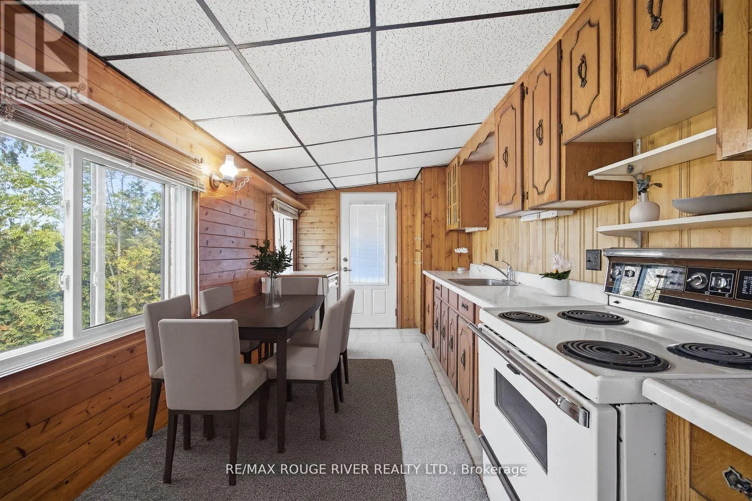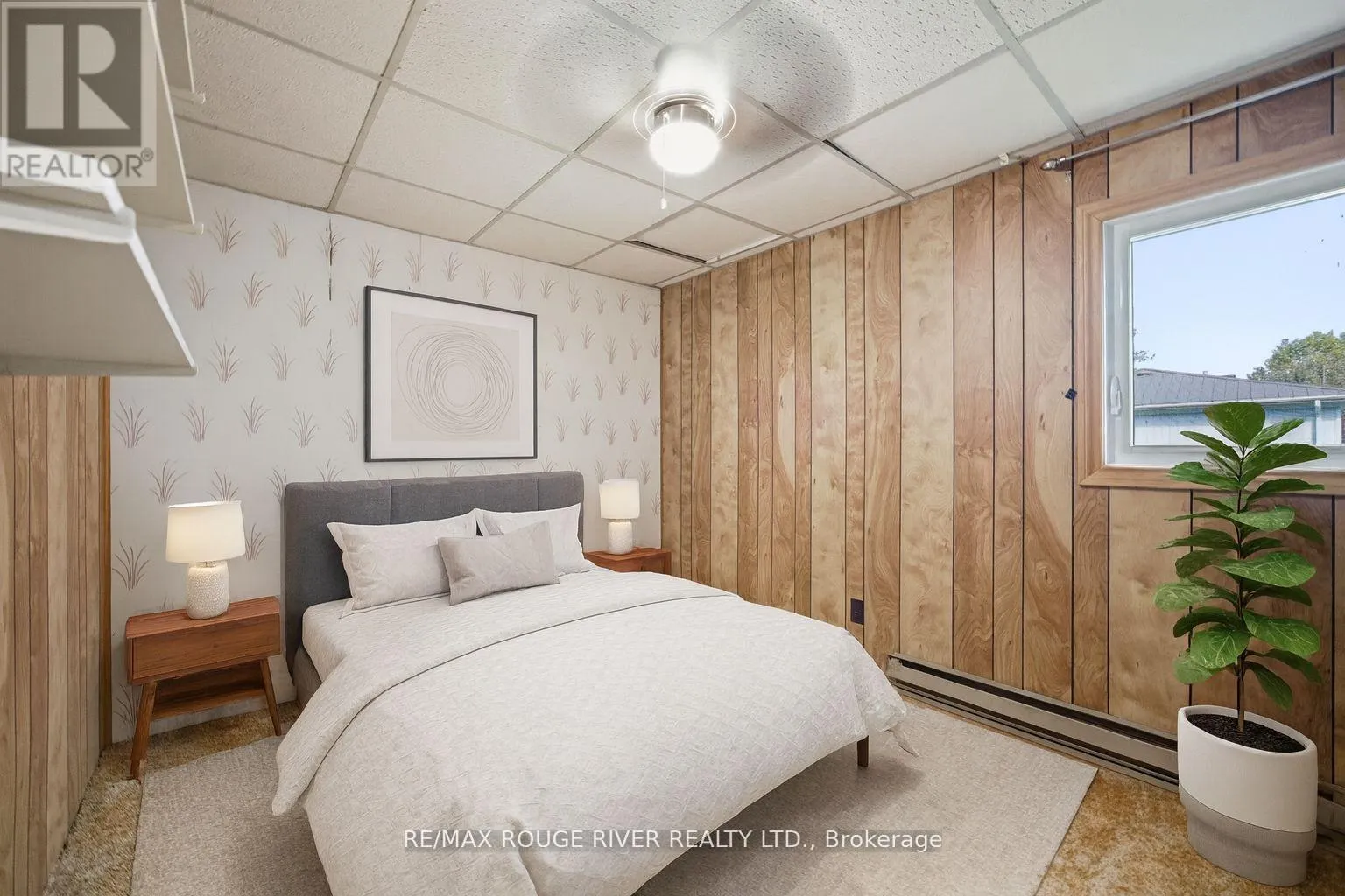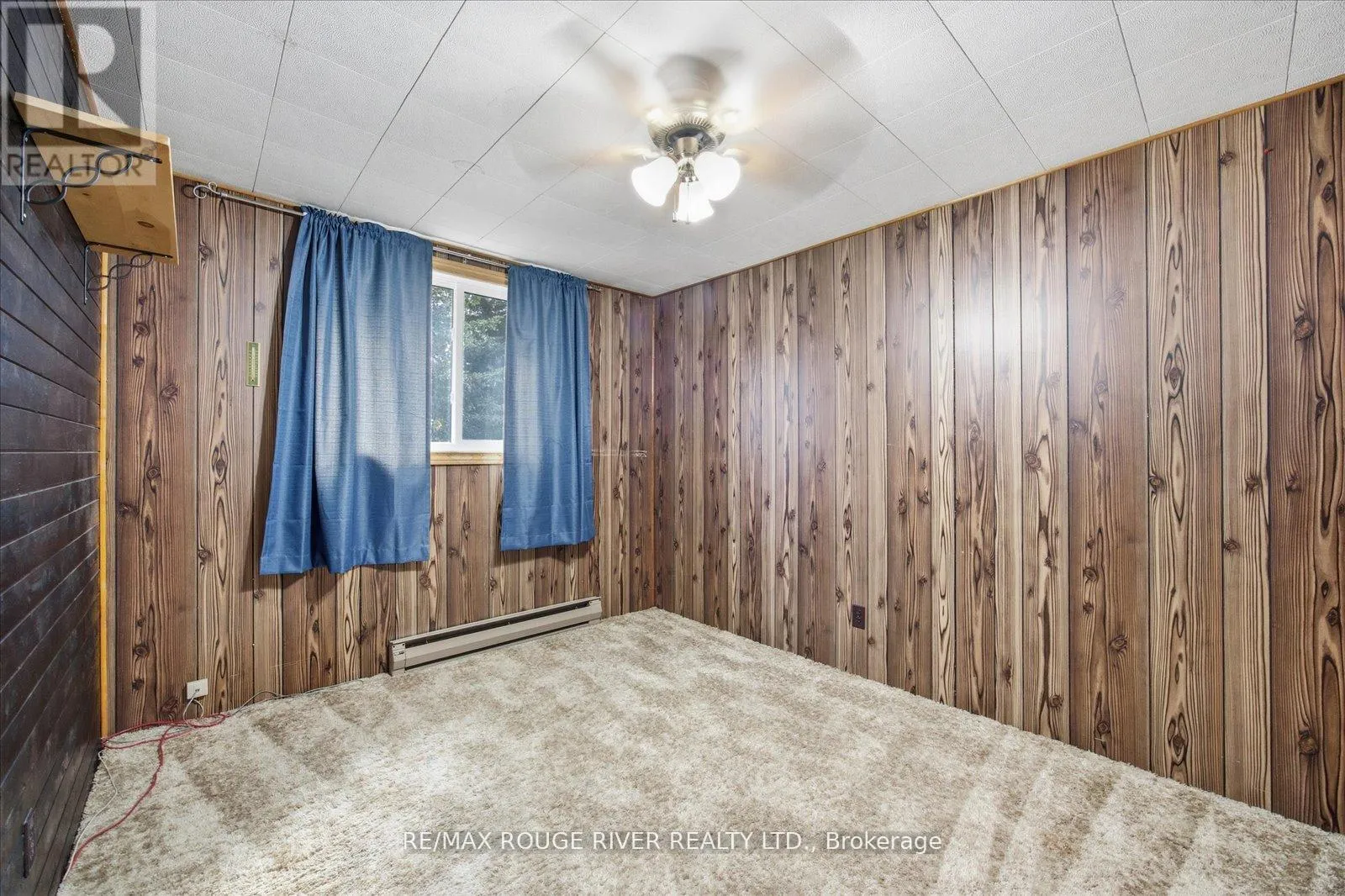 Mallard Bay Rd./Cedarview Dr. Welcome to this 3+1-bedroom detached walk-out bungalow in beautiful Omemee, offering direct waterfront living on the shores of Pigeon Lake! This home is full of character and charm, providing the perfect opportunity for new owners to personalize and make it their own. The main level features a cozy living room with a propane fireplace, a bright dining room overlooking the backyard and lake, and a functional galley-style kitchen ready for your custom touch. Three bedrooms and a convenient 2-piece bathroom complete this level. A stunning spiral staircase leads to the fully finished walk-out basement, featuring an additional bedroom, a 4-piece bathroom, a spacious recreation room with a wood-burning fireplace, and a workshop area. The sliding doors from the rec room open to a large backyard perfect for relaxing or entertaining. Enjoy the outdoors with your own dry boathouse, complete with a concrete ramp into the water and a wooden dock for lakeside enjoyment. A large double-car garage provides ample storage and parking. This home is heated by both forced-air propane and electric baseboard heaters, offering flexibility and comfort throughout the seasons. Whether you're looking for a year-round residence or a peaceful cottage getaway, this property offers the best of waterfront living with endless potential. Some photos have been virtually staged (id:27476)