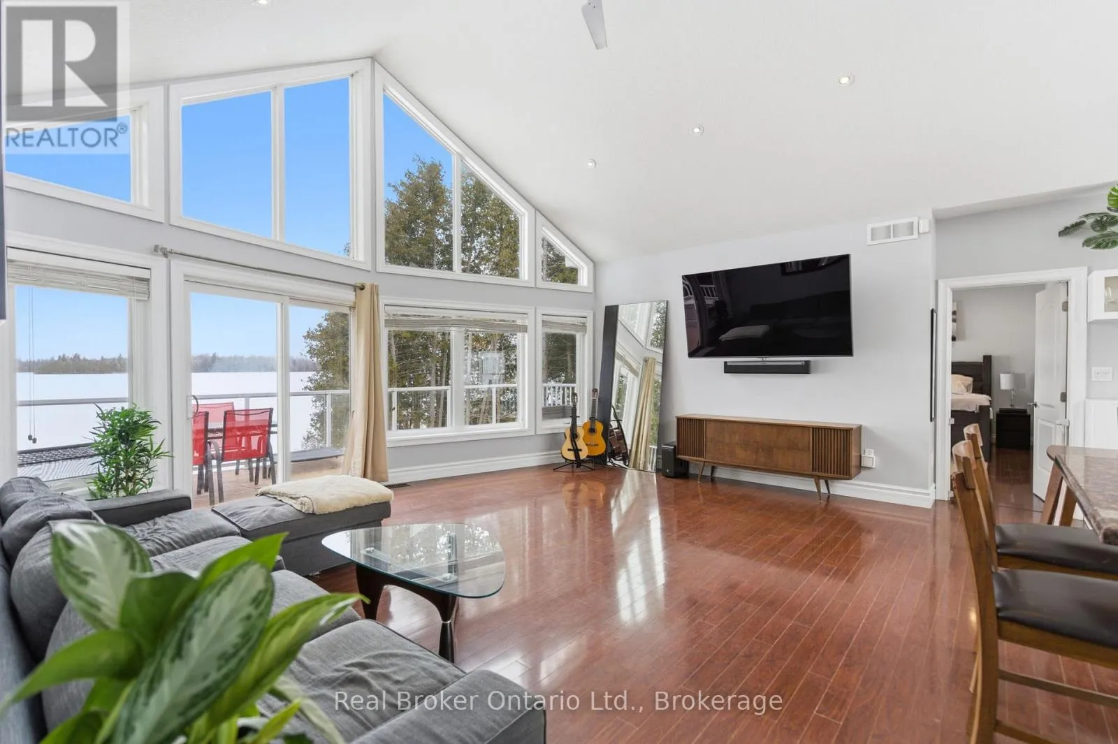Portage Rd to North Taylor Welcome to 19 North Taylor Road, a custom-built waterfront retreat on Mitchell Lake! Just a short boat ride away, you'll find Balsam Lake via the Trent-Severn Waterway. This stunning property offers 106 feet of shoreline, perfect for boating, fishing, and enjoying breathtaking sunsets. Inside, the open-concept layout features a gourmet kitchen with granite countertops, a center island, and stainless steel appliances. The living and dining areas flow seamlessly to a raised deck overlooking the lake-ideal for entertaining. The home boasts 3 spacious bedrooms and 3 bathrooms, including a primary suite with a custom shower. The fully finished lower level provides a large recreation room, walkout to the yard, workshop/craft space, and a convenient 2-piece bath. Outside, enjoy a covered front porch, detached double-car garage, an additional two-car parking pad, and beautifully landscaped grounds. Recent upgrades include a brand-new hot tub purchased in October 2024 and shoreline improvements with professionally placed stonework along the waterfront. Located just minutes from Beaverton and Lindsay, with easy access to ATV and snowmobile trails, this property blends year-round comfort with cottage-style living. (id:27476)