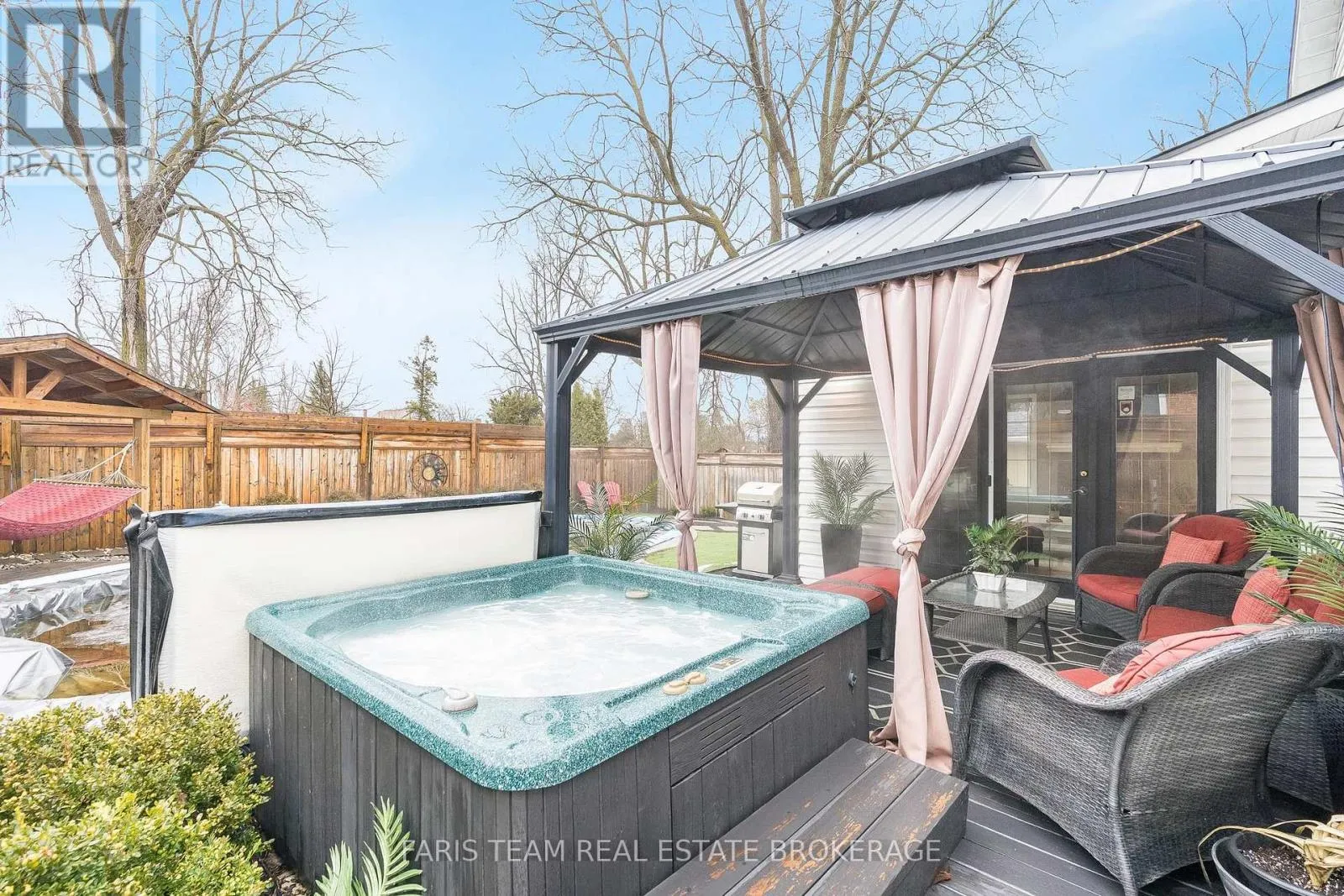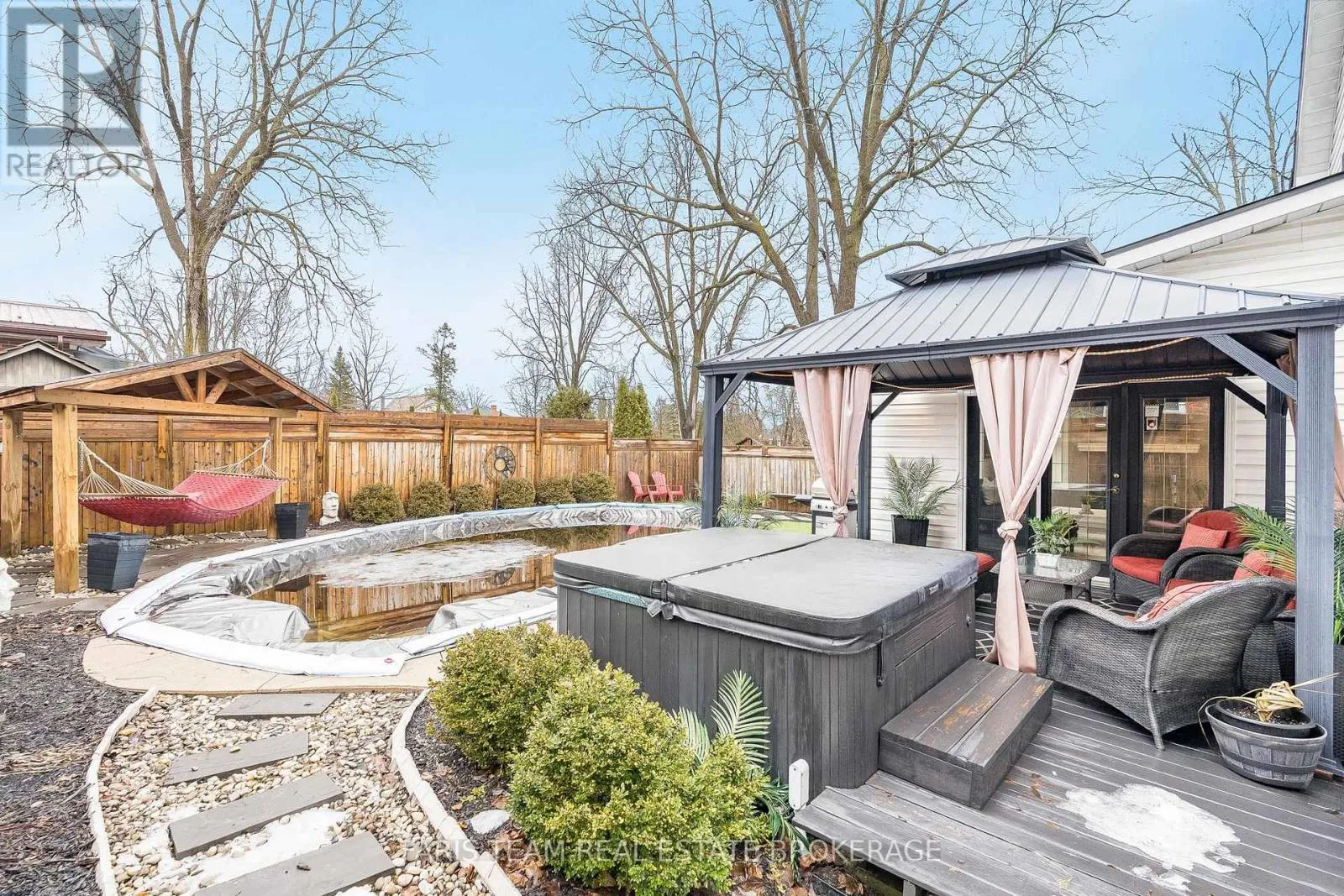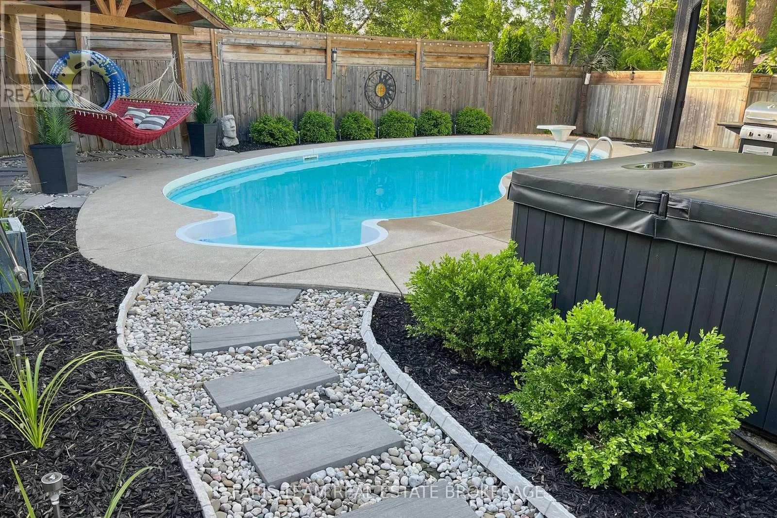 Victoria Ave N/Regent St Top 5 Reasons You Will Love This Home: 1) Step into your own private backyard retreat where every detail is designed for enjoyment, from the deck with ample seating space to the relaxing hot tub, a charming gazebo for shaded gatherings, and a sparkling inground pool that creates the perfect setting for unforgettable summer days and evenings, plus additional updates include new pool liner, pool cover, and brand new hot tub cover 2) Designed with entertaining in mind, the home delivers a seamless flow from the open-concept eat-in kitchen into the warm and inviting family room with a walkout to the backyard, creating a natural connection between indoor and outdoor living that's perfect for hosting everything from lively gatherings to quiet nights at home 3) Filled with natural light from overhead skylights, the main level showcases a stunning family room anchored by a cozy gas fireplace, with generously sized principal rooms that bring together comfort and charm in a way that feels both elevated and welcoming 4) With four spacious bedrooms, three well-appointed bathrooms, and a versatile lower level recreation room, the home hosts plenty of room for growing families, visiting guests, or the flexibility to create a dedicated home office, adapting effortlessly to today's lifestyle needs 5) Ideally located in Lindsay's desirable North Ward, this home is nestled in a quiet, family-friendly neighbourhood with convenient access to nearby parks, schools, and everyday amenities. 1,481 above grade sq.ft. plus a finished lower level. (id:27476)