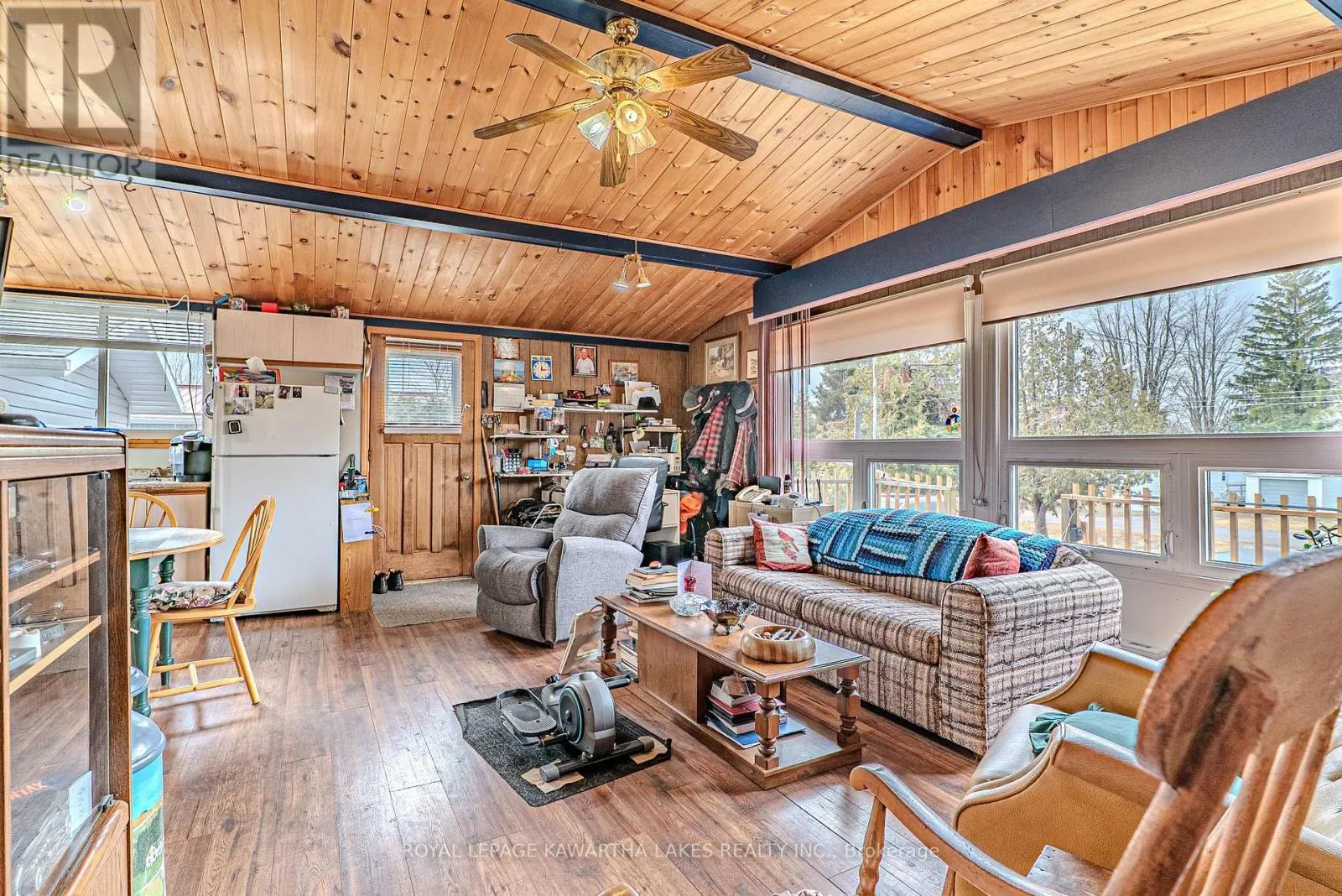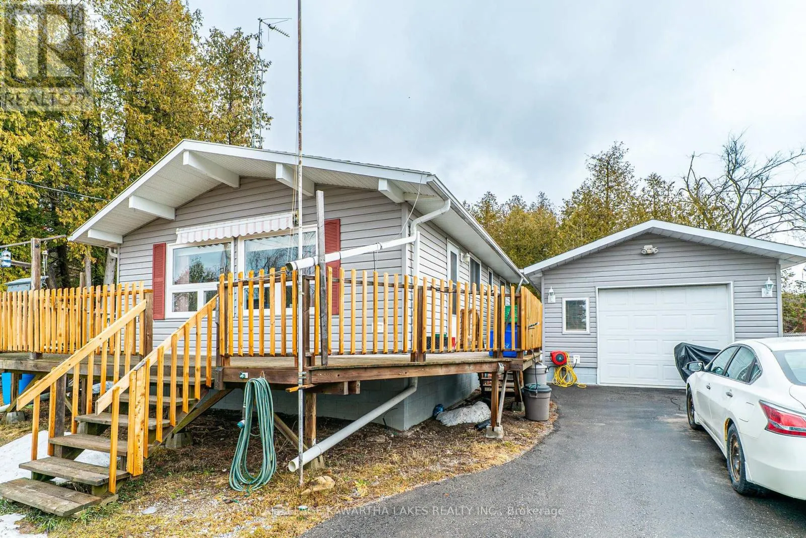 Cross Streets: County Rd 8/Sturgeon Pt Rd. ** Directions: HWY 121 TO COUNTY RD 8 TO STURGEON PT RD TO BLYTHE SHORE RD. Charming 2-bedroom bungalow outside of Fenelon Falls offering great potential for first-time buyers, investors, or those looking to downsize. This home features an eat-in kitchen, a bright living room with a propane stove and walkouts to the deck, a 4-piece bath, 2 bedrooms, and convenient main floor laundry. Situated on a spacious lot with a large driveway providing ample parking, plus a detached heated single car garage. Enjoy public water access just steps away at the end of the road, perfect for making the most of summer in the Kawarthas. (id:27476)