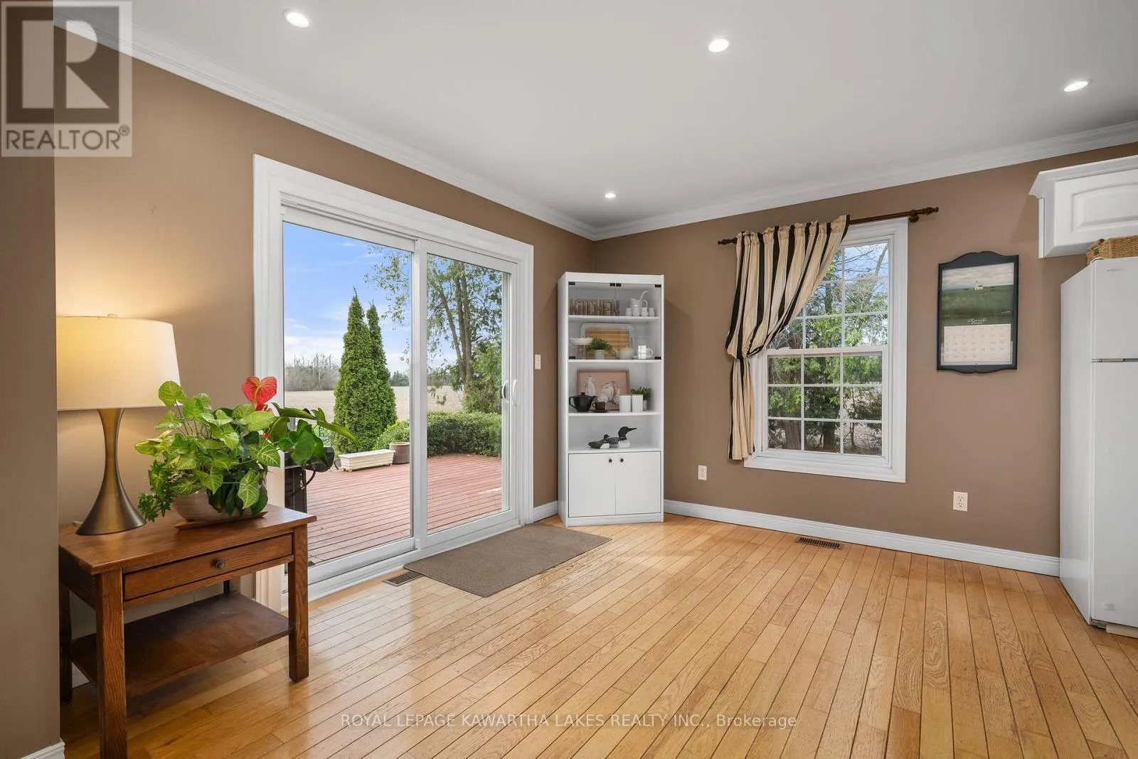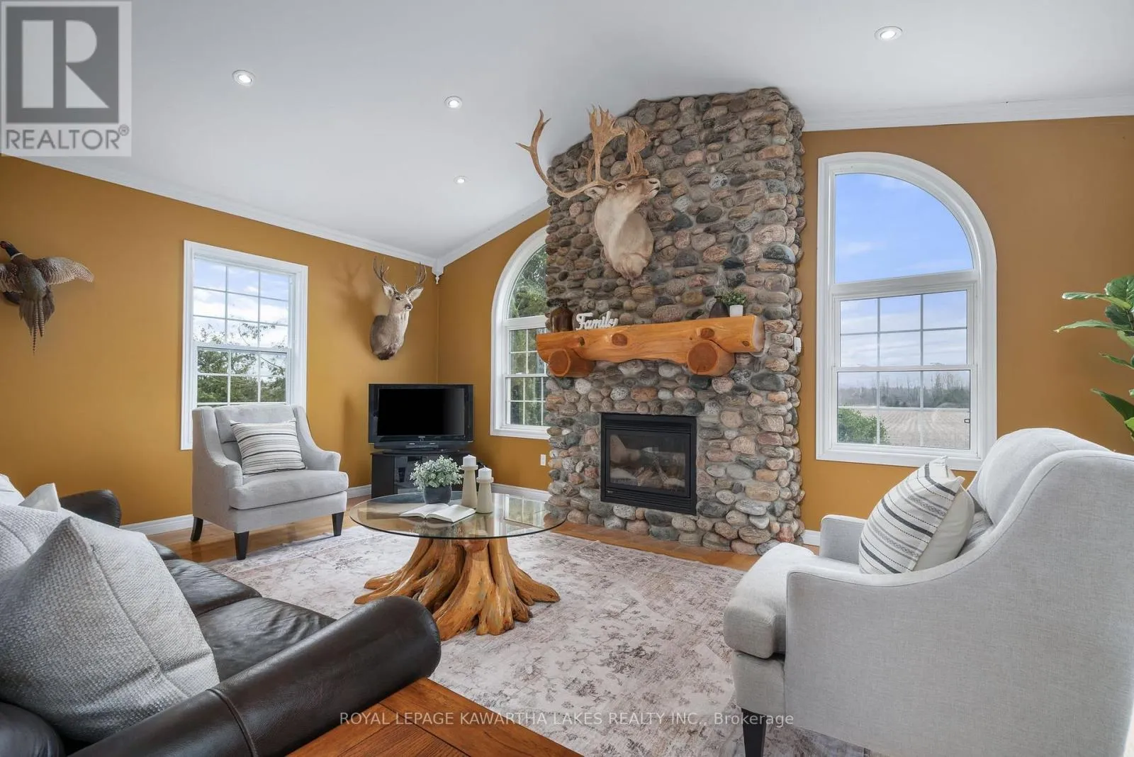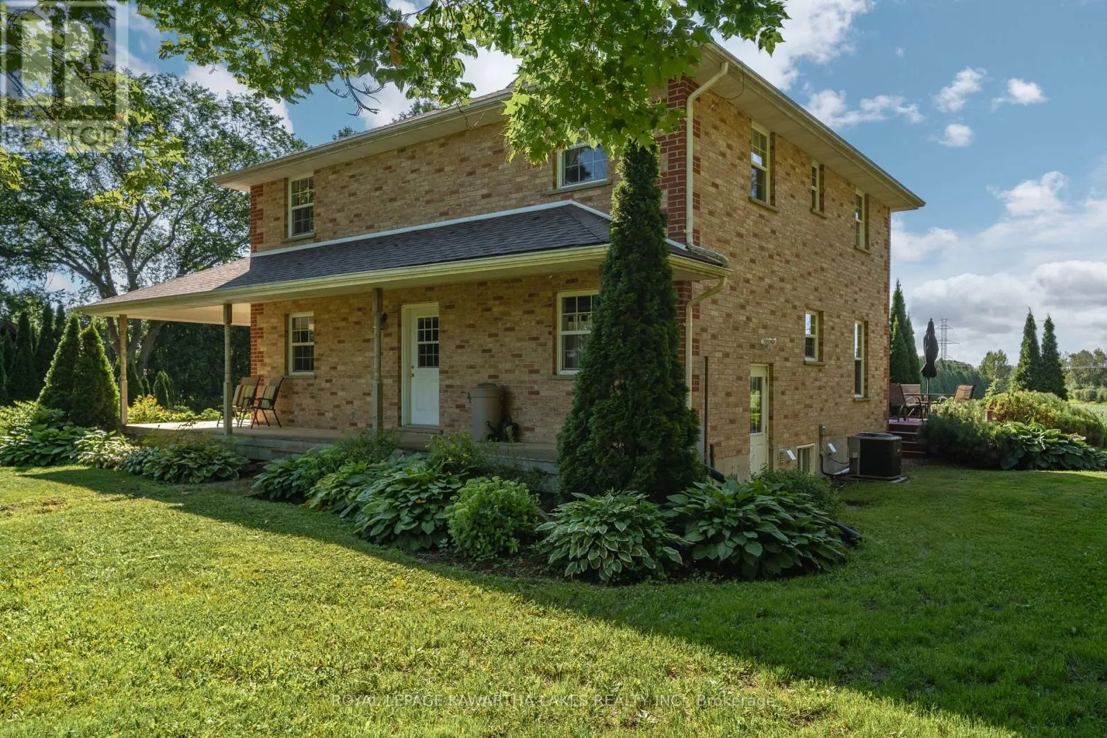 Cross Streets: Eldon/ Woodville. ** Directions: Eldon Road North to Woodville Road then west to first farm on south side. This Two-storey brick farmhouse is the country retreat you have been searching for, for your family. Located on a hard top road close to the quaint village of Woodville between Lindsay & Beaverton this 93-acre Reproduction farm house (2001) features a stunning 30 X 20 Great Room, 4 spacious bedrooms, 2 full baths, and a main floor office. Other features of the home include a Wrap Around Porch, Open Concept Kitchen/ Dining Room , Two Walk outs to a Private deck, and main floor laundry. Partially finished basement with a walk-up to a Private Park Like setting with perennial gardens and open farm fields . The property also includes a 29' x 70' commercial shop with a 24' x 40' portable addition, heated by both a pellet stove and a new propane furnace (2025). This high-visibility location is ideal for a family business, with the current successful operation having thrived here for many years. 50 Acres of fertile, high producing Otonabee Loam and approximately 38 acres of mixed bush. Solar panels provide Passive Income of approx $11,000 annually for the remainder of the contract. Just over an hours drive from the G.T.A. for an easy commute! (id:27476)