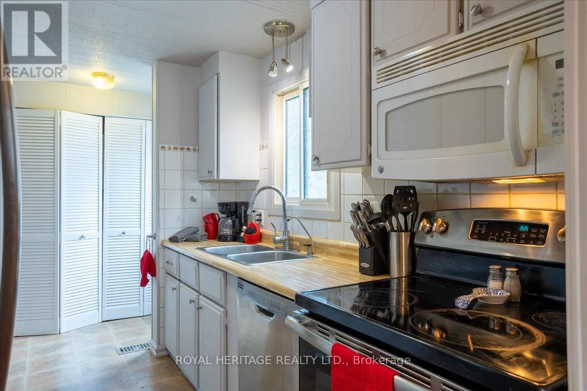 Cross Streets: BETWEEN PARK & CIRCLE. ** Directions: HWY 35 TO CAMBRAY ROAD TO JOY VISTA FOLLOW TO SIGN AT 39. Welcome to Joy Vista Estates, where comfort, convenience, and community come together in this charming bungalow. This comfortable home offers 3 bedrooms and 1 bath, all on one level-making everyday living simple and accessible. Enjoy the peace of mind that comes with low monthly fees, which cover essentials like snow removal, garbage and recycling pickup, water and sewer, and even a portion of property taxes-helping you manage your budget with ease. Set in a quiet location directly across from a greenspace and surrounded by scenic farmland, this home offers a relaxed, rural feel while still being part of a friendly, close-knit community. Residents have exclusive access to a recreation center featuring an inground pool, accessible entry, plenty of parking, and a variety of social events-perfect for staying active and connected. Inside, you'll appreciate the fresh paint and durable laminate flooring throughout, providing a low-maintenance living space. The private rear yard and front sitting porch create ideal spots to unwind or entertain. The functional layout includes a bright living room with a cozy propane fireplace, open to the dining area, along with a galley kitchen featuring a walk-in pantry. A convenient laundry closet offers direct access to a brand-new garage with secure entry into the home-adding both practicality and peace of mind. Located just minutes from Lindsay and approximately two hours from the GTA, this property offers the perfect balance of tranquility and accessibility. Discover affordable living in cottage country without compromising on comfort or lifestyle. Home has central air-conditioning and boasts the convenience of propane forced air heating. (id:27476)