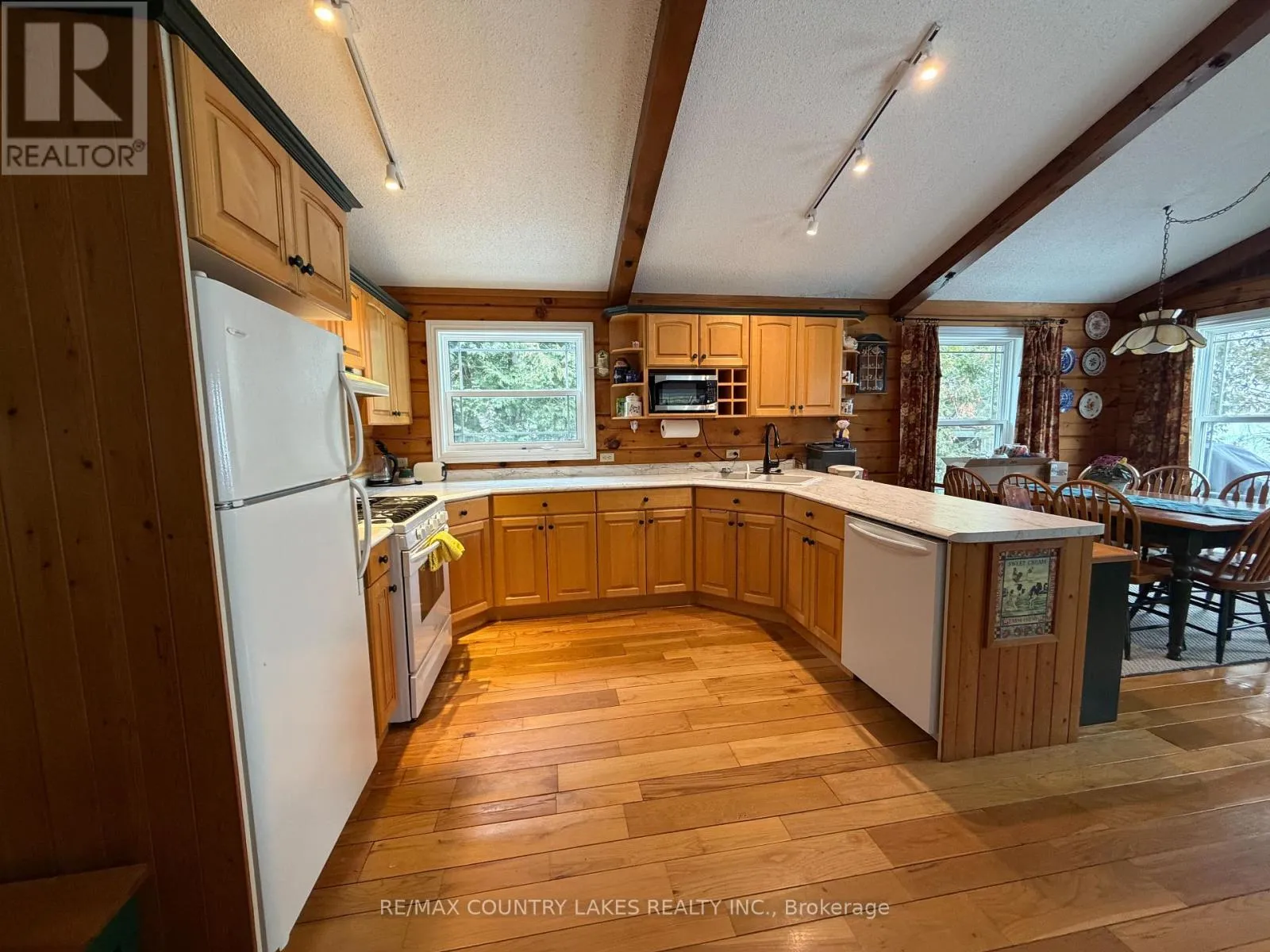 Cross Streets: PORTAGE ROAD AND CENTENNIAL PARK RD. ** Directions: HWY 48(PORTAGE RD) TURN ONTO CENTENNIAL PARK RD AND DRIVE FOR 2 MIN, TURN RIGHT ONTO DRIFTWOOD SHORES AND LOOK FOR 135!. Enjoy Waterfront Living and Sunsational Sunsets on Canal Lake! Welcome to 135 Driftwood Shores, a charming Confederation log home set on a beautiful 105 ft sandy-bottom waterfront lot on sought-after Canal Lake, part of the renowned Trent-Severn Waterway. This warm and inviting 4-bedroom, 2-bathroom home blends rustic character with comfortable modern living. Inside, you'll find stunning hardwood floors throughout and a bright open-concept layout combining the kitchen, dining, and living areas-perfect for entertaining family and friends. The cozy propane fireplace adds warmth and ambiance for year-round enjoyment. The primary bedroom features a walkout to a wraparound deck and screened-in gazebo, offering the perfect spot to relax and take in peaceful waterfront views. Recent updates and features include UV filtration system (2025), sump pump (2025), well pump (2024), propane furnace (2021), water softener, and newer windows. The home also offers a spacious attached single-car garage with pass-through access, workshop area, and utility sink, ideal for hobbyists or additional storage. Enjoy excellent fishing and boating on Canal Lake, with direct access to the Trent-Severn Waterway, and explore nearby attractions like the historic Kirkfield Lift Lock. Conveniently located just 1 hour 38 minutes from the GTA, making it the perfect waterfront retreat or year-round home. (id:27476)