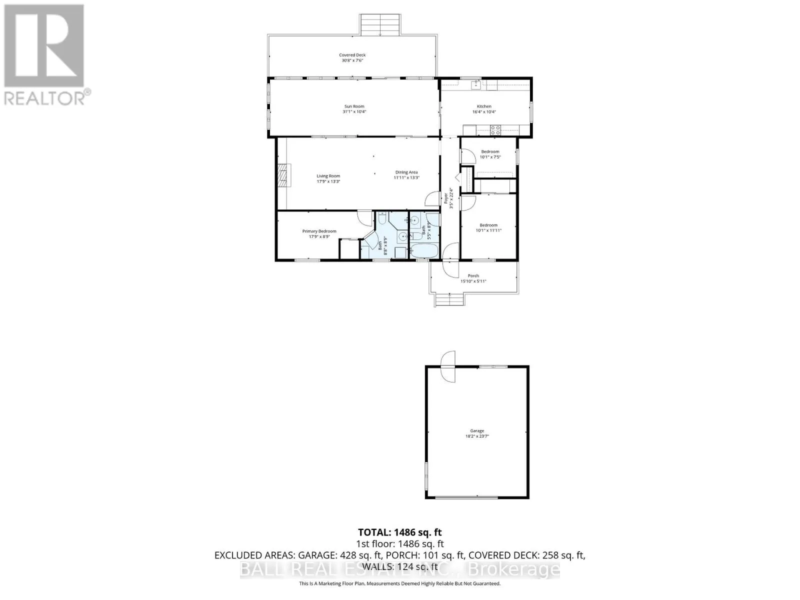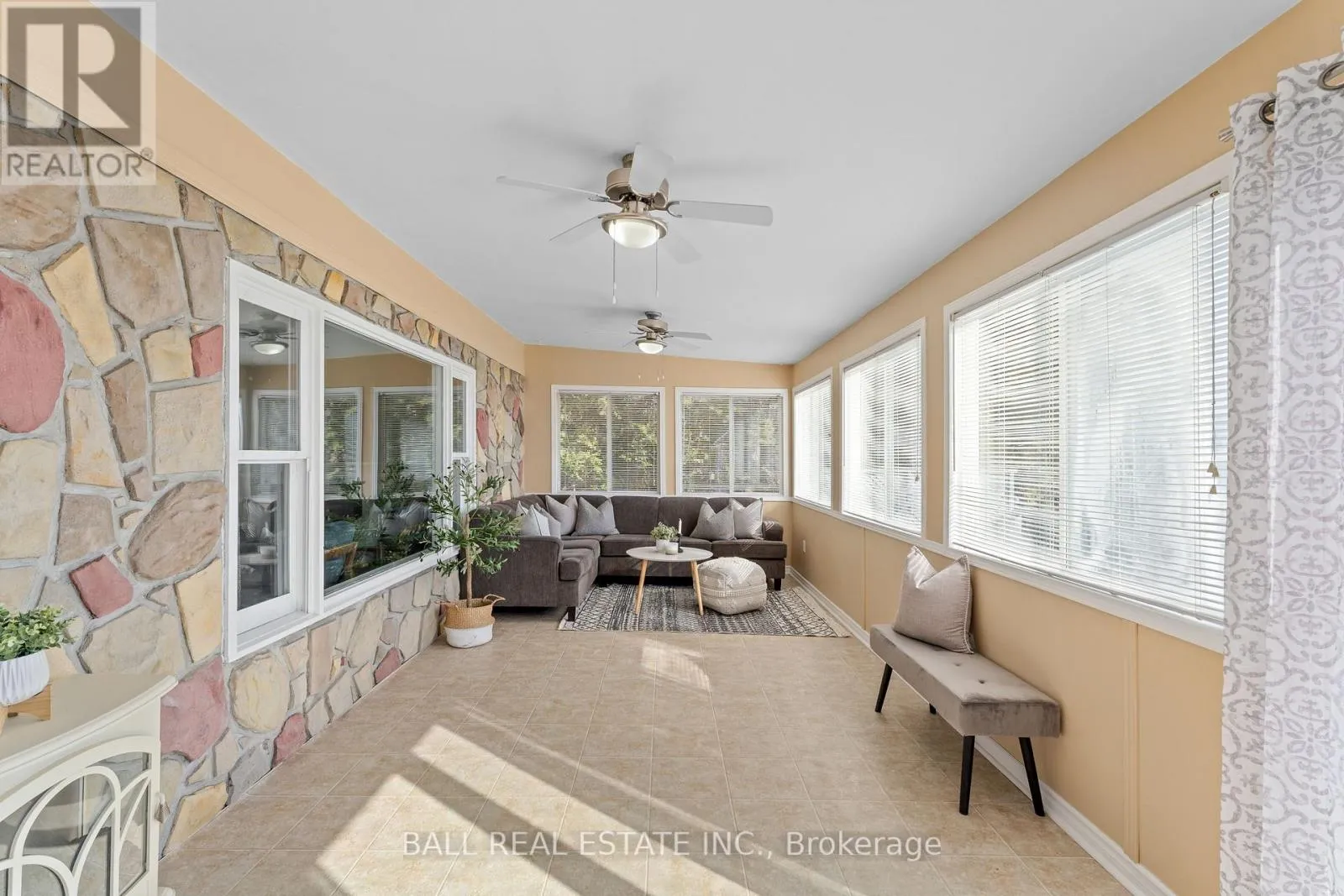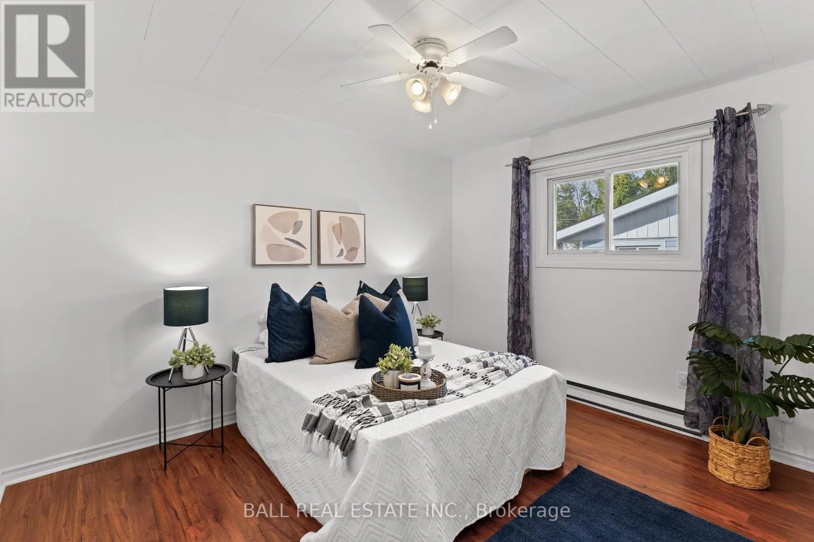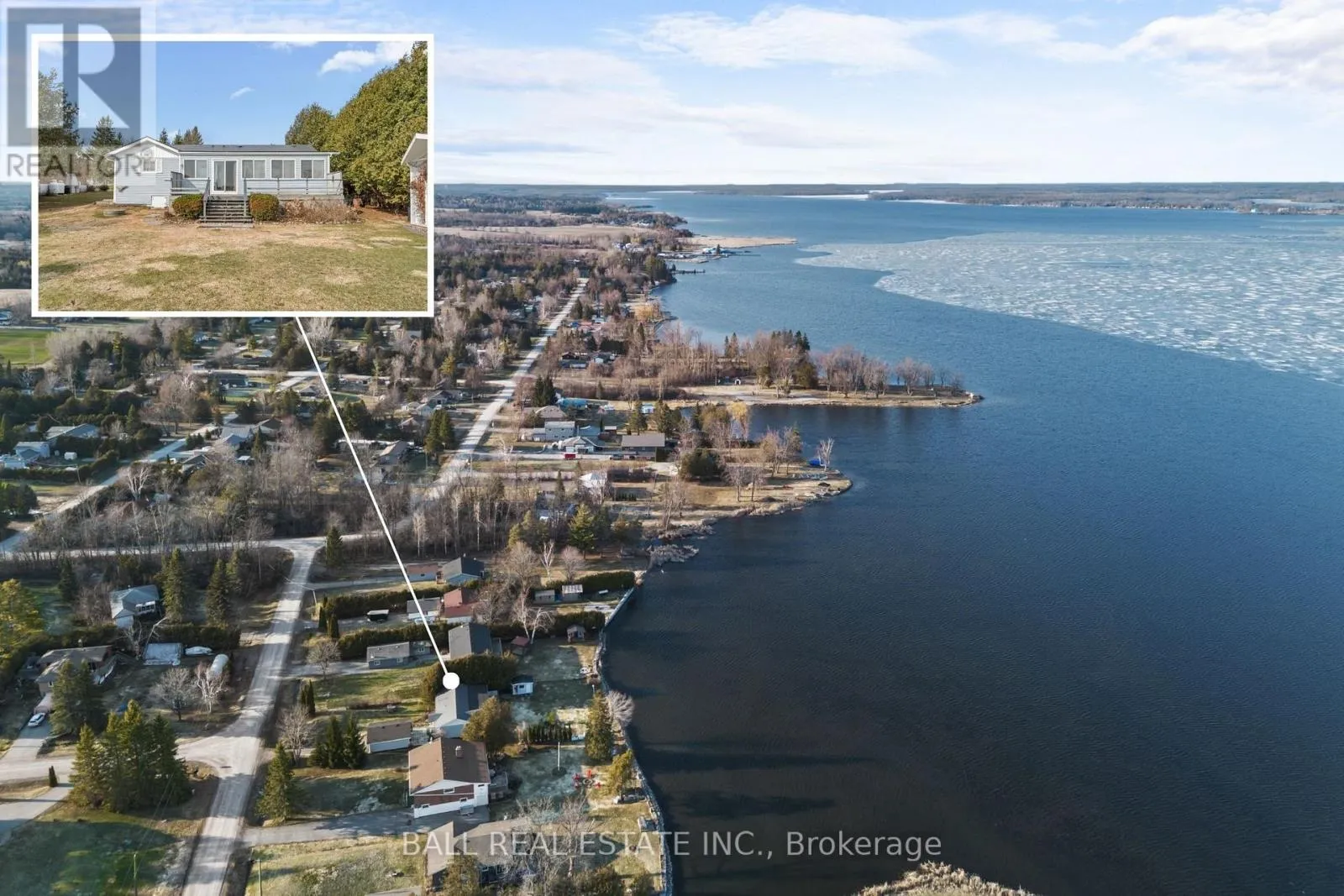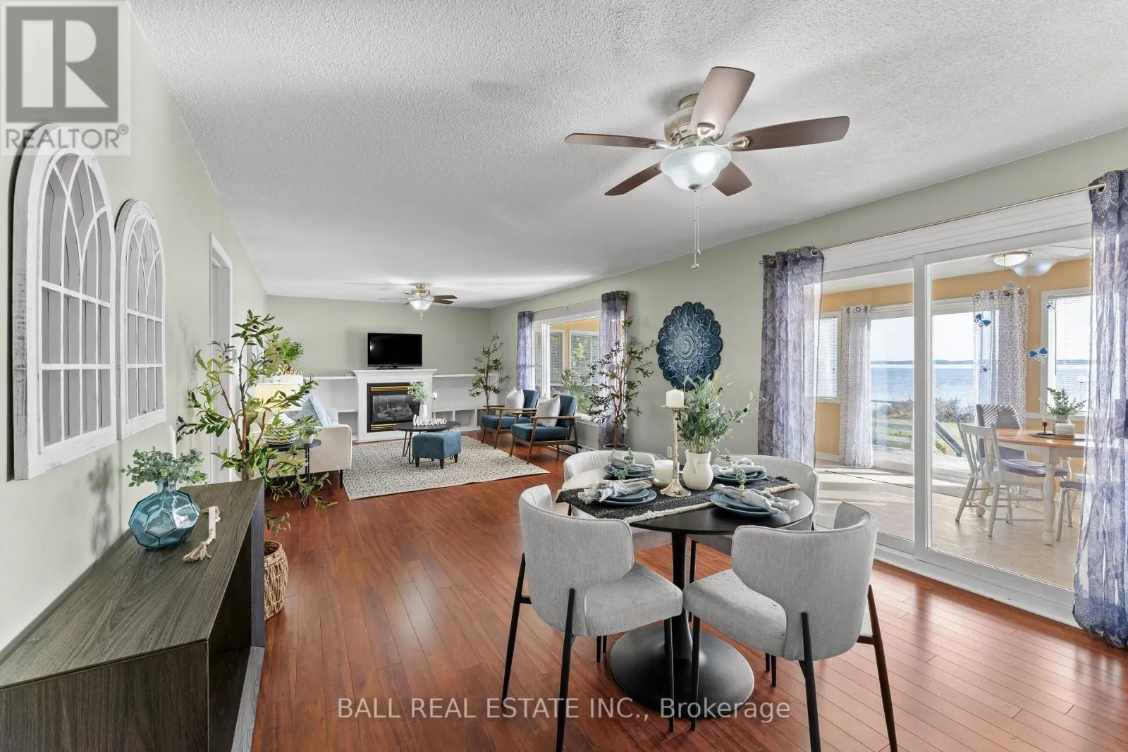 Cross Streets: KINGS WHARF RD./LAKEVIEW CRES. ** Directions: PIGEON LAKE RD. TO KINGS WHARF RD. TO LAKEVIEW. Welcome to your four-season waterfront home on beautiful Pigeon Lake, part of the iconic Trent-Severn Waterway offering endless boating and the ability to explore five lakes without passing through a lock. With eastern exposure and expansive views, this property captures stunning sunrises and the best of relaxed lakefront living just minutes from Bobcaygeon. 1,486 sq.ft. of tastefully renovated over the years, this well-maintained home offers a functional and inviting layout. Step inside to a welcoming entry with a 4-piece bathroom and two bedrooms, ideal for family or guests. The open-concept living and dining area is warm and comfortable, centered around a propane fireplace, while the galley kitchen overlooks the lake. The private primary suite features a 3-piece ensuite with convenient in-suite laundry. A standout feature is the expansive insulated sunroom addition, filled with natural light and offering panoramic lake views, with patio doors leading to the waterside deck perfect for entertaining or unwinding at the water's edge. Set on a level lot with 75 feet of armour stone shoreline, this property includes a dock, a charming bunkie for additional sleeping space, and a detached 1.5 car garage (18'2" x 23'7") ideal for storing all your waterfront essentials. A paved driveway, drilled well, crawl space, 200 amp breakers, metal roof, baseboard heating throughout, and a propane fireplace for added comfort make this a practical and enjoyable home in every season. Located in the desirable Lakeview Estates community, residents enjoy access to a private park with sandy, weed-free swimming, a picnic area, and playground. With a municipally maintained year round road, natural gas available, and close proximity to both Bobcaygeon and Lindsay, this is an ideal opportunity to enjoy convenient, four-season waterfront living. (id:27476)