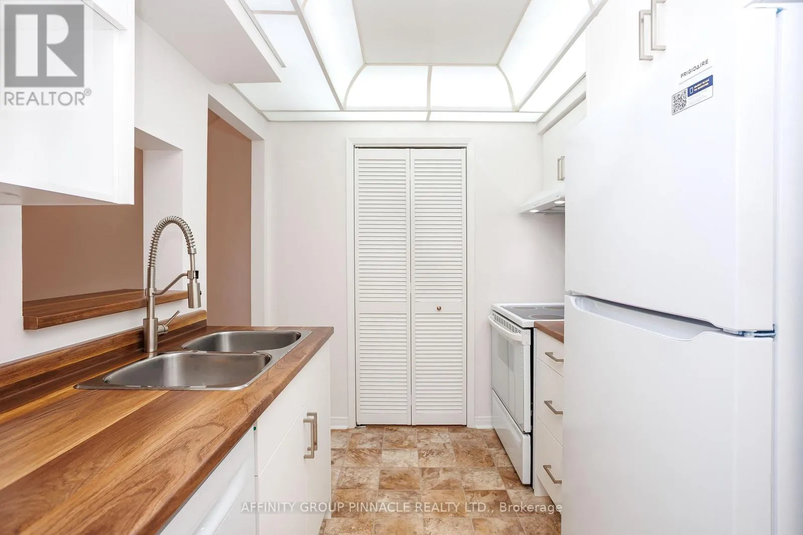 Heritage Way/Colborne St W Move-in ready and recently updated! This 1-bedroom, 1-bathroom condo is ideal for first-time buyers or downsizers in the desirable Heritage Condos. Enjoy modern living with a newly renovated kitchen and bathroom (2026), in-suite laundry, and recent mechanical updates, including air-conditioning (2023) and an owned hot water tank (2023). The building offers exceptional amenities: a rooftop patio with BBQ for quick access, an outdoor pool, a fitness room, a workshop, and a guest suite. Elevator access is available to all floors, including the underground parking garage. The unit includes one parking space and a storage locker. (id:27476)