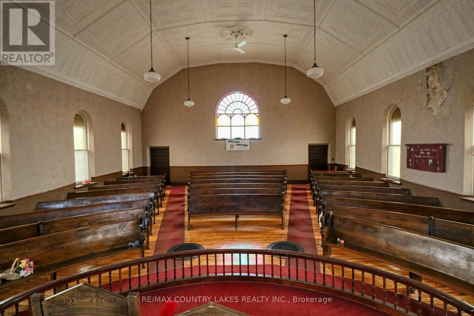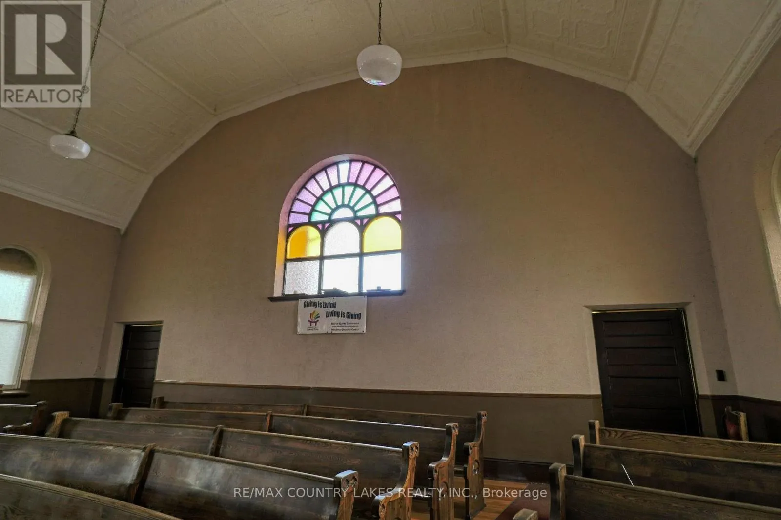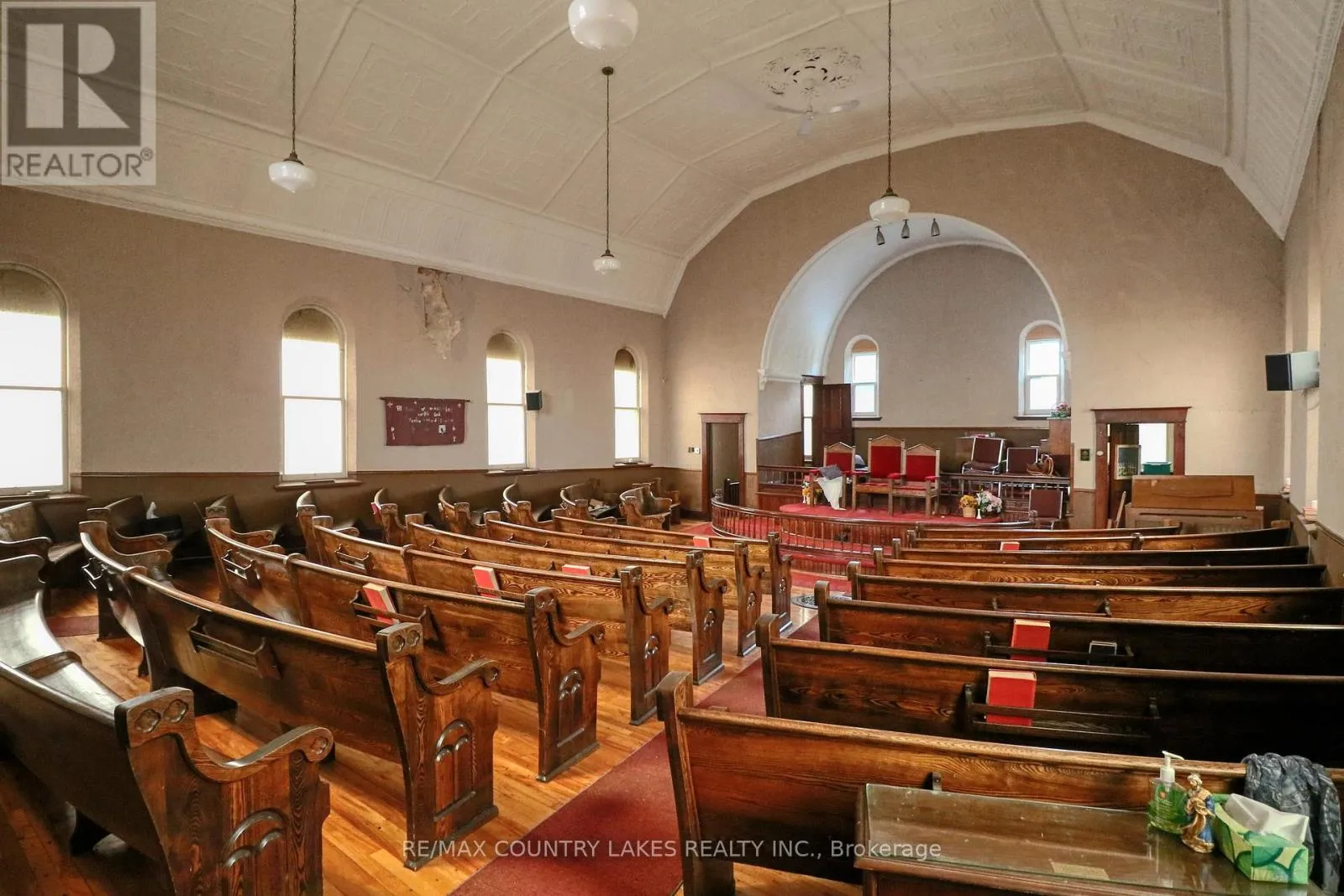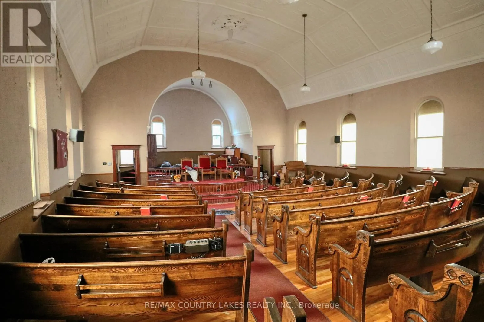 Cross Streets: County Rd 46 & Peniel Rd. ** Directions: Hwy 7, County Rd 46. Opportunities like this don't come along often. This solid all-brick former church with a durable steel roof offers incredible bones and endless potential for the right buyer with vision. Set on a generous 218' x 99' lot with ample parking and a drilled well, the property provides approximately 3550 sq ft of finished above-grade space ready to be reimagined. Step inside to a truly unique Great Room featuring soaring cathedral ceilings, original pews, a front stage, and impressive ceiling height-ideal for adding a mezzanine level to create additional bedrooms or living space. A double stairwell leads to the upper level, opening the door for a variety of layout possibilities. The finished lower level adds even more flexibility with two kitchens, space for at least two bedrooms (with potential for more), a large recreation area, furnace room, storage, and both a 2-piece and 3-piece bath (with shower to be completed). Character-rich details like original stained glass windows create a stunning ambiance-especially when lit by the moon-while the peaceful setting offers quiet country nights and picturesque farm field views. Located just 15 minutes to Lindsay for all major shopping and only 5 minutes to Woodville for small-town essentials, this is a rare chance to enter the market at an affordable price with a property you can live in while transforming it into something truly special. (id:27476)