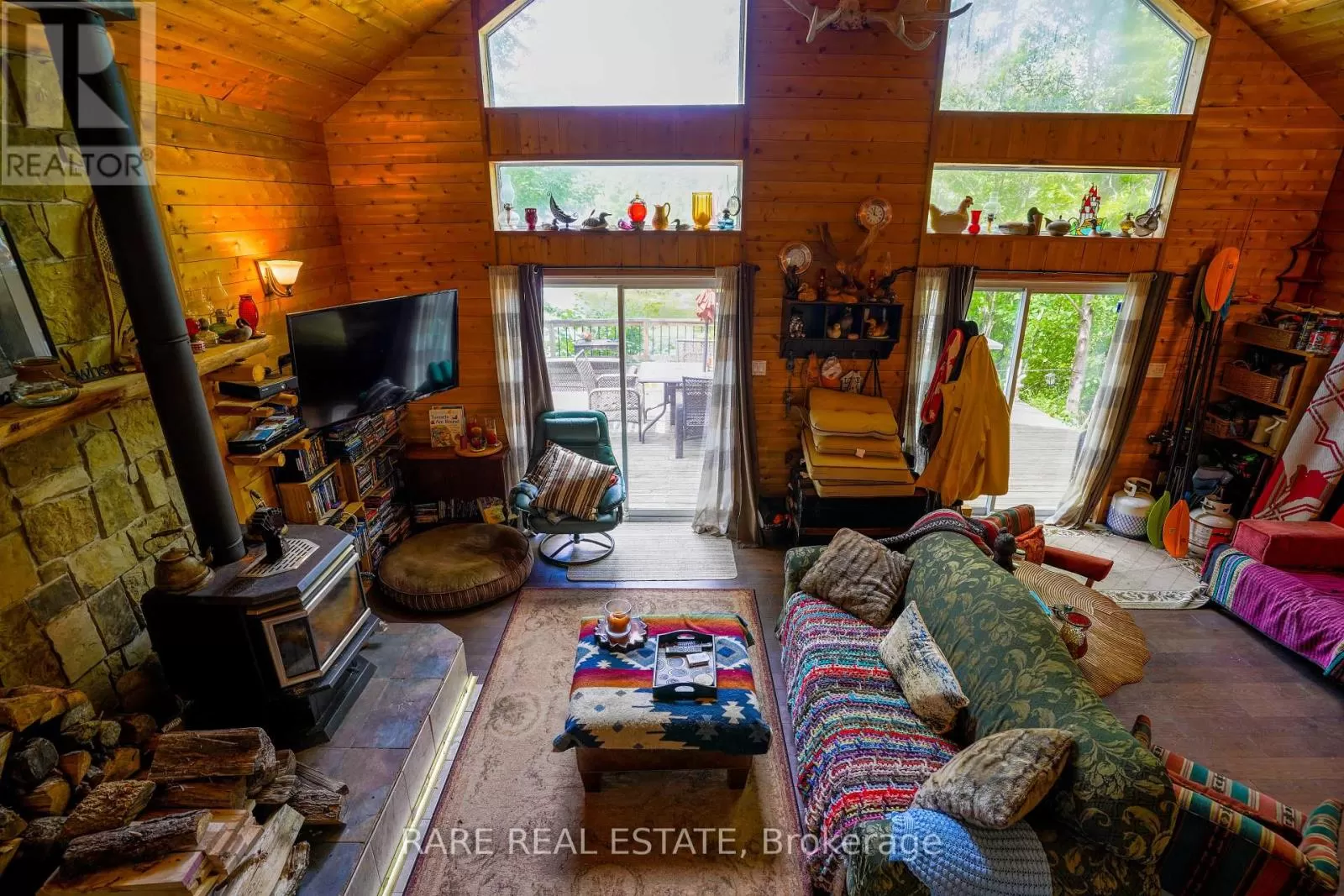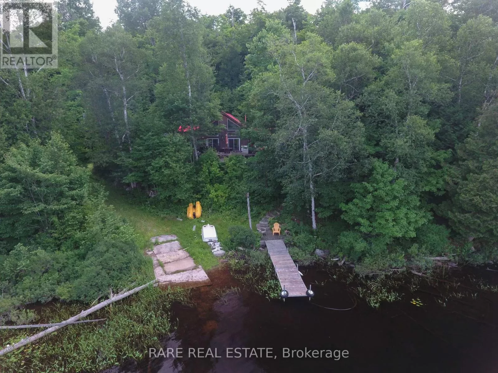 Cross Streets: Chetwynd Rd & Petit Lane. ** Directions: Petit Lane Access. Welcome to Your Retreat On Stunning Mason Lake.. Nestled amidst rolling trees and overlooking a serene lake, this beautifully restored cottage captivates with its tranquil setting and picturesque charm. Inside, the blend of vintage decor and modern comforts creates a cozy retreat, while outside, a landscaped garden and inviting porch beckon guests to unwind and savor the natural beauty that surrounds them. A few steps down as you gracefully descend from the cottage's back porch your met with a peaceful sitting area with fire pit leading to a private dock that stretches out over the glassy surface of the lake. From here, the tranquil waters reflect the surrounding forest and the clear blue sky above, inviting peaceful moments of reflection and leisurely boat rides under the gentle sun. Whether your into Fishing or Relaxing at the Cottage, This Cottage Has Everything Needed; Private Boat Launch, Private Dock & Over 1 Acre of Property!! (id:27476)