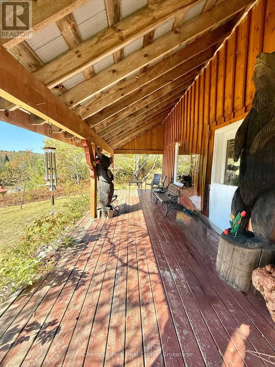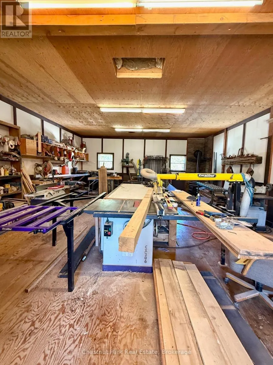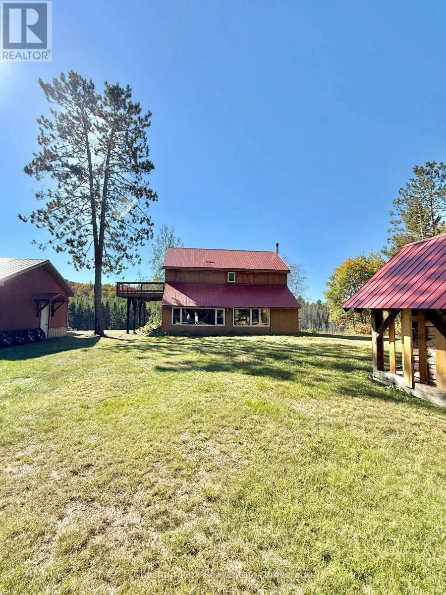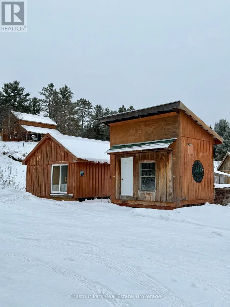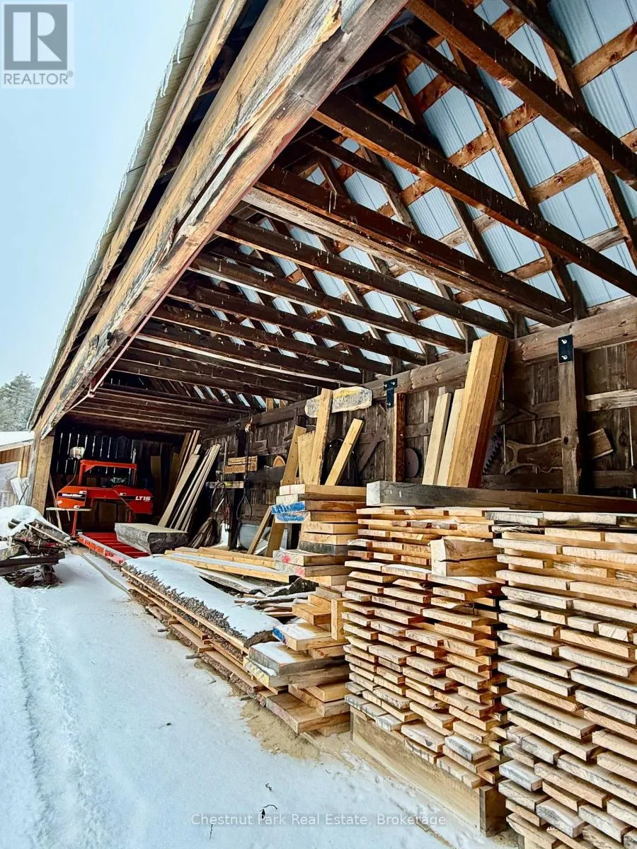 Cross Streets: Hwy 518E and Chetwynd Rd. ** Directions: Hwy 11 to exit 244/Emsdale Rd to Hwy 518 east to 4641. 200 acres, pond, home, multiple outbuildings, abutting 1000's of acres of Crown land! This unique property offers an incredible array of features including privacy, close proximity to 2 Algonquin Park access points & many lakes to boat/fish/paddle/explore. 2 separate 100 acre parcels being sold as one package. Front parcel with 1400' of municipally maintained road frontage, sweeping drive in past a level cleared area, small pond, several buildings & up to the cozy home & oversized garage. Incredible outbuildings include a 960 sqft workshop with drive sheds off both sides (one w/ concrete pad), large drive shed buildings (one w/ concrete pad, ideal for sawmill), former kiln building, storage/bunkie, sauna. Garage is insulated/heated, double wide/long+office/tool room. Character filled 1526 sq ft 2 storey, 2 bdrm/2bath tidy country home with covered porch + enclosed porch/mudroom overlooking red & white pine forest & open areas/outbuildings. 3-4km's of gorgeous, wide trails through mixed, mature forest on this level 100 acre parcel, leading back to the rear 100 acres (which has no road frontage but with a right of way along the west side of the front 100 acres if a buyer wished to sell off the rear parcel). Follow the main trail to a beautiful pond that is several acres in size, a gathering place for moose/birds/wildlife & home to a sweet, secluded off-grid cabin (living area/kitchen/sleeping loft/solar to run lights/appliances, out house/generator plug in). Trail meanders onto neighbouring Crown land to the east & back around the pond onto the back portion of the rear 100 acres with its hills & untouched mixed forest. Stunningly beautiful land here to explore & a naturalist & hobbyist's dream come true. Home is serviced by dug well, septic, electric/wood heat & all buildings have steel roofs. 10 min to Kearney/15 to Burks Falls/30 to Huntsville, on the OFSC trail . Ideal property for yr round living or a recreational getaway, furnished & ready for your adventures. (id:27476)