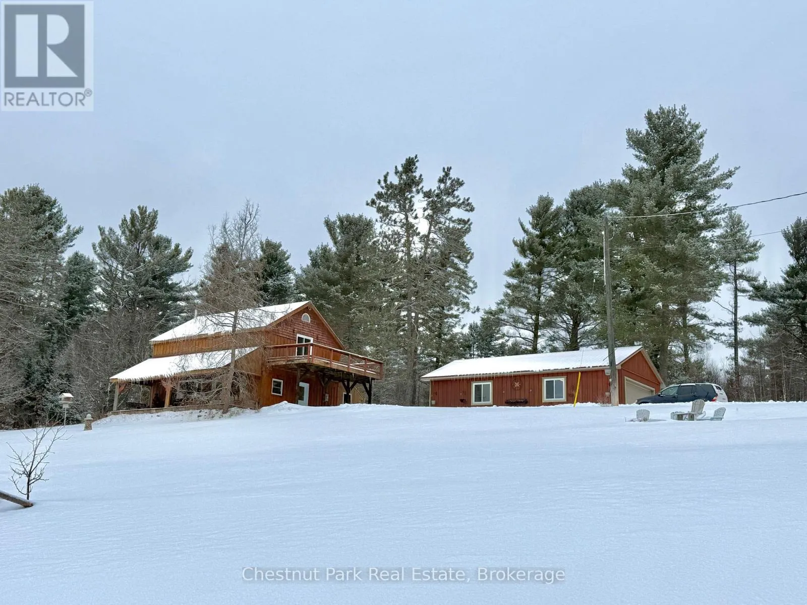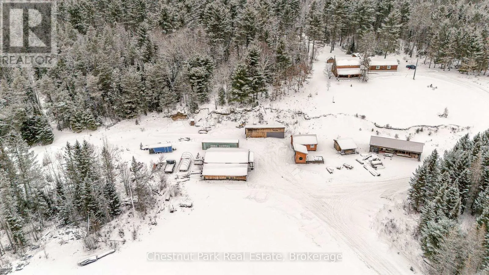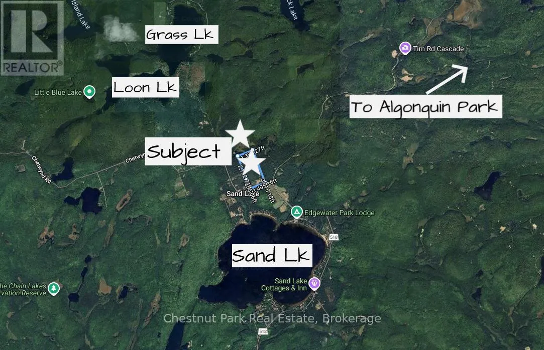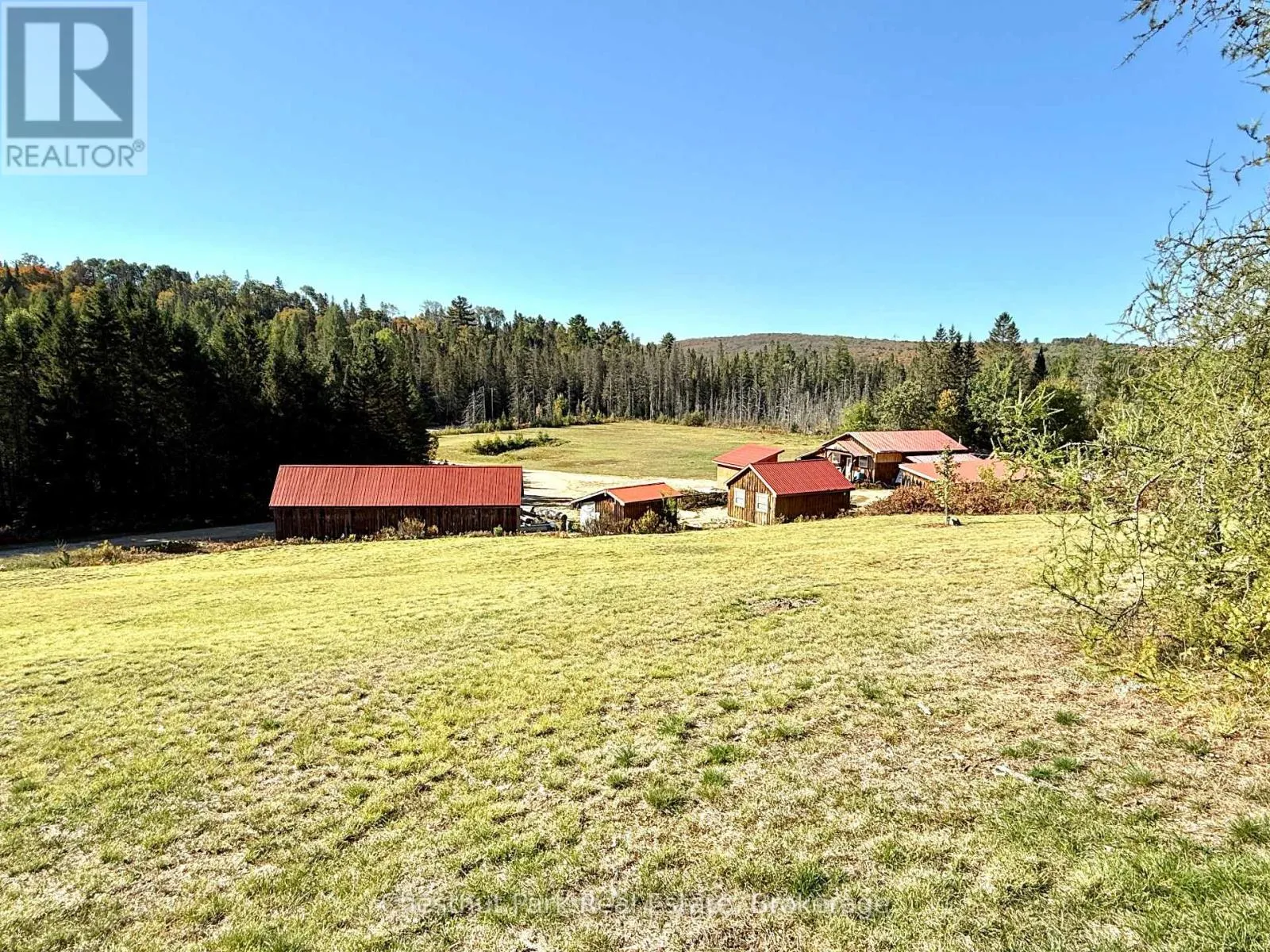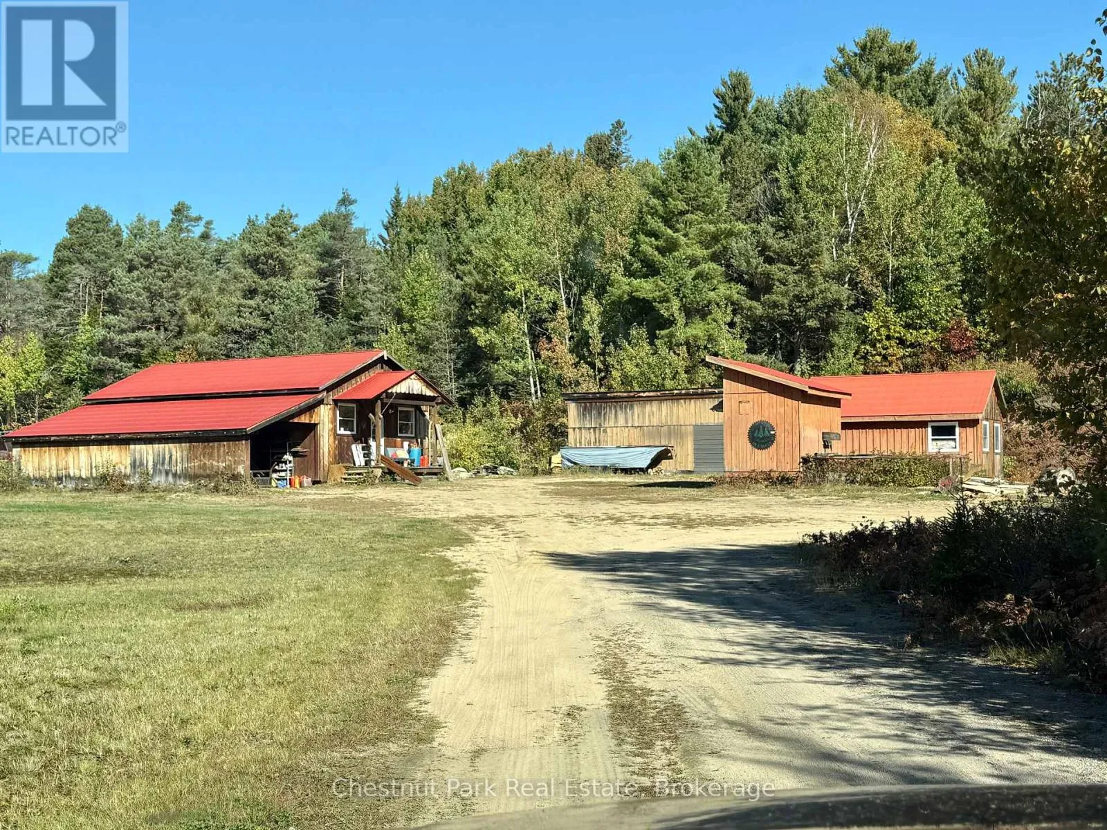 Cross Streets: Hwy 518E and Chetwynd Rd. ** Directions: Hwy 11 to exit 244/Emsdale Rd to Hwy 518 east to 4641. 200 acres, pond, home, multiple outbuildings, abutting 1000's of acres of Crown land! This unique property offers an incredible array of features including privacy, close proximity to 2 Algonquin Park access points & many lakes to boat/fish/paddle/explore. 2 separate 100 acre parcels being sold as one package. Front parcel with 1400' of municipally maintained road frontage, sweeping drive in past a level cleared area, small pond, several buildings & up to the cozy home & oversized garage. Incredible outbuildings include a 960 sqft workshop with drive sheds off both sides (one w/ concrete pad), large drive shed buildings (one w/ concrete pad, ideal for sawmill), former kiln building, storage/bunkie, sauna. Garage is insulated/heated, double wide/long+office/tool room. Character filled 1526 sq ft 2 storey, 2 bdrm/2bath tidy country home with covered porch + enclosed porch/mudroom overlooking red & white pine forest & open areas/outbuildings. 3-4km's of gorgeous, wide trails through mixed, mature forest on this level 100 acre parcel, leading back to the rear 100 acres (which has no road frontage but with a right of way along the west side of the front 100 acres if a buyer wished to sell off the rear parcel). Follow the main trail to a beautiful pond that is several acres in size, a gathering place for moose/birds/wildlife & home to a sweet, secluded off-grid cabin (living area/kitchen/sleeping loft/solar to run lights/appliances, out house/generator plug in). Trail meanders onto neighbouring Crown land to the east & back around the pond onto the back portion of the rear 100 acres with its hills & untouched mixed forest. Stunningly beautiful land here to explore & a naturalist & hobbyist's dream come true. Home is serviced by dug well, septic, electric/wood heat & all buildings have steel roofs. 10 min to Kearney/15 to Burks Falls/30 to Huntsville, on the OFSC trail . Ideal property for yr round living or a recreational getaway, furnished & ready for your adventures. (id:27476)
