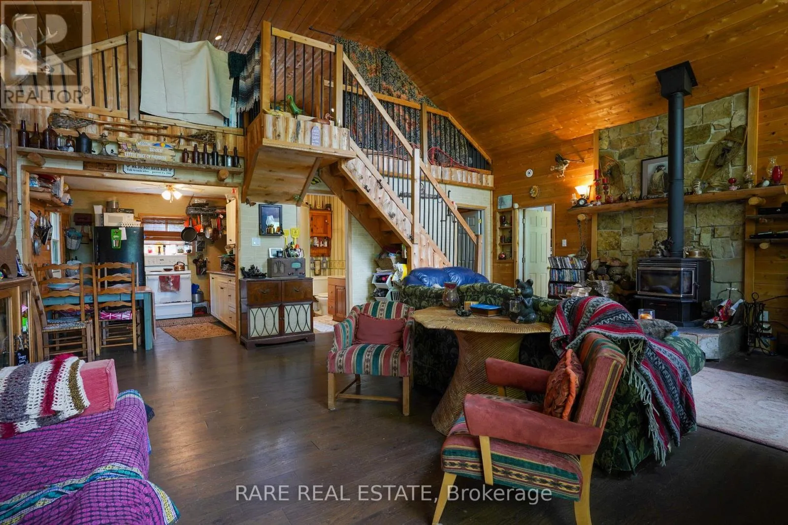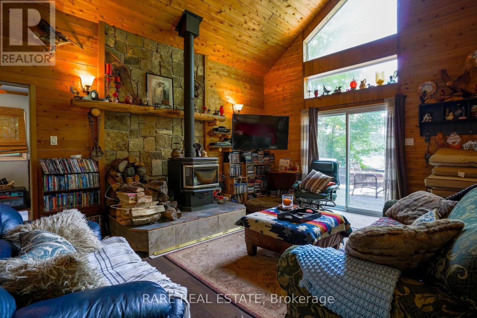 Cross Streets: Chetwynd Rd & Petit Lane. ** Directions: Petit Lane Access. Welcome to Your Retreat On Stunning Mason Lake.. Nestled amidst rolling trees and overlooking a serene lake, this beautifully restored cottage captivates with its tranquil setting and picturesque charm. Inside, the blend of vintage decor and modern comforts creates a cozy retreat, while outside, a landscaped garden and inviting porch beckon guests to unwind and savor the natural beauty that surrounds them. A few steps down as you gracefully descend from the cottage's back porch your met with a peaceful sitting area with fire pit leading to a private dock that stretches out over the glassy surface of the lake. From here, the tranquil waters reflect the surrounding forest and the clear blue sky above, inviting peaceful moments of reflection and leisurely boat rides under the gentle sun. Whether your into Fishing or Relaxing at the Cottage, This Cottage Has Everything Needed; Private Boat Launch, Private Dock & Over 1 Acre of Property!! (id:27476)