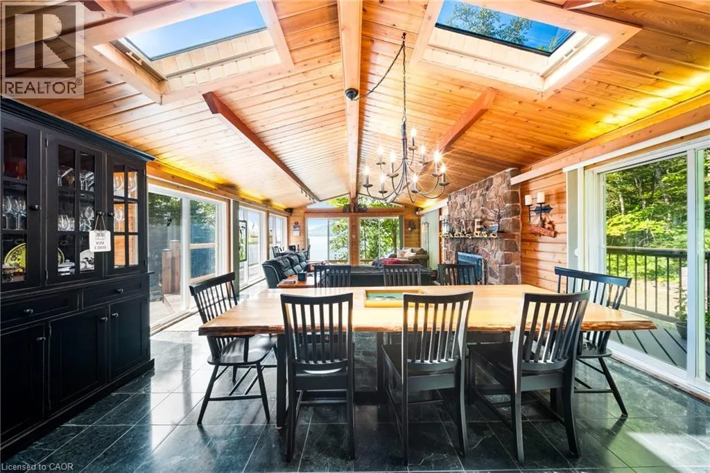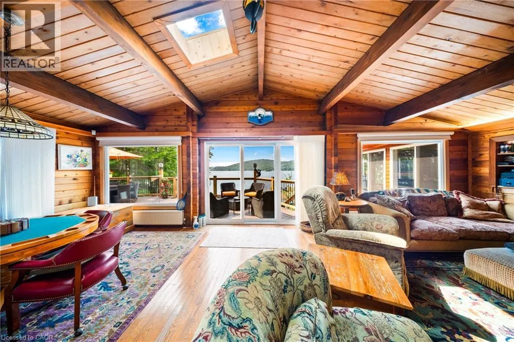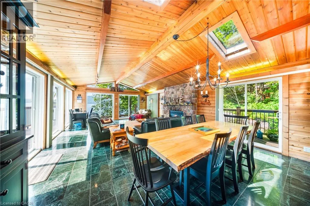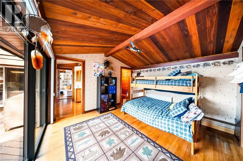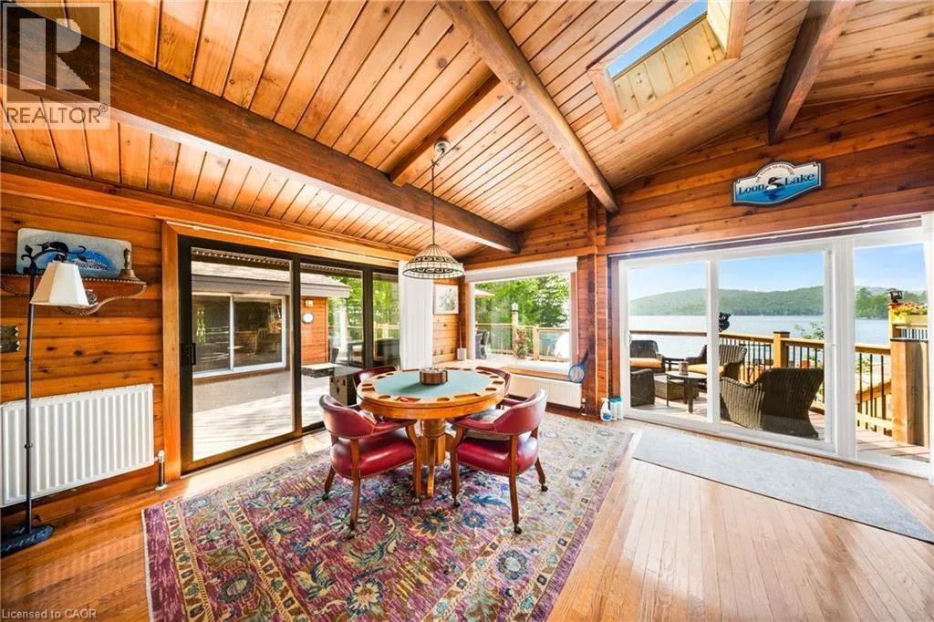 HWY 11 to 518 around Sand Lake, turn onto Chetwynd Rd continue onto Grass Lake Rd, turn onto Lake Haven Dr Perfectly positioned on the pristine shores of Loon Lake, this exceptional 6 bedroom 6 bathroom waterfront property offers 136 feet of sandy shoreline and direct access to both Loon and adjoining Grass Lakeâspring-fed, crystal-clear waters ideal for swimming, fishing, kayaking, and boating. The thoughtfully designed interior of this year-round cottage celebrates the four seasons which is where the property gets it's name. Each of the four main bedrooms are thematically styledâWinter, Fall, Summer, and Spring. The primary âSpringâ suite is a private retreat with a Jacuzzi tub, oversized walk-in shower, and oversized vanity. Summer, Fall, and Winter are all large bedrooms with generously proportioned ensuite bathrooms. From the kitchen, family room, and main living room, there are unobstructed picturesque views of the lake. On the main floor there is also a childrenâs bunk room with queen/single configuration and ensuite, plus a sixth bedroom on the lower level with adjacent spa-style bath offer ample accommodations. The lower level also features an electric cedar sauna, a cozy TV room which can also be accessed from the primary bedroom via a spiral staircase, and tons of storage for water toys, gear and equipment. With a sought-after northwest exposure, the cottage captures breathtaking sunsets year-round which can be enjoyed from the dock, the upper deck which features a sunk-in hot tub and spans the entire length of the home and is accessible from multiple rooms in the home, the professionally landscaped lower deck complete with stone. A gated entrance welcomes you to a beautifully maintained property featuring a three-car garage, a Generac generator (2023), and a modern three-separator septic system with dual weeping beds. The property is also situated within close proximity to tons of trails to be enjoyed in the Winter by sled or in the summer by ATV. This is more than a cottageâitâs a refined lakeside sanctuary where nature, comfort, and privacy converge. (id:27476)