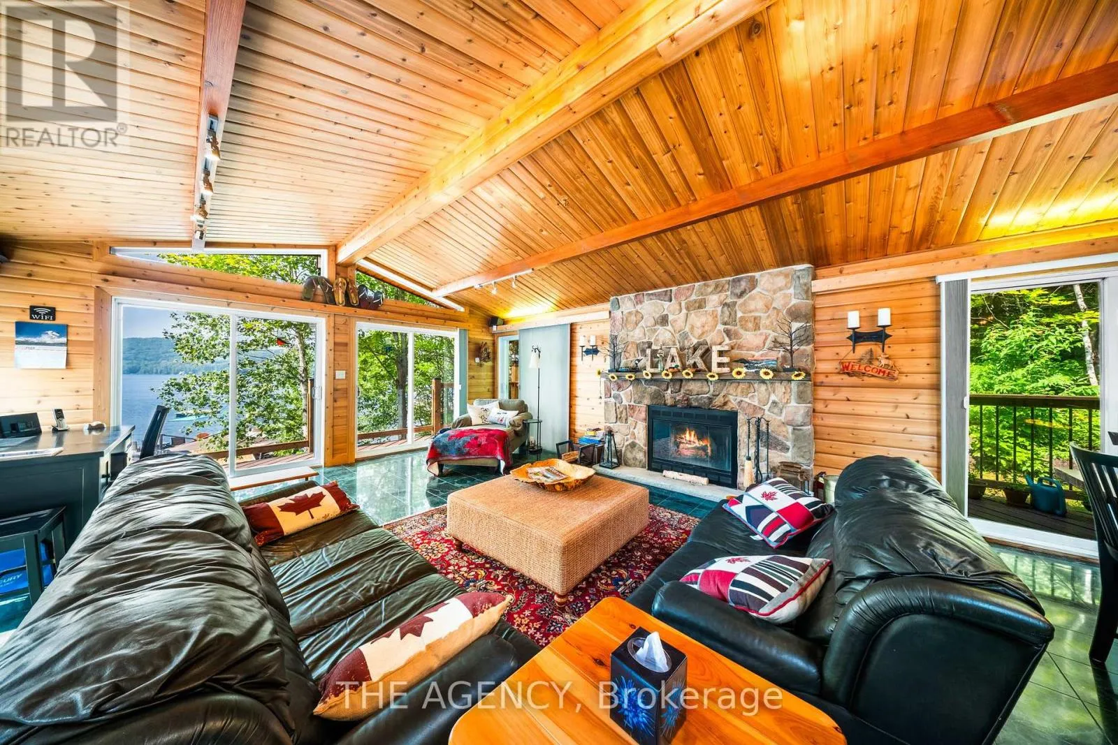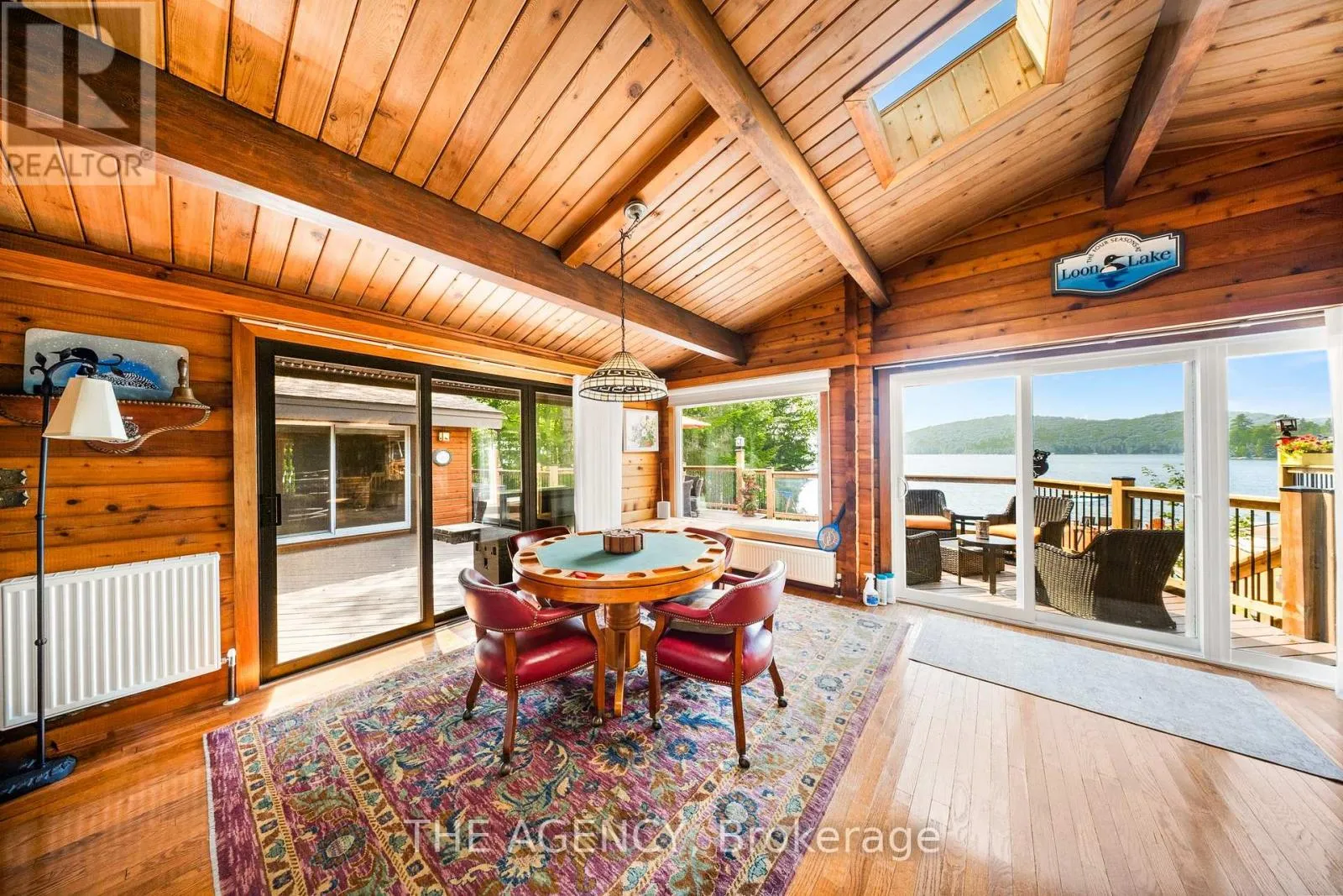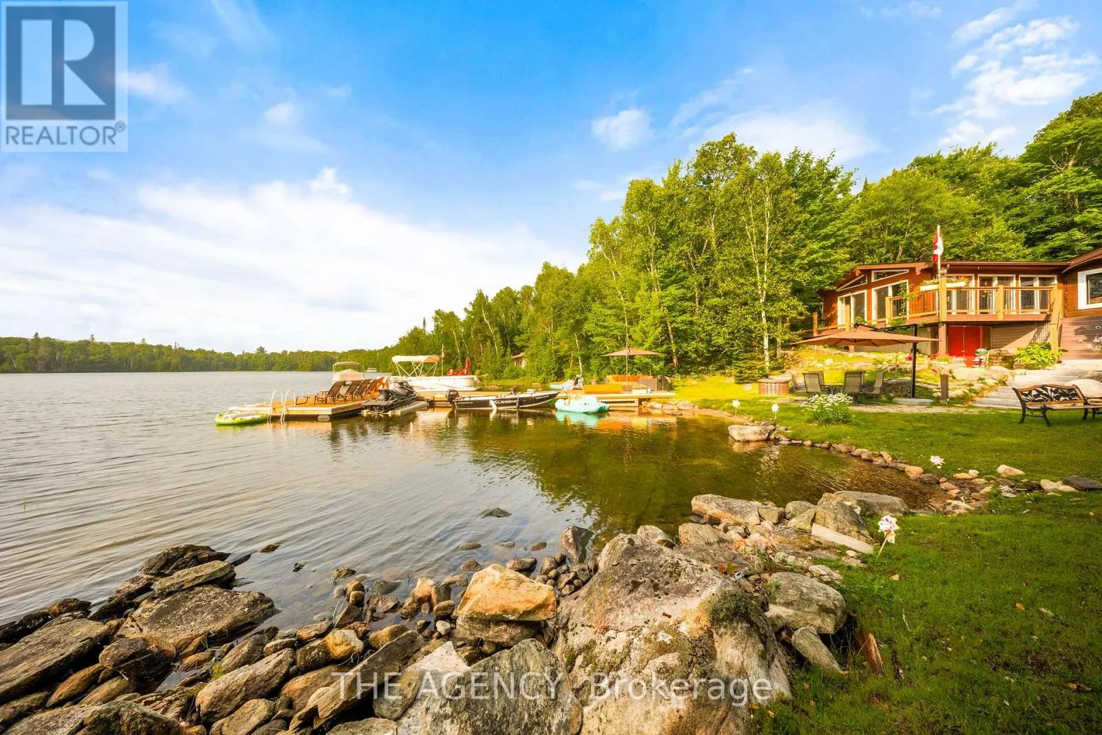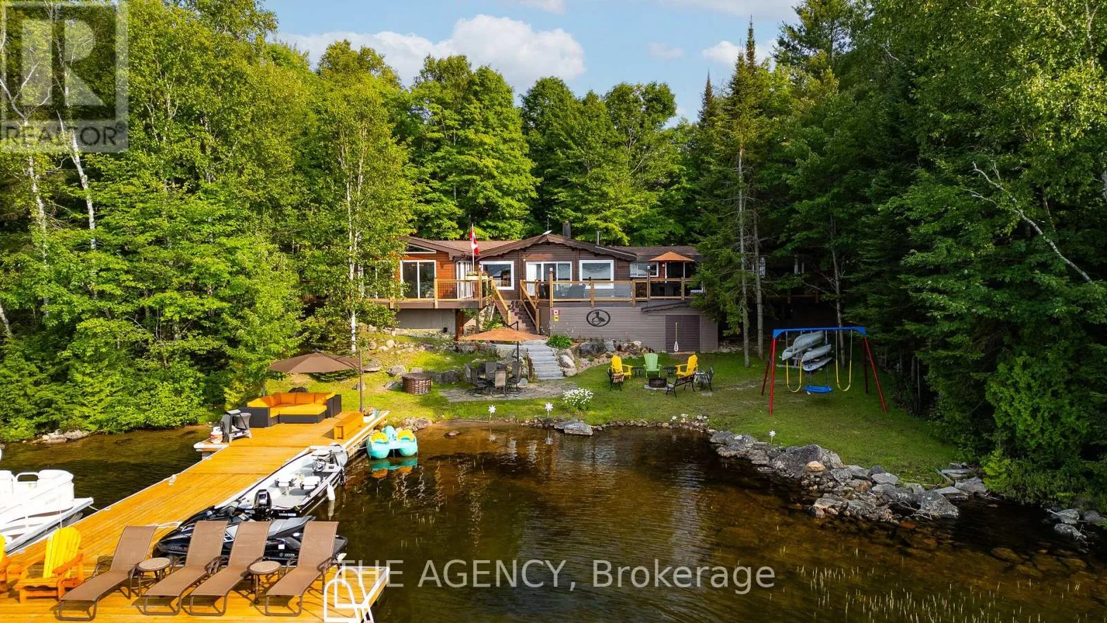 Grass Lake Rd/Chetwynd Rd Perfectly positioned on the pristine shores of Loon Lake, this exceptional 6 bedroom 6 bathroom waterfront property offers 136 feet of sandy shoreline and direct access to both Loon and adjoining Grass Lakespring-fed, crystal-clear waters ideal for swimming, fishing, kayaking, and boating. The thoughtfully designed interior of this year-round cottage celebrates the four seasons which is where the property gets it's name. Each of the four main bedrooms are thematically styledWinter, Fall, Summer, and Spring. The master Spring suite is a private retreat with a Jacuzzi tub, oversized walk-in shower, and oversized vanity. Summer, Fall, and Winter are all large bedrooms with generously proportioned ensuite bathrooms. From the kitchen, family room, and main living room, there are unobstructed picturesque views of the lake. On the main floor there is also a childrens bunk room with queen/single configuration and ensuite, plus a sixth bedroom on the lower level with adjacent spa-style bath offer ample accommodations. The lower level also features an electric cedar sauna, a cozy TV room which can also be accessed from the primary bedroom via a spiral staircase, and tons of storage for water toys, gear and equipment. With a sought-after northwest exposure, the cottage captures breathtaking sunsets year-round which can be enjoyed from the dock, the upper deck which features a sunk-in hot tub and spans the entire length of the home and is accessible from multiple rooms in the home, the professionally landscaped lower deck complete with stone. A gated entrance welcomes you to a beautifully maintained property featuring a three-car garage, a Generac generator (2023), and a modern three-separator septic system with dual weeping beds. The property is also situated within close proximity to tons of trails to be enjoyed in the Winter by sled or in the summer by ATV. This is more than a cottageits a refined lakeside sanctuary where nature, comfort, and privacy converge. (id:27476)
