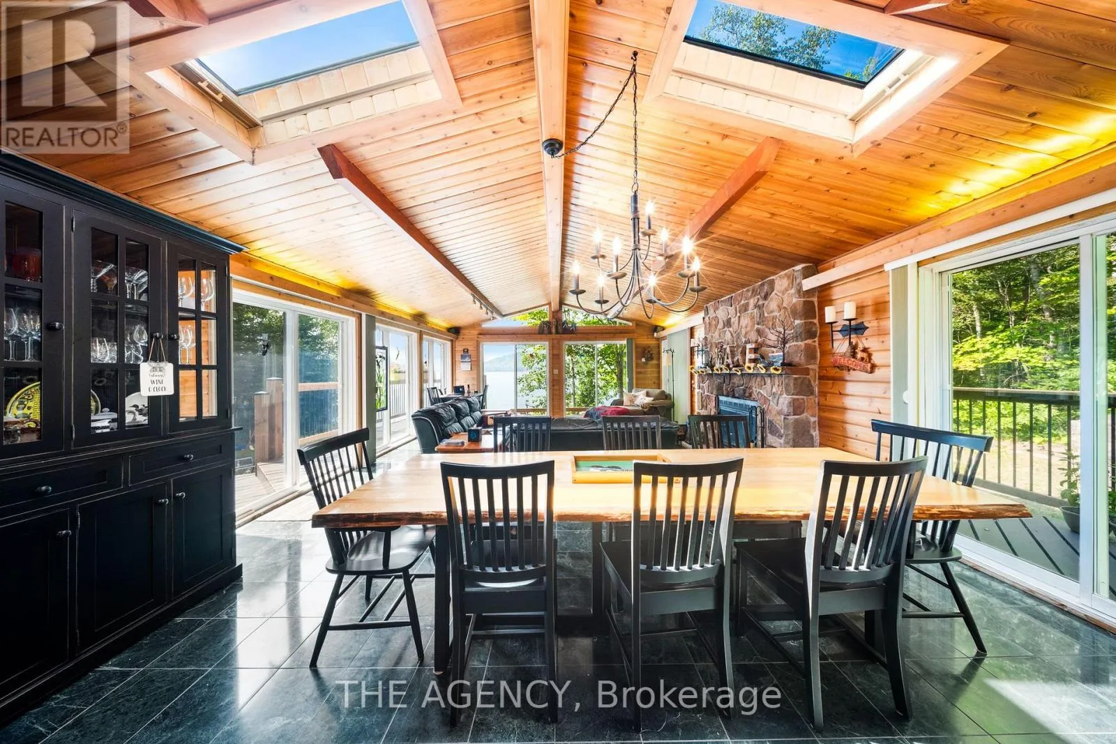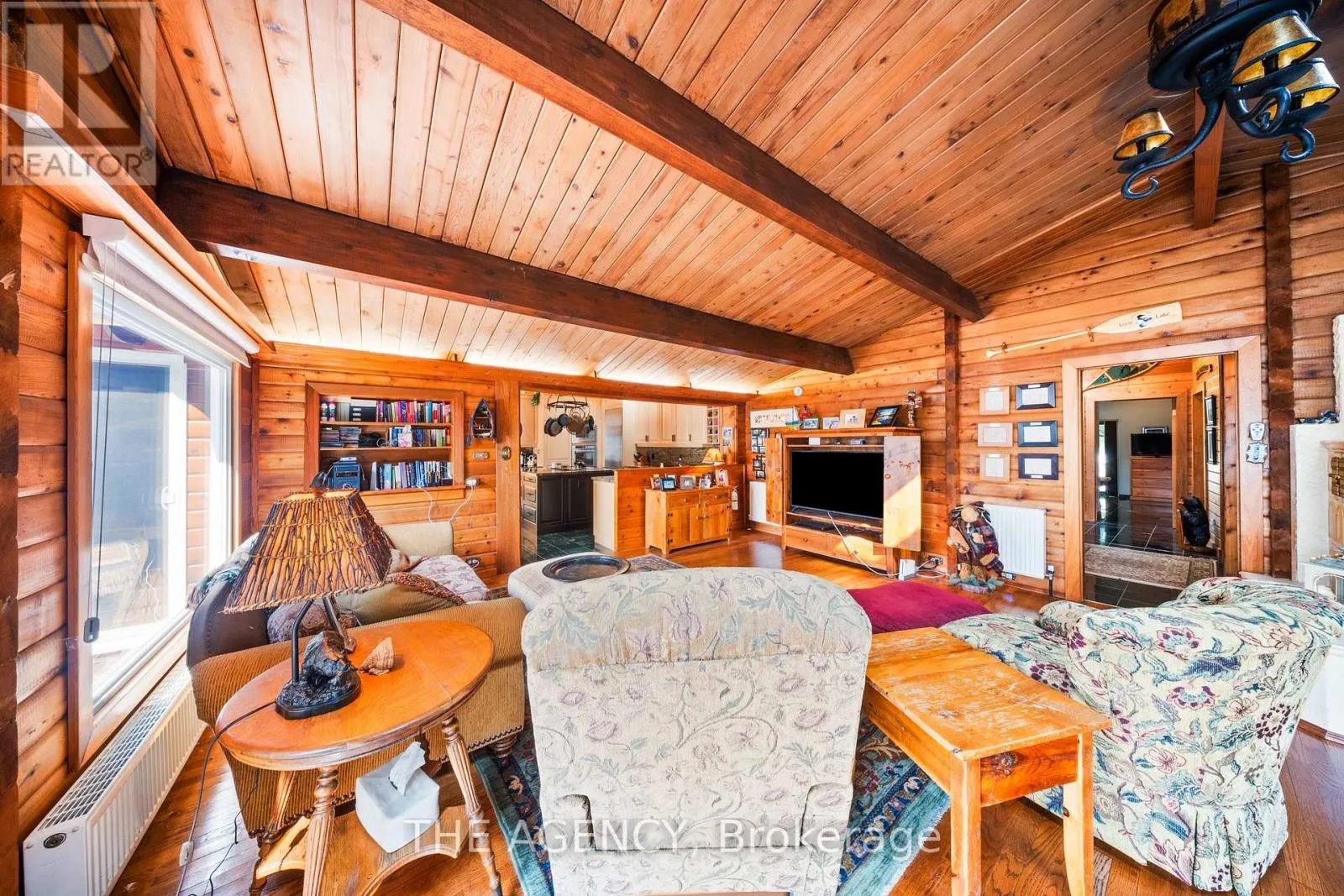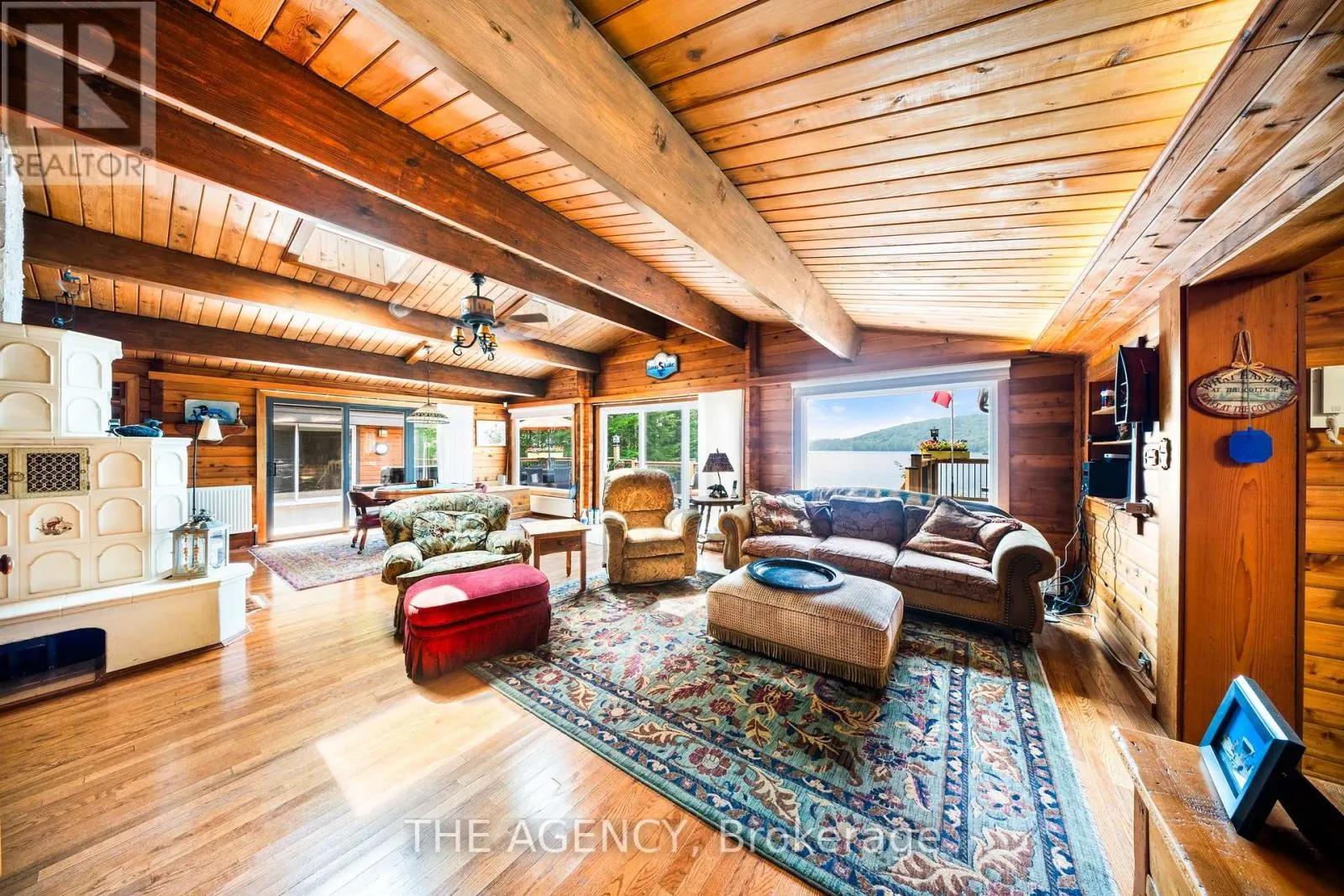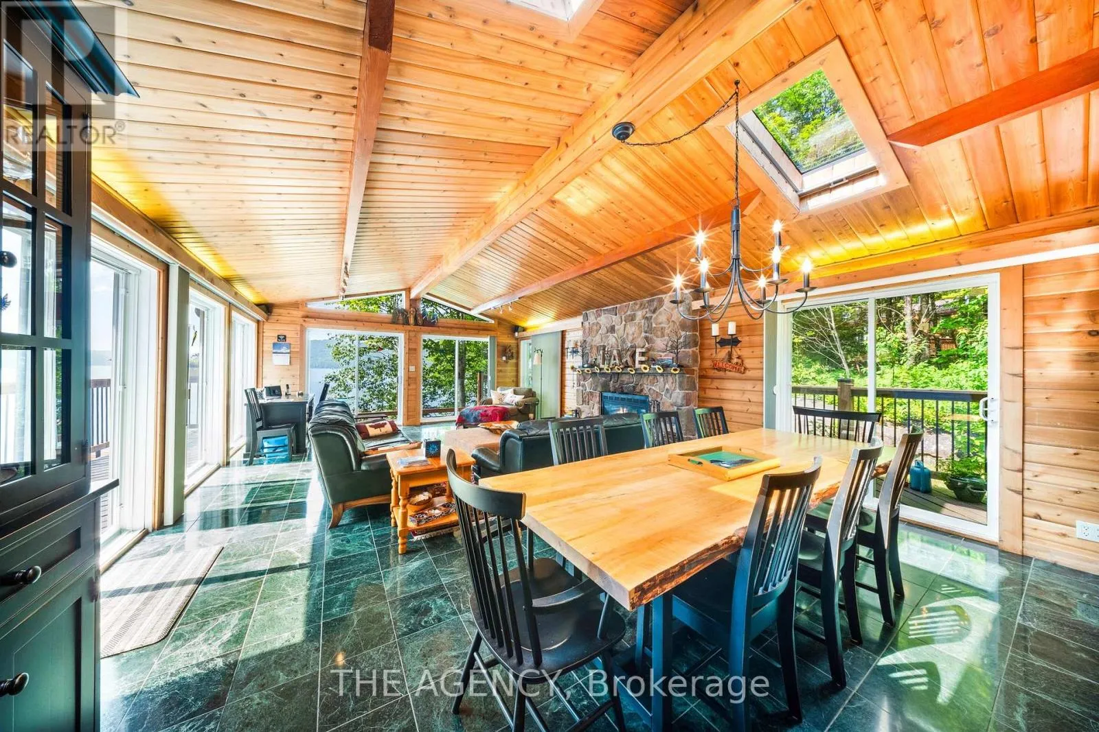 Grass Lake Rd/Chetwynd Rd Perfectly positioned on the pristine shores of Loon Lake, this exceptional 6 bedroom 6 bathroom waterfront property offers 136 feet of sandy shoreline and direct access to both Loon and adjoining Grass Lakespring-fed, crystal-clear waters ideal for swimming, fishing, kayaking, and boating. The thoughtfully designed interior of this year-round cottage celebrates the four seasons which is where the property gets it's name. Each of the four main bedrooms are thematically styledWinter, Fall, Summer, and Spring. The master Spring suite is a private retreat with a Jacuzzi tub, oversized walk-in shower, and oversized vanity. Summer, Fall, and Winter are all large bedrooms with generously proportioned ensuite bathrooms. From the kitchen, family room, and main living room, there are unobstructed picturesque views of the lake. On the main floor there is also a childrens bunk room with queen/single configuration and ensuite, plus a sixth bedroom on the lower level with adjacent spa-style bath offer ample accommodations. The lower level also features an electric cedar sauna, a cozy TV room which can also be accessed from the primary bedroom via a spiral staircase, and tons of storage for water toys, gear and equipment. With a sought-after northwest exposure, the cottage captures breathtaking sunsets year-round which can be enjoyed from the dock, the upper deck which features a sunk-in hot tub and spans the entire length of the home and is accessible from multiple rooms in the home, the professionally landscaped lower deck complete with stone. A gated entrance welcomes you to a beautifully maintained property featuring a three-car garage, a Generac generator (2023), and a modern three-separator septic system with dual weeping beds. The property is also situated within close proximity to tons of trails to be enjoyed in the Winter by sled or in the summer by ATV. This is more than a cottageits a refined lakeside sanctuary where nature, comfort, and privacy converge. (id:27476)