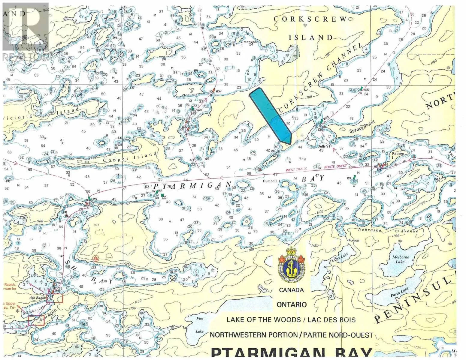 Southwest side of Ward Island. Partially cleared waterfront lot located on the southwest side of Ward Island in Ptarmigan Bay, Lake of the Woods. This site offers south exposure and exceptional privacy. 1.98 Acres featuring low/medium profile with rock outcrops and wooded with oak, evergreen and poplar trees. 262 feet of rock shoreline, owned to high water. Site dimensions are 260 feet across the rear (north boundary), 332 feet along the west boundary and 339 feet along the east boundary. This is off-grid, unorganized territory located outside the Clearwater Bay Restricted Area Order. Accessible by water (May thru October) or over the ice (January to March). No HST, annual taxes $900.00. (id:27476)