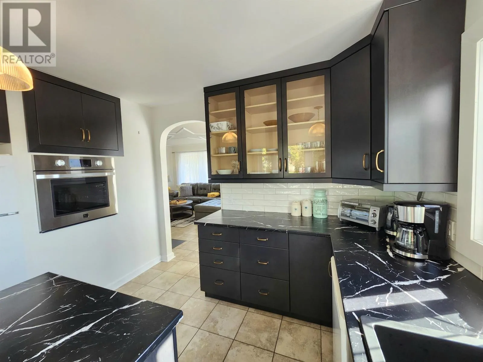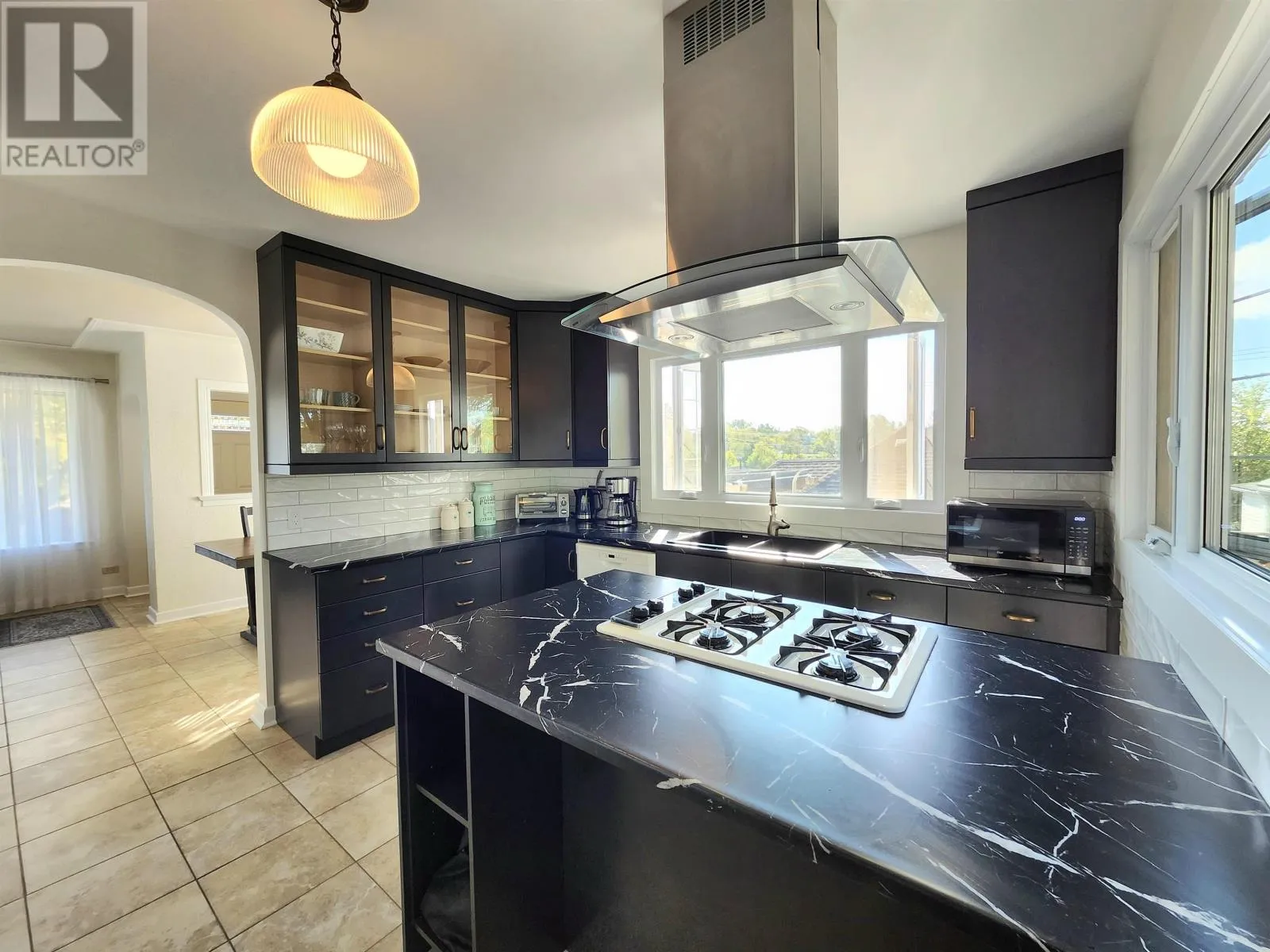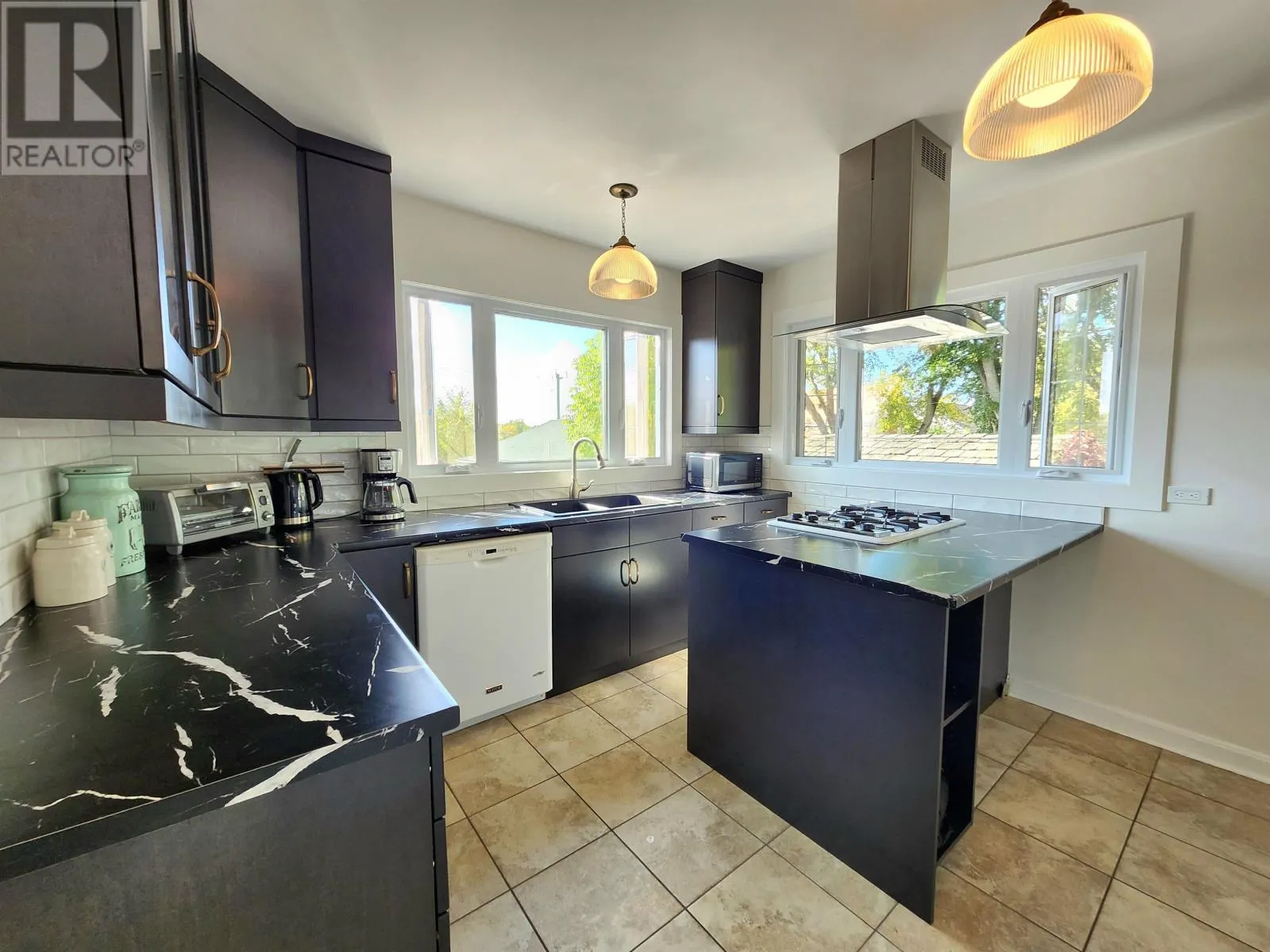 From downtown Kenora, follow Second Street South and it is on the south side of Sixth Ave S. Set just a few blocks from downtown Kenora, numerous parks, and schools, this beautiful 1950-built home has been cared for with pride and it shows. Solidly constructed with quality materials and lovingly updated throughout the years, offering 1,040 sq. ft. on the main floor plus a fully developed basement. The homeâs mid-century style comes through in details like birch hardwood floors, arched doorways, built-in cabinetry, and a striking slate wood-burning fireplace. The kitchen has been fully renovated with a modern, stylish design and features a gas cook top, wall mounted stove, maple cabinetry and porcelain tile that carry throughout the home. There are three bedrooms and two bathrooms, giving a practical layout for family living. Downstairs, a large rec room adds plenty of additional living space as well as laundry, a workshop area, and dedicated storage room. The heating system combines in-floor and ceiling radiant heatâefficient, comfortable, and reliable year-round. The property is complete with a single-car garage and a fully landscaped, fenced yard. Tiered decking and established gardens create a private outdoor setting thatâs easy to enjoy and maintain. This is a fantastic home in a great location. (id:27476)