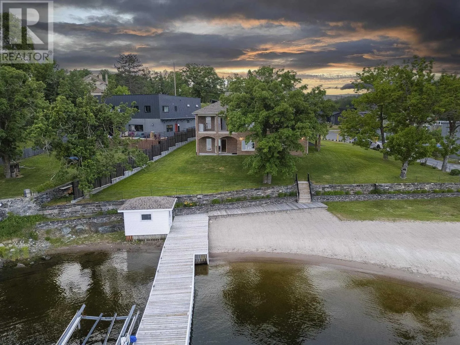 South On 4th Avenue South Near the Coast Guard Base Executive Waterfront Estate on LOTW -RECENTLY REFRESHED -Rarely does a residence of this distinction grace the market in such a coveted location-where luxury meets unparalleled access to Kenoraâs finest amenities and the breathtaking expanse of LOTW. The home offers a Sophisticated Design with Impeccable Craftsmanship. Spanning approx. 3,800sqft over 2 meticulously maintained Lvl, this home boasts 4+ Br, 4 Bth and a lush professionally landscaped grounds enhanced by an automated irrigation system. Every detail reflects thoughtful design and superior quality. Step through the arched entry into an oversized foyer where timeless elegance and refined finishes set the tone for the homes contemporary design. The heart of the home is the 2-tiered LR, where gleaming hardwood floors and a stately brick-faced gas FP create an inviting ambiance. The Lwr tier offers a cozy retreat for movie nights or soaking in panoramic southern views. The gourmet Ktn is a chefâs masterpiece, featuring heated tile flooring, a sprawling granite island and premium built-in appliances. Flowing seamlessly into the grand dining area, this space is designed for memorable feasts with loved ones. Tucked privately off the LR, the primary suite is a haven of tranquility. The spacious Br opens to a private waterside balcony, while the spa-inspired ensuite pampers with a jetted tub, shower and an expansive walk-in closet. The walk-out Lwr Lvl is an entertainerâs dream, featuring a vast rec rm, office, 3 additional Br, 2 full Bth and a den easily convertible to a 5th Br. The expansive 3-stall garage is ready for all your vehicles and toys. Step outside to your own slice of paradise-where a pristine sand beach is framed to the north by a Century Old Stone Wall layed by craftsman from years gone by. A solid dock stands ready for endless adventures. This is more than a home-itâs a legacy property in one of LOTWâs most enviable locations. Bonus Option: The possibility to create a self contained basem (id:27476)