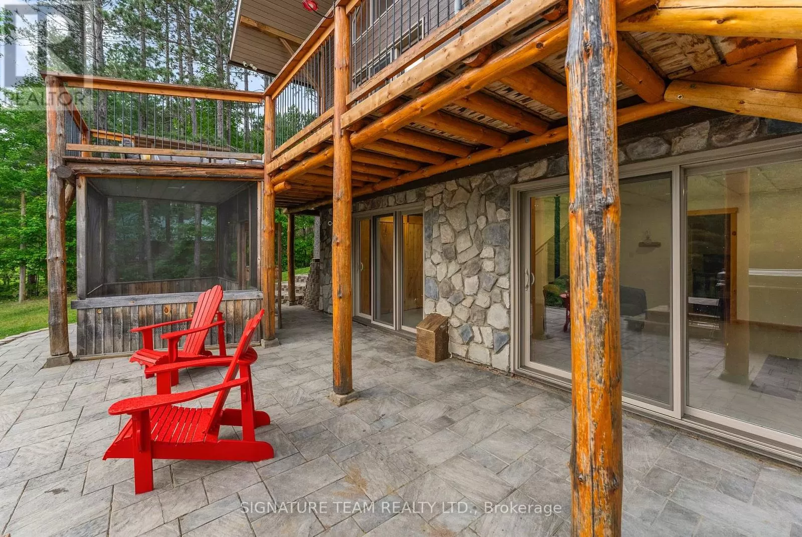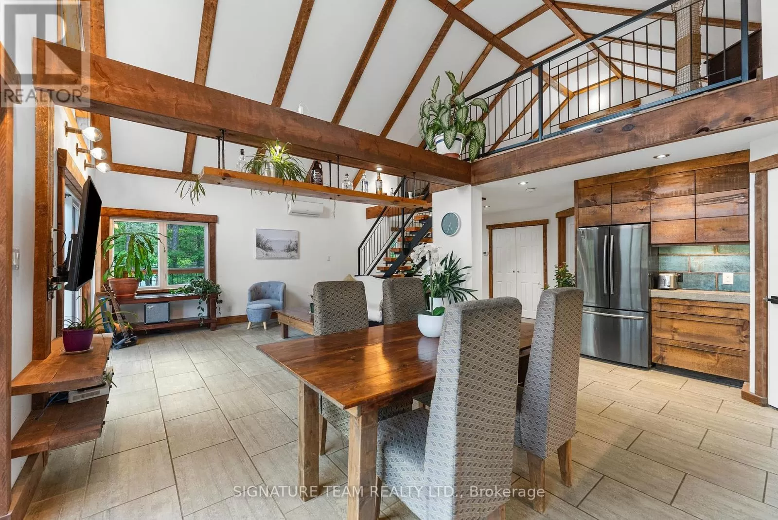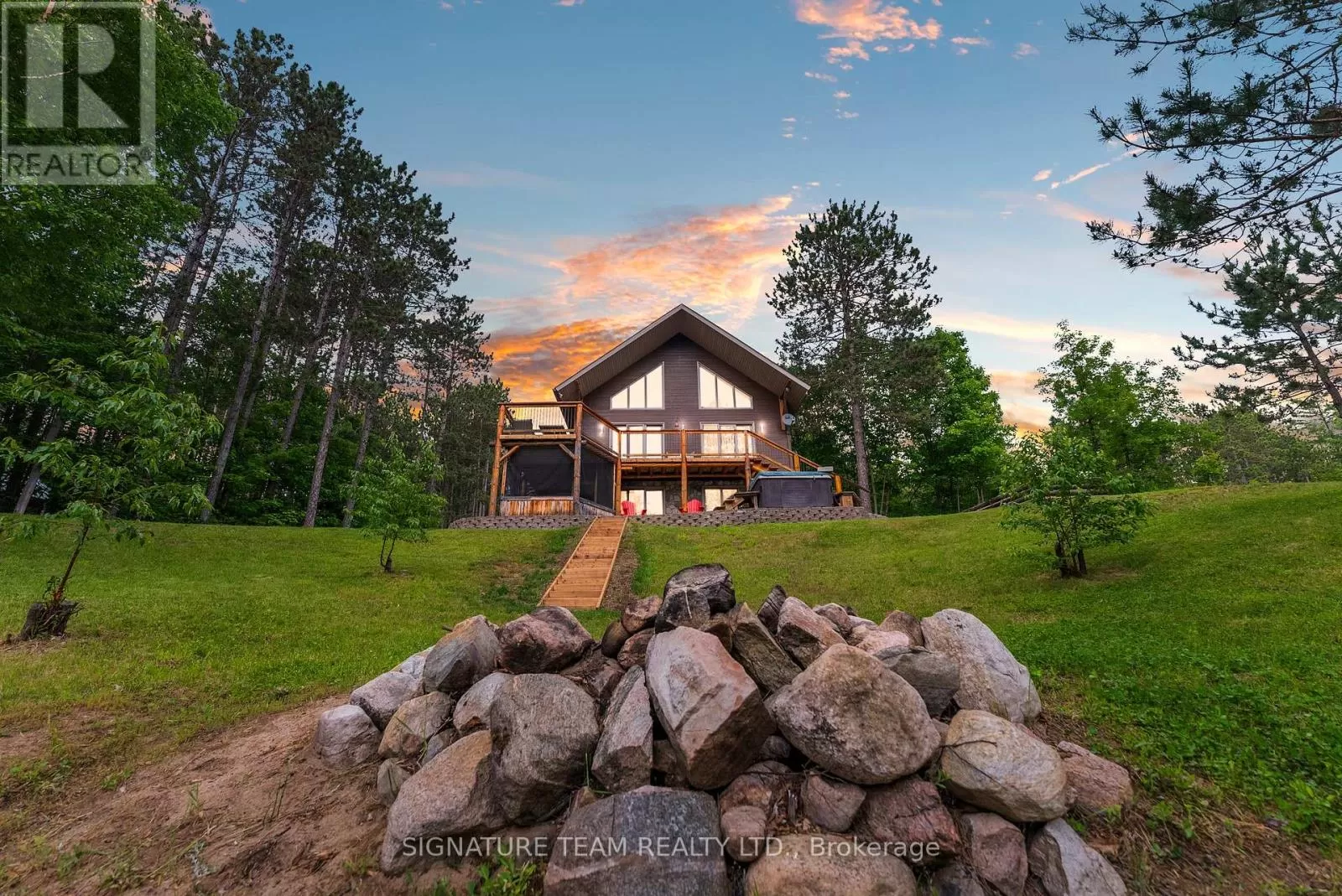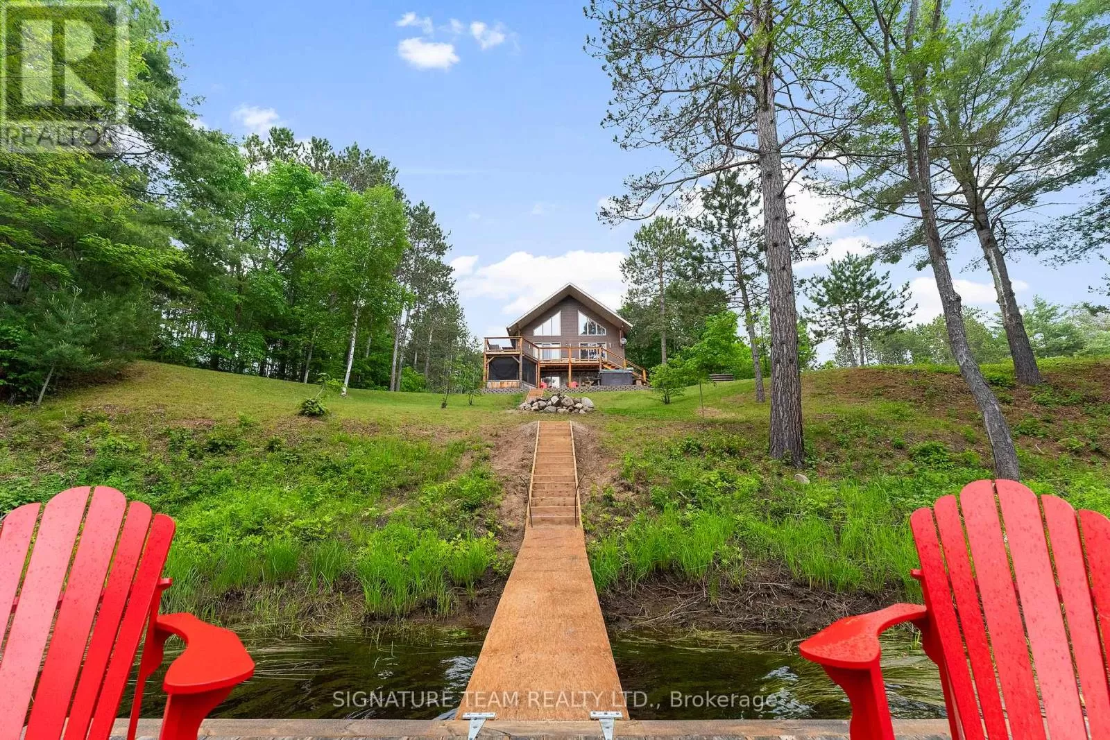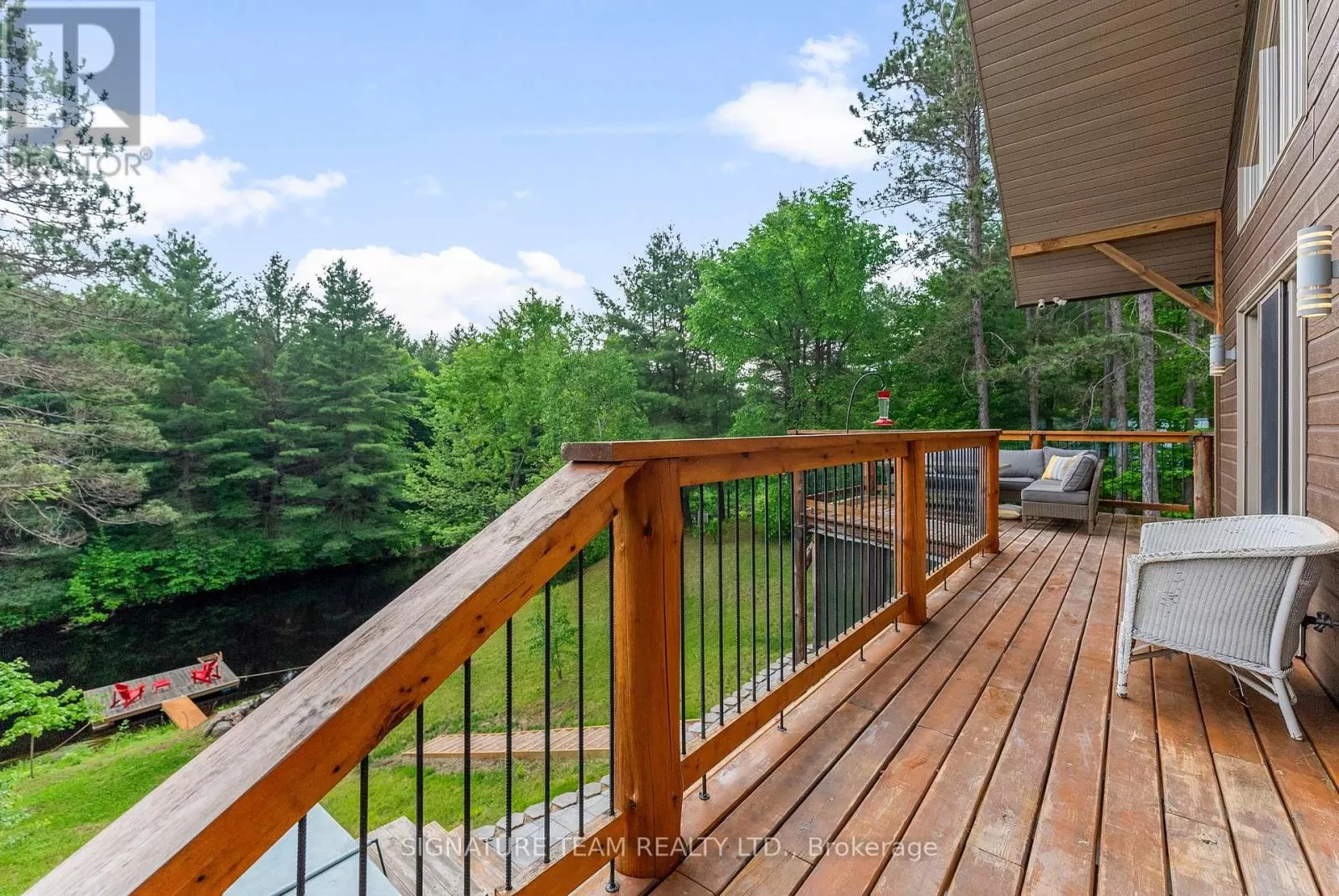 Cross Streets: Gunns Road and Round Lake Road. ** Directions: Turn on Gunns Road from Round Lake Rd (58), turn left onto Recoskie Lane to 65B. Stunning year-round riverfront property set on 1.35 acres of peaceful, natural beauty. This thoughtfully designed bungaloft features a walkout basement and composite wood siding exterior, blending comfort with durability. Step out onto the expansive main-level deck that spans the homes width and faces the water, making it perfect for soaking up the southern sun and enjoying uninterrupted views of the river. Below, the interlock masonry patio on the lower level leads to a screened-in gazebo, offering a tranquil, bug-free place for peace and relaxation. From here, follow the stairs down to a 12x16 dock where swimming, paddling, and new memories await. The interior offers a bright, open-concept layout with soaring cathedral ceilings and oversized windows that flood the main floor with natural light. Enjoy in-floor heating on both the main and lower levels, heat pump A/C, and wood stove for year-round comfort. The main level hosts a modern kitchen, living and dining areas, one bedroom, and bathroom. Upstairs, the loft space offers the flexibility of a third sleeping area or home office, complete with a private balcony. Downstairs, the walkout basement features a spacious second living area, bedroom, a full bathroom with laundry warmed by a wood stove, and direct access to the outdoor entertaining area. Great to have seasonal neighbours offering this property lots of privacy without sacrificing access to adventure. Enjoy swimming off the dock in the summer months and float down the river in your favourite tube. The river has a hard-bottom making it great for swimming, kayaking, paddle boarding, and canoeing. From your dock, you can explore the adventure of the Bonnechere River into Round Lake or venture upstream into Algonquin Park. You have access to the snowmobile / ATV trails and kilometers of crown land only a minute from your doorstep. Its a smart move! 48 hour irrevocable. (id:27476)