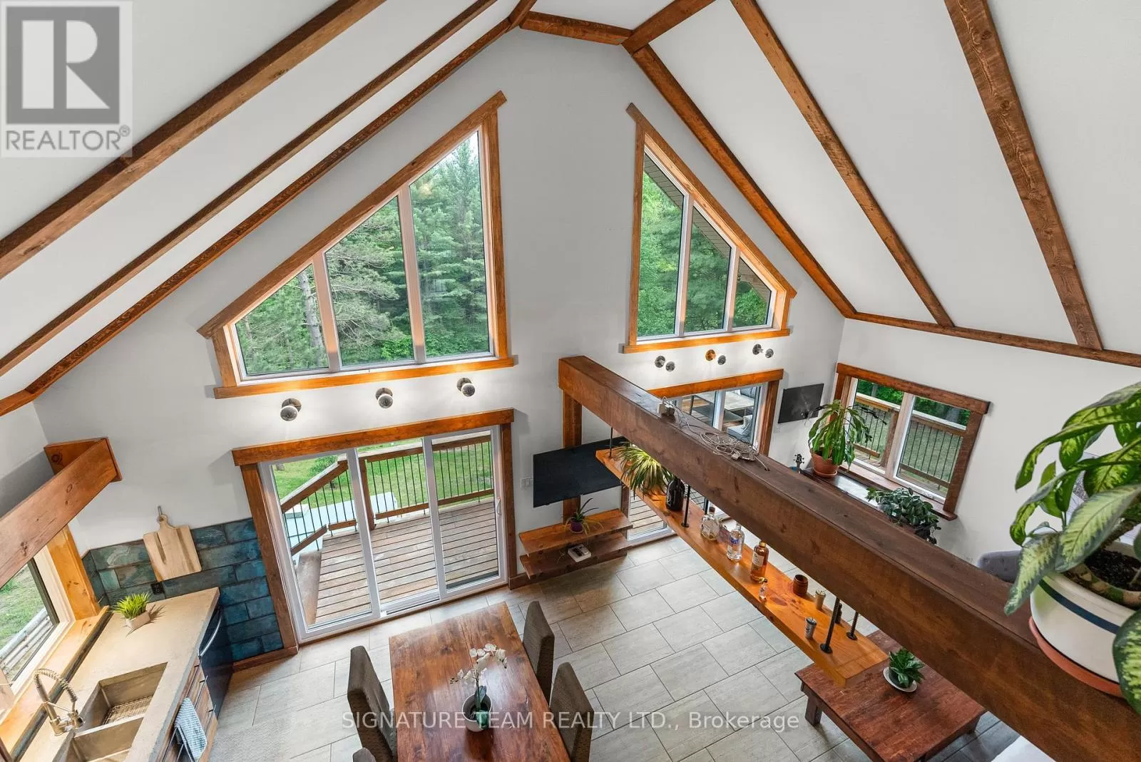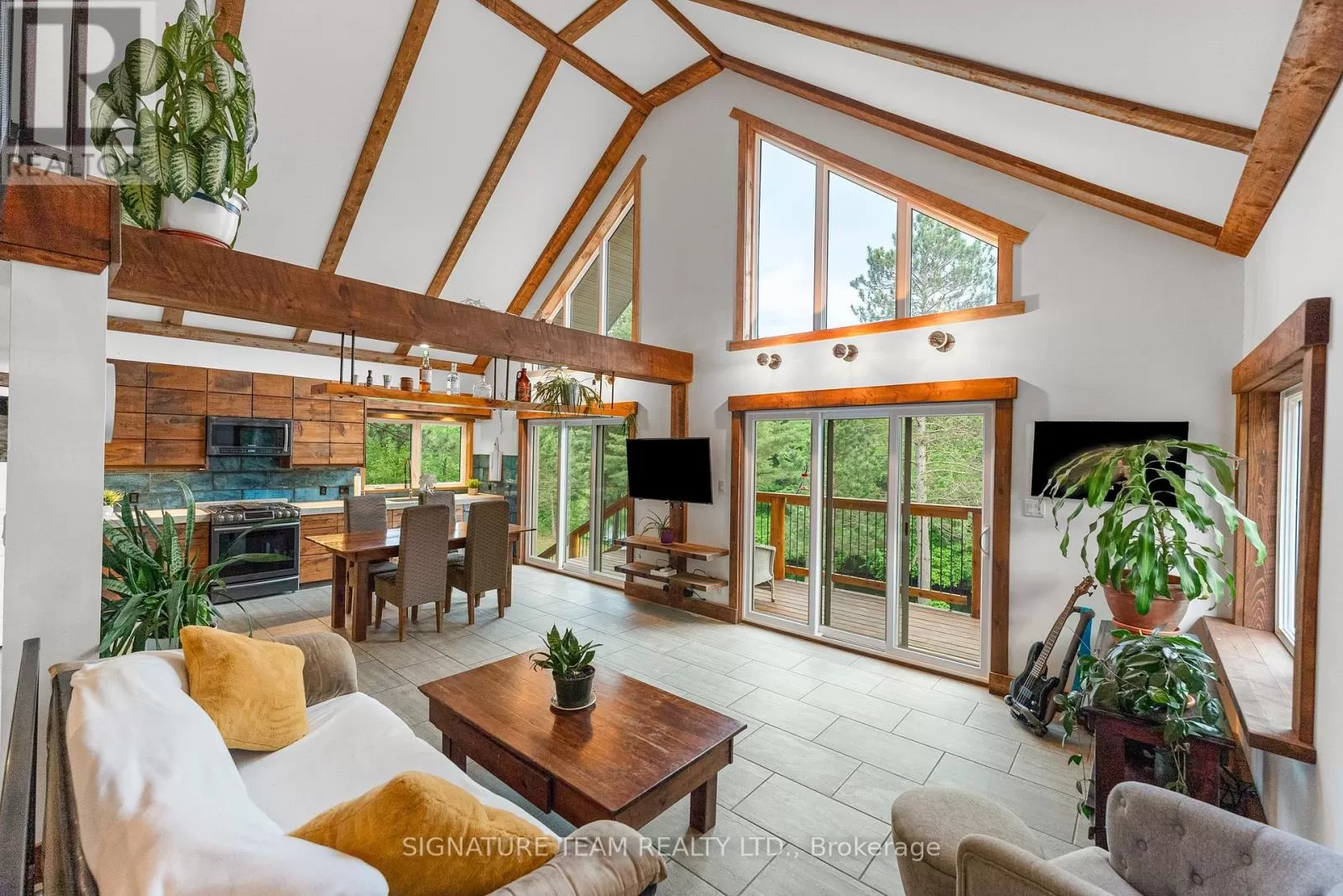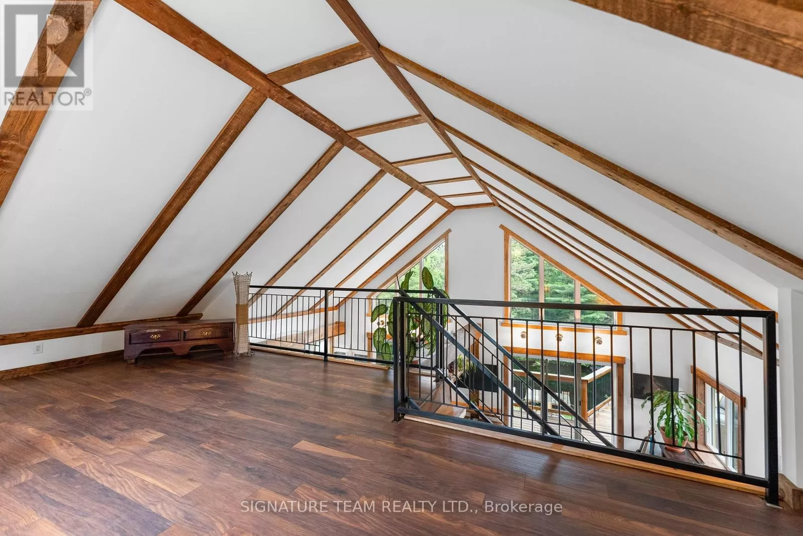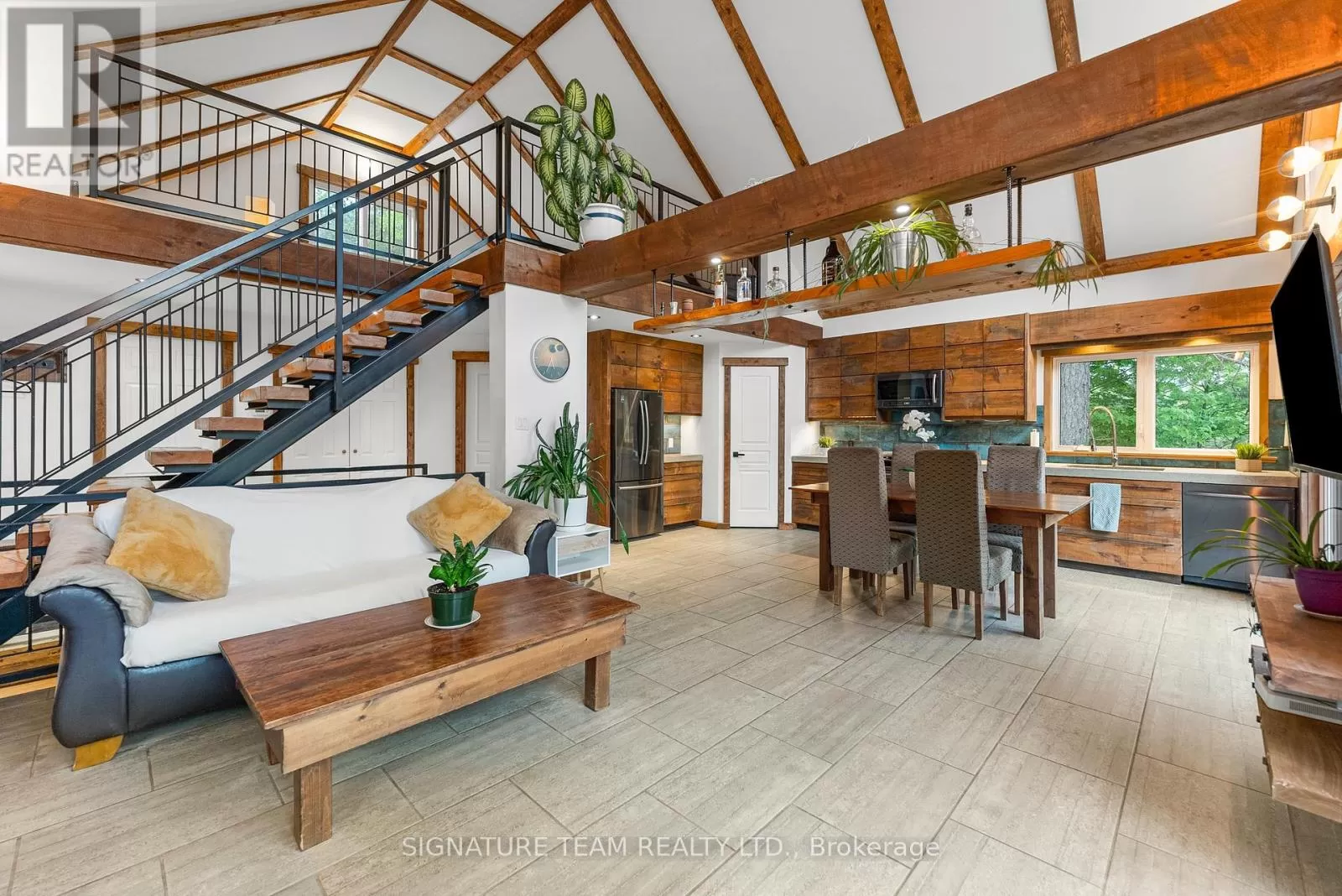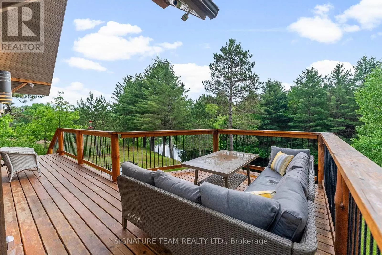Cross Streets: Gunns Road and Round Lake Road. ** Directions: Turn on Gunns Road from Round Lake Rd (58), turn left onto Recoskie Lane to 65B. Stunning year-round riverfront property set on 1.35 acres of peaceful, natural beauty. This thoughtfully designed bungaloft features a walkout basement and composite wood siding exterior, blending comfort with durability. Step out onto the expansive main-level deck that spans the homes width and faces the water, making it perfect for soaking up the southern sun and enjoying uninterrupted views of the river. Below, the interlock masonry patio on the lower level leads to a screened-in gazebo, offering a tranquil, bug-free place for peace and relaxation. From here, follow the stairs down to a 12x16 dock where swimming, paddling, and new memories await. The interior offers a bright, open-concept layout with soaring cathedral ceilings and oversized windows that flood the main floor with natural light. Enjoy in-floor heating on both the main and lower levels, heat pump A/C, and wood stove for year-round comfort. The main level hosts a modern kitchen, living and dining areas, one bedroom, and bathroom. Upstairs, the loft space offers the flexibility of a third sleeping area or home office, complete with a private balcony. Downstairs, the walkout basement features a spacious second living area, bedroom, a full bathroom with laundry warmed by a wood stove, and direct access to the outdoor entertaining area. Great to have seasonal neighbours offering this property lots of privacy without sacrificing access to adventure. Enjoy swimming off the dock in the summer months and float down the river in your favourite tube. The river has a hard-bottom making it great for swimming, kayaking, paddle boarding, and canoeing. From your dock, you can explore the adventure of the Bonnechere River into Round Lake or venture upstream into Algonquin Park. You have access to the snowmobile / ATV trails and kilometers of crown land only a minute from your doorstep. Its a smart move! 48 hour irrevocable. (id:27476)