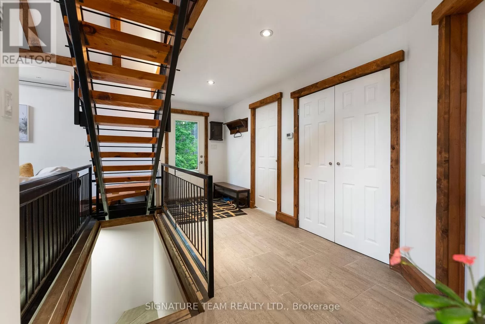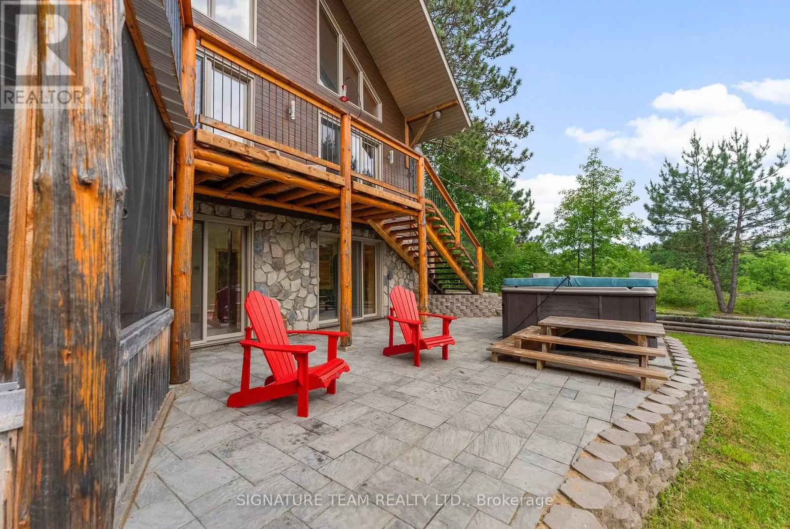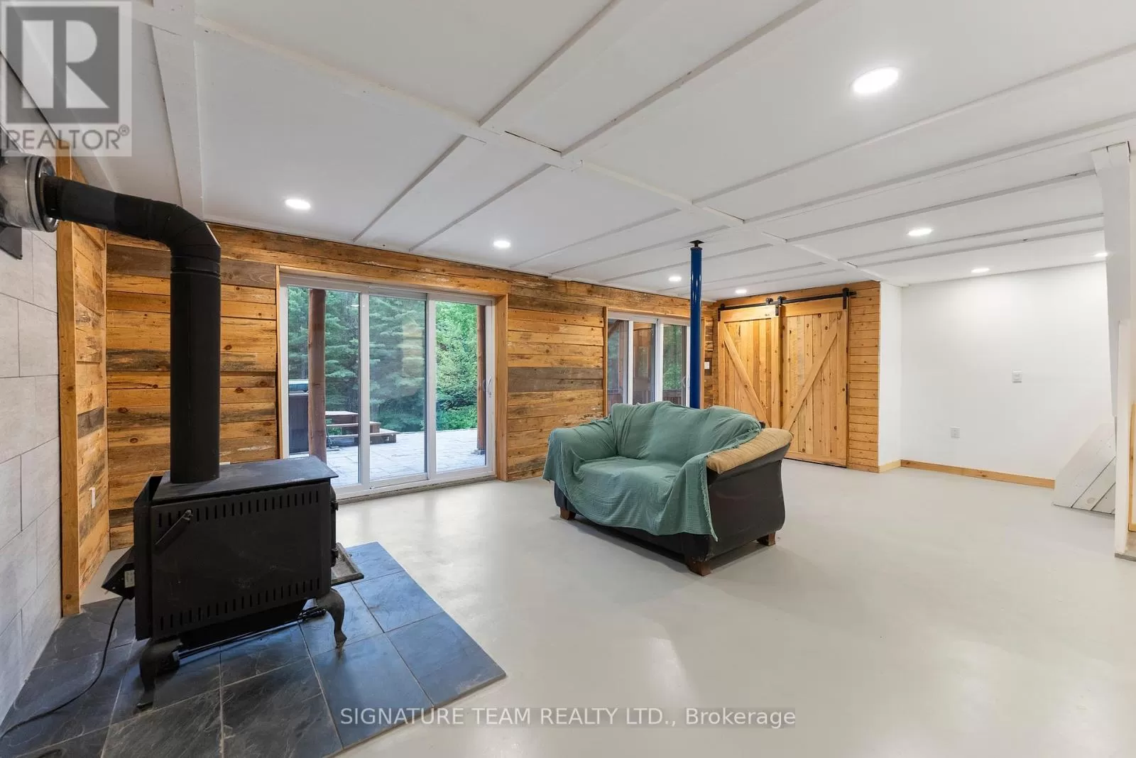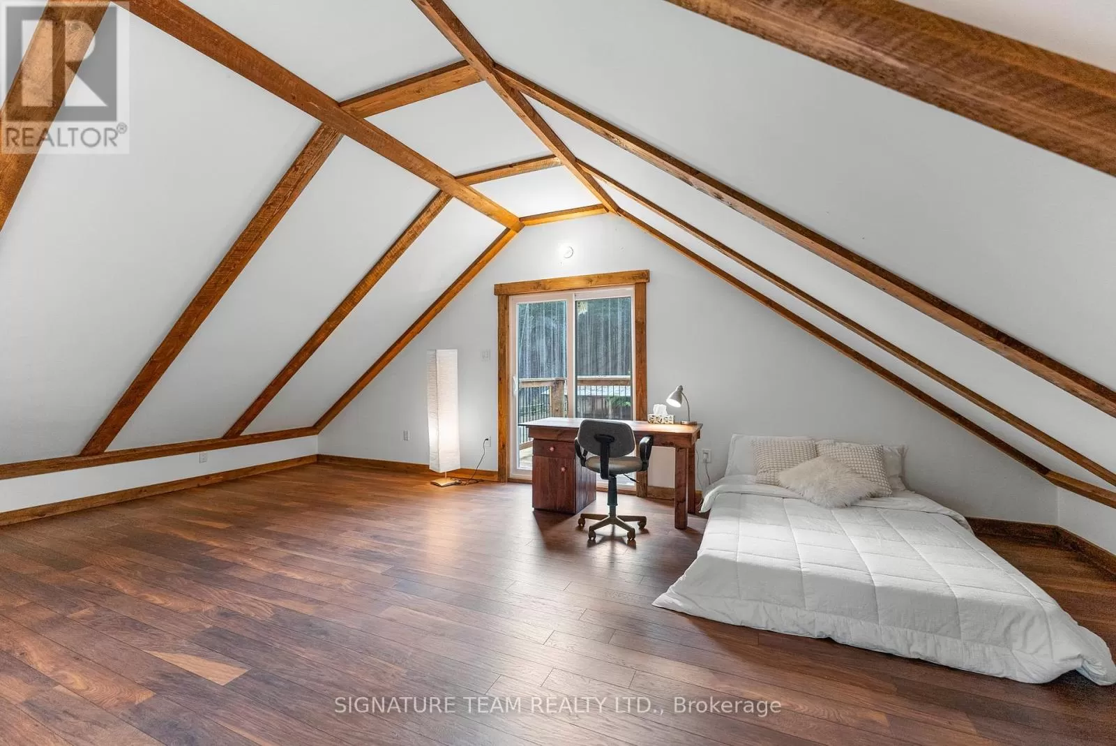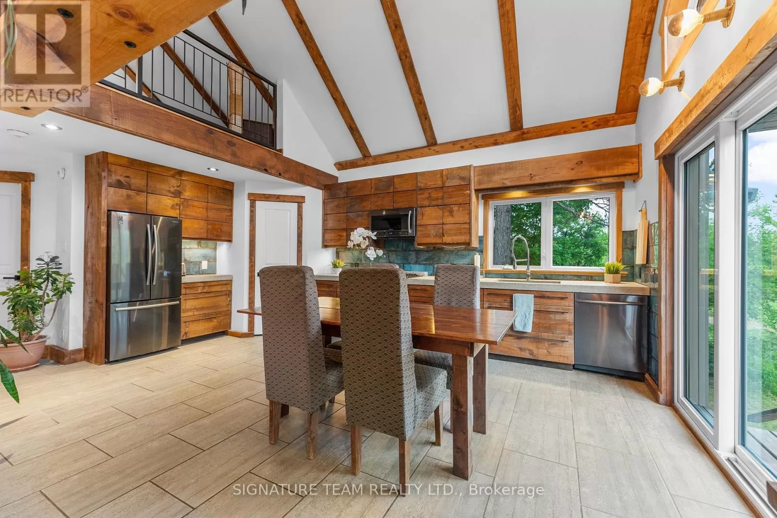 Cross Streets: Gunns Road and Round Lake Road. ** Directions: Turn on Gunns Road from Round Lake Rd (58), turn left onto Recoskie Lane to 65B. Stunning year-round riverfront property set on 1.35 acres of peaceful, natural beauty. This thoughtfully designed bungaloft features a walkout basement and composite wood siding exterior, blending comfort with durability. Step out onto the expansive main-level deck that spans the homes width and faces the water, making it perfect for soaking up the southern sun and enjoying uninterrupted views of the river. Below, the interlock masonry patio on the lower level leads to a screened-in gazebo, offering a tranquil, bug-free place for peace and relaxation. From here, follow the stairs down to a 12x16 dock where swimming, paddling, and new memories await. The interior offers a bright, open-concept layout with soaring cathedral ceilings and oversized windows that flood the main floor with natural light. Enjoy in-floor heating on both the main and lower levels, heat pump A/C, and wood stove for year-round comfort. The main level hosts a modern kitchen, living and dining areas, one bedroom, and bathroom. Upstairs, the loft space offers the flexibility of a third sleeping area or home office, complete with a private balcony. Downstairs, the walkout basement features a spacious second living area, bedroom, a full bathroom with laundry warmed by a wood stove, and direct access to the outdoor entertaining area. Great to have seasonal neighbours offering this property lots of privacy without sacrificing access to adventure. Enjoy swimming off the dock in the summer months and float down the river in your favourite tube. The river has a hard-bottom making it great for swimming, kayaking, paddle boarding, and canoeing. From your dock, you can explore the adventure of the Bonnechere River into Round Lake or venture upstream into Algonquin Park. You have access to the snowmobile / ATV trails and kilometers of crown land only a minute from your doorstep. Its a smart move! 48 hour irrevocable. (id:27476)