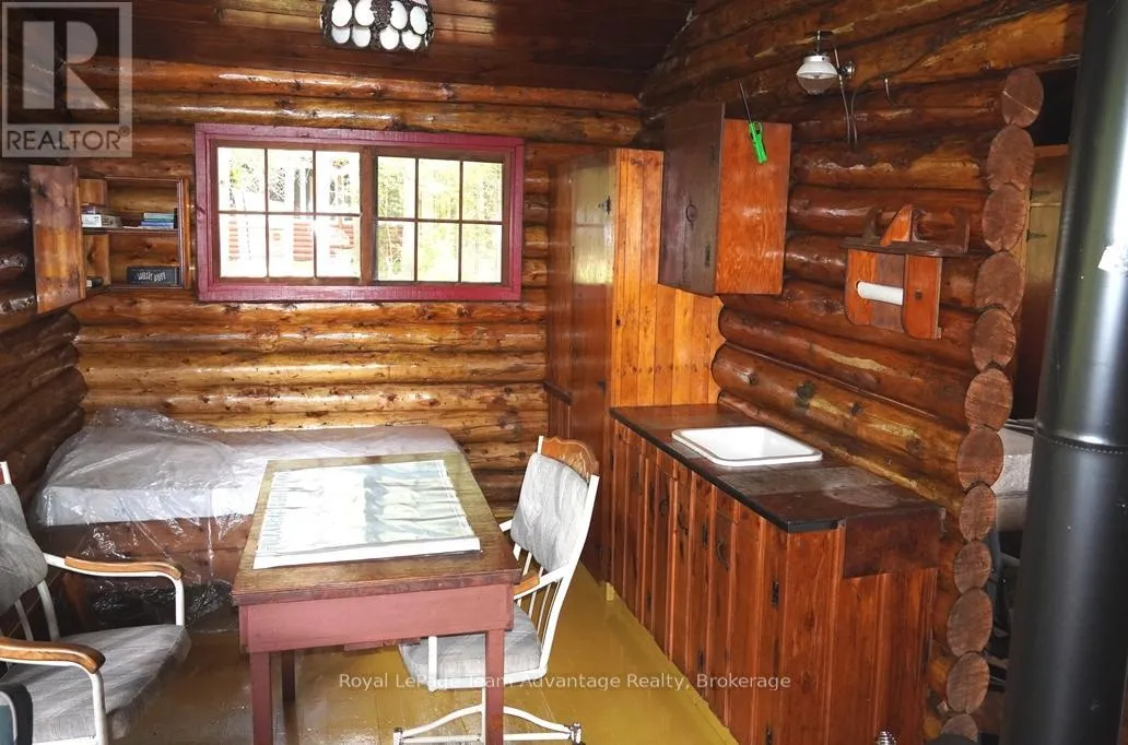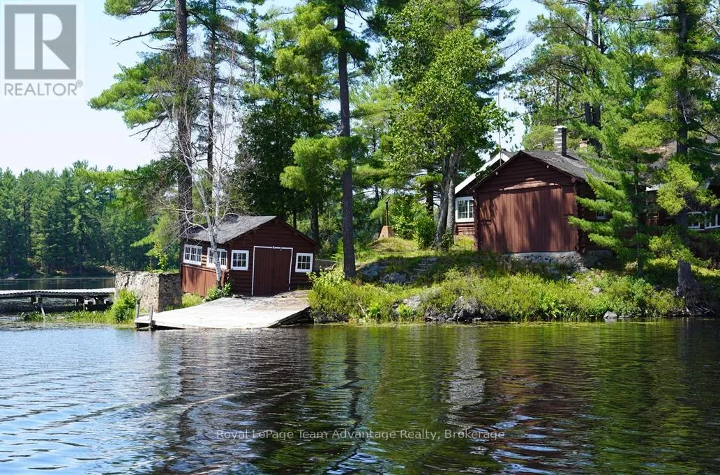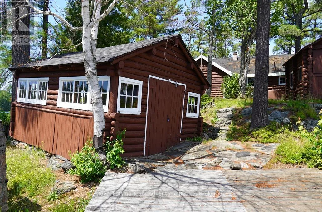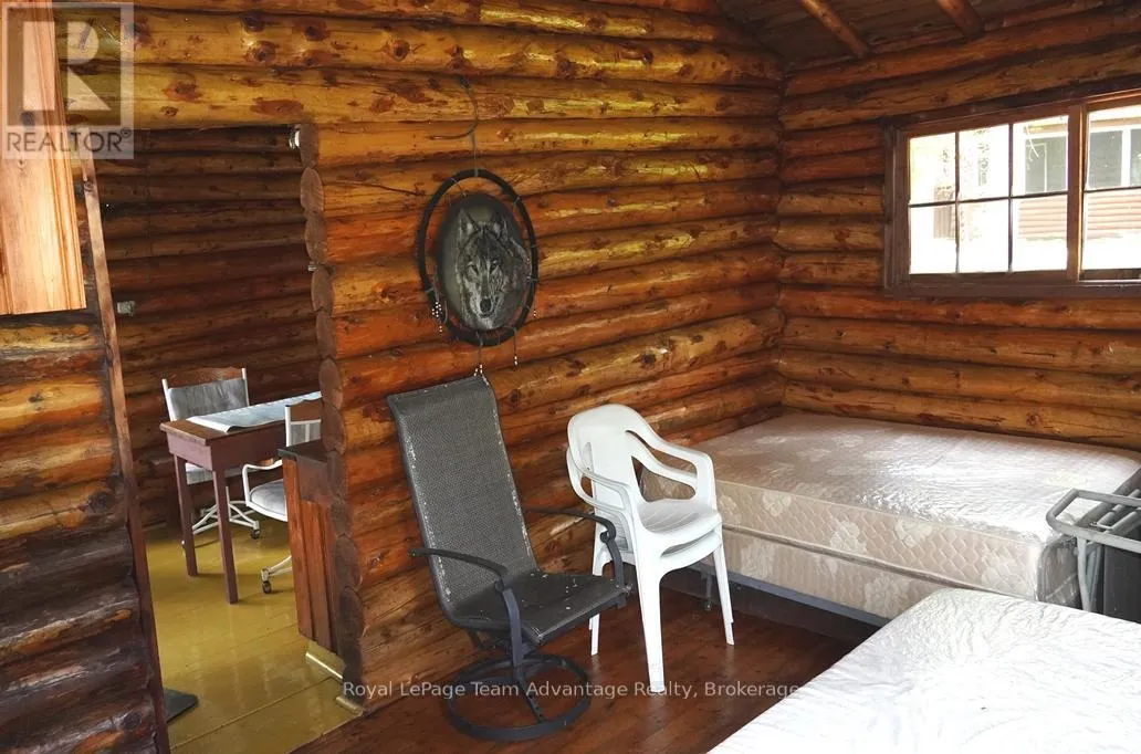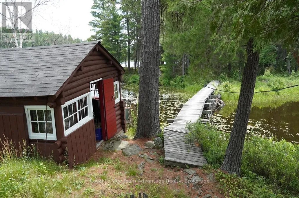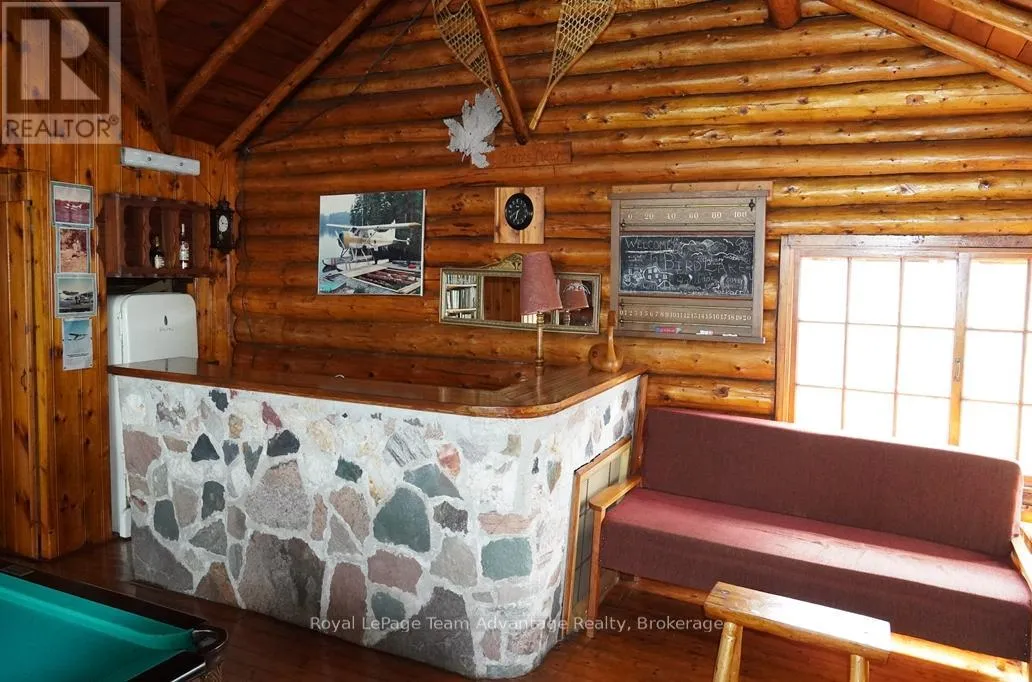 Cross Streets: N/A. ** Directions: From Highway 637, take the logging road to the north end of the lake. Take your own boat to the Island or take a float plane. Exceptional Island and mainland property on Remote Bird Lake. A once in a lifetime opportunity to own an extraordinary island and mainland package on serene and secluded Bird Lake where only two other private properties exist. Surrounded by mature white pines and untouched natural beauty this unique retreat offers a true escape from the modern world. The island features a striking original log-constructed lodge anchored by a spacious great room with a natural stone fireplace, built-in bar and billiard table. A large kitchen with a breakfast area flows into a distinctive hexagon-shaped dining room offering panoramic views over the lake. Additional island structures include a dry boathouse and a traditional sauna building. A charming walkway connects the island to the mainland where four rustic log cabins provide additional guest accommodations. An ice house and generator are also included for off-grid convenience. Bird Lake is celebrated for its excellent smallmouth bass fishing and breathtaking surroundings. Access is by floatplane or rugged SUV via a logging road that reaches the northern end of the lake making this property the ultimate private getaway for anglers, nature lovers or those seeking something truly rare. (id:27476)