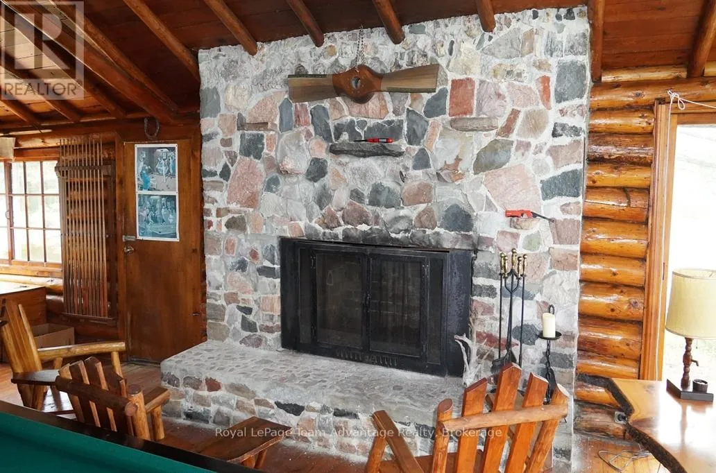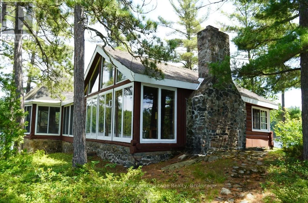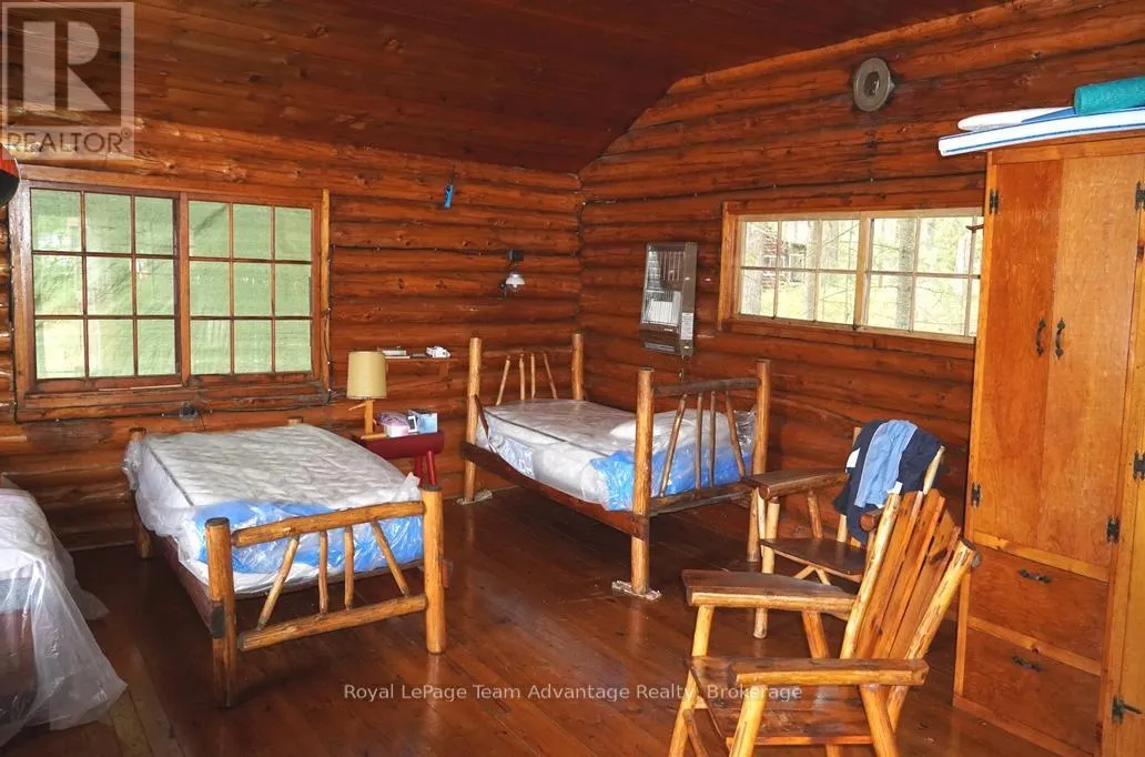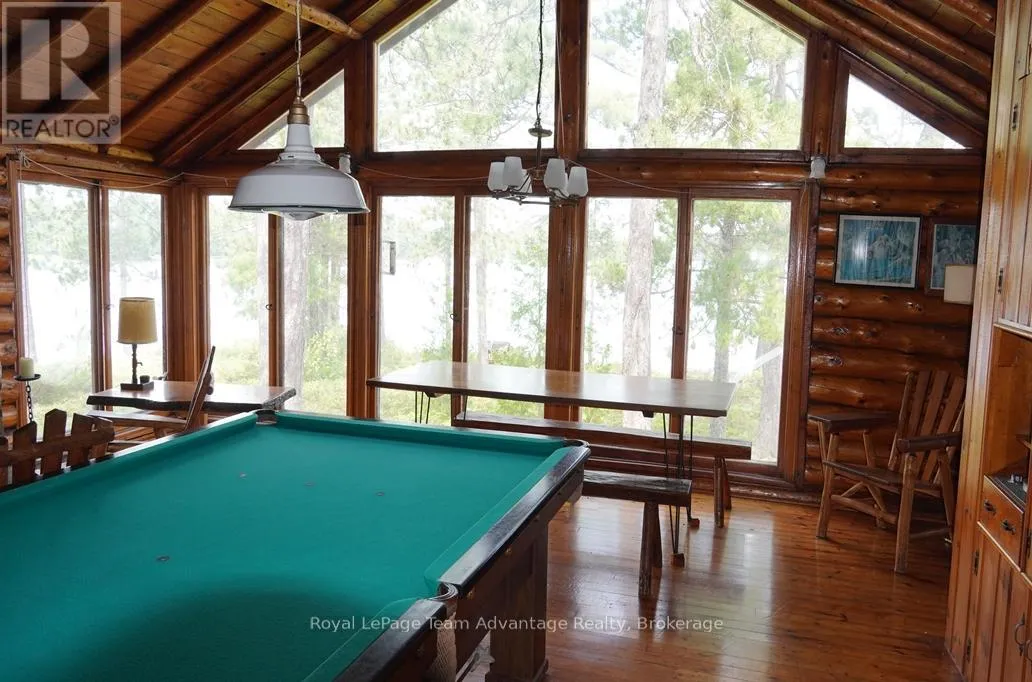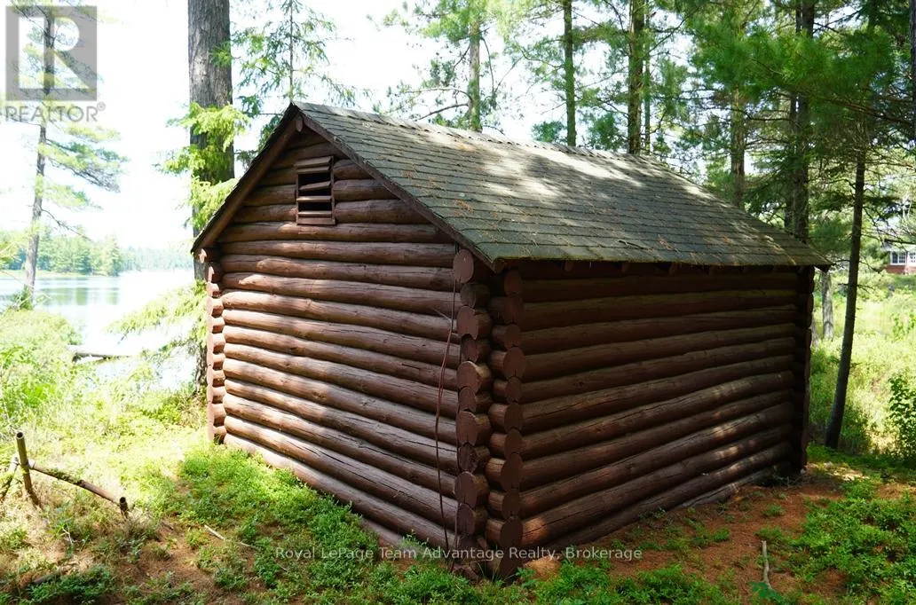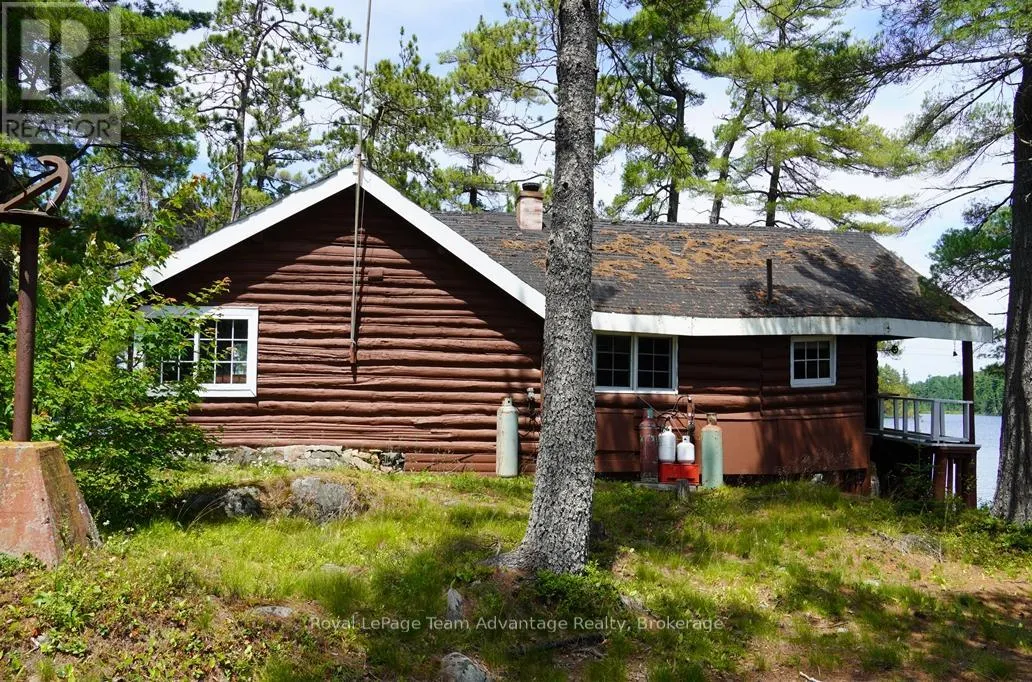 Cross Streets: N/A. ** Directions: From Highway 637, take the logging road to the north end of the lake. Take your own boat to the Island or take a float plane. Exceptional Island and mainland property on Remote Bird Lake. A once in a lifetime opportunity to own an extraordinary island and mainland package on serene and secluded Bird Lake where only two other private properties exist. Surrounded by mature white pines and untouched natural beauty this unique retreat offers a true escape from the modern world. The island features a striking original log-constructed lodge anchored by a spacious great room with a natural stone fireplace, built-in bar and billiard table. A large kitchen with a breakfast area flows into a distinctive hexagon-shaped dining room offering panoramic views over the lake. Additional island structures include a dry boathouse and a traditional sauna building. A charming walkway connects the island to the mainland where four rustic log cabins provide additional guest accommodations. An ice house and generator are also included for off-grid convenience. Bird Lake is celebrated for its excellent smallmouth bass fishing and breathtaking surroundings. Access is by floatplane or rugged SUV via a logging road that reaches the northern end of the lake making this property the ultimate private getaway for anglers, nature lovers or those seeking something truly rare. (id:27476)