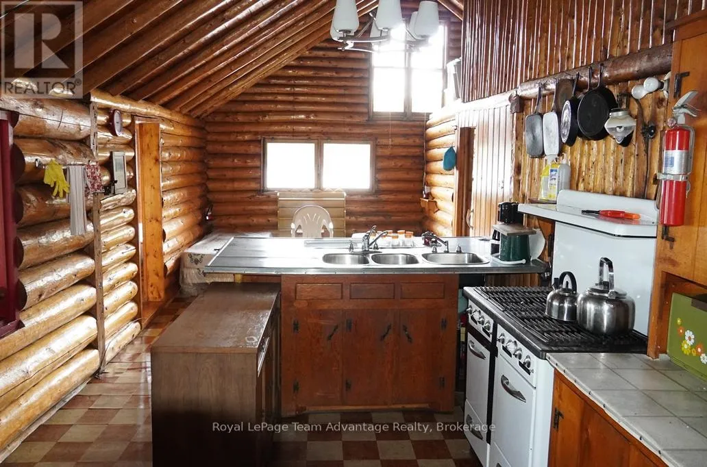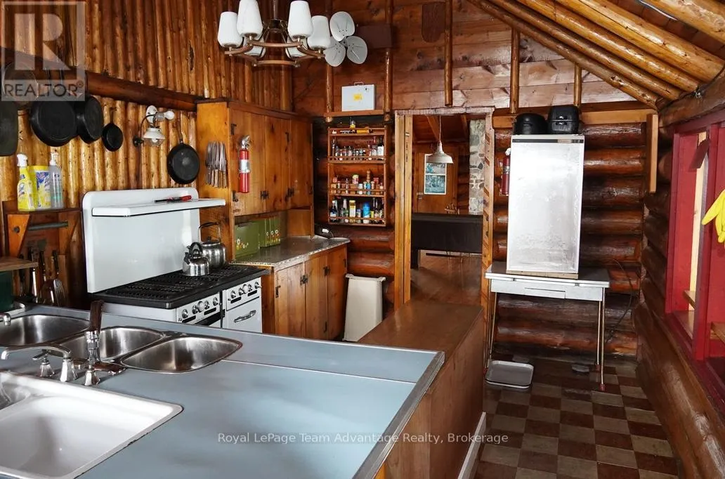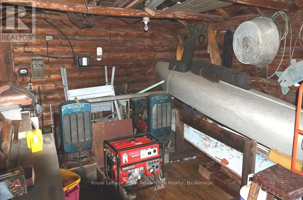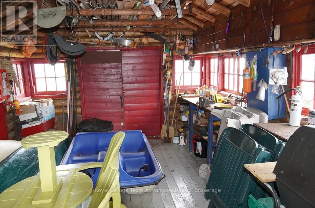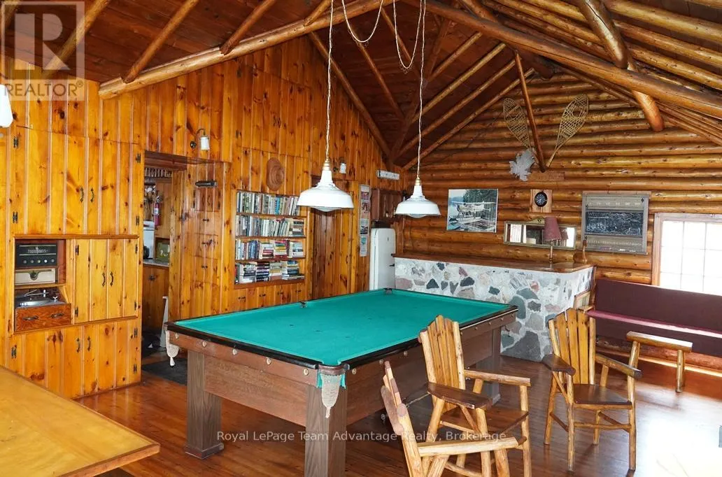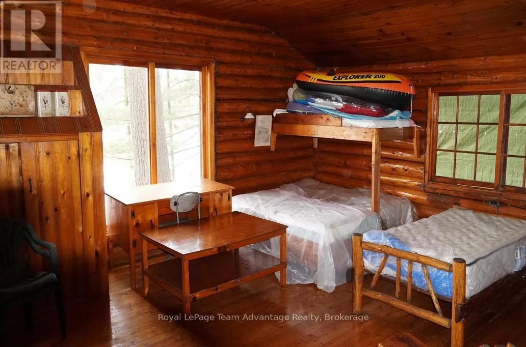 Cross Streets: N/A. ** Directions: From Highway 637, take the logging road to the north end of the lake. Take your own boat to the Island or take a float plane. Exceptional Island and mainland property on Remote Bird Lake. A once in a lifetime opportunity to own an extraordinary island and mainland package on serene and secluded Bird Lake where only two other private properties exist. Surrounded by mature white pines and untouched natural beauty this unique retreat offers a true escape from the modern world. The island features a striking original log-constructed lodge anchored by a spacious great room with a natural stone fireplace, built-in bar and billiard table. A large kitchen with a breakfast area flows into a distinctive hexagon-shaped dining room offering panoramic views over the lake. Additional island structures include a dry boathouse and a traditional sauna building. A charming walkway connects the island to the mainland where four rustic log cabins provide additional guest accommodations. An ice house and generator are also included for off-grid convenience. Bird Lake is celebrated for its excellent smallmouth bass fishing and breathtaking surroundings. Access is by floatplane or rugged SUV via a logging road that reaches the northern end of the lake making this property the ultimate private getaway for anglers, nature lovers or those seeking something truly rare. (id:27476)