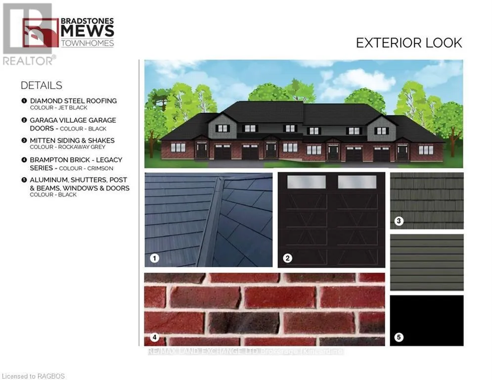 From Queen Street, Kincardine, turn west on to Golf Links Road and enter driveway at #8 Golf Links Rd.. Home in on left , 4th house in Block #1 Bradstones Mews is the newest upscale townhome development in Kincardine, consisting of 36 residences located just a short distance to the beach and the downtown core. The homes will range in size from 1870 sq.ft. for the 1.5 storey home to 2036 sq.ft for the 2 storey style. Compared to other available options , these homes will be much larger and feature full basements. The basements can be finished (at additional cost) to provide almost 3000 sq.ft. of finished living area. Take a look at the Builder's Schedule A to see all the features that home buyers have come to expect from Bradstones Construction. This development will be offered as a "vacant land condominium" where you pay a common element fee (condo fee) of $190 per month to maintain the roadways and infrastructure and still have exclusive ownership of your lot and building. Call today for the best selection in this exciting new development. Some photos are Artist Rendering, final product may differ. (id:27476)