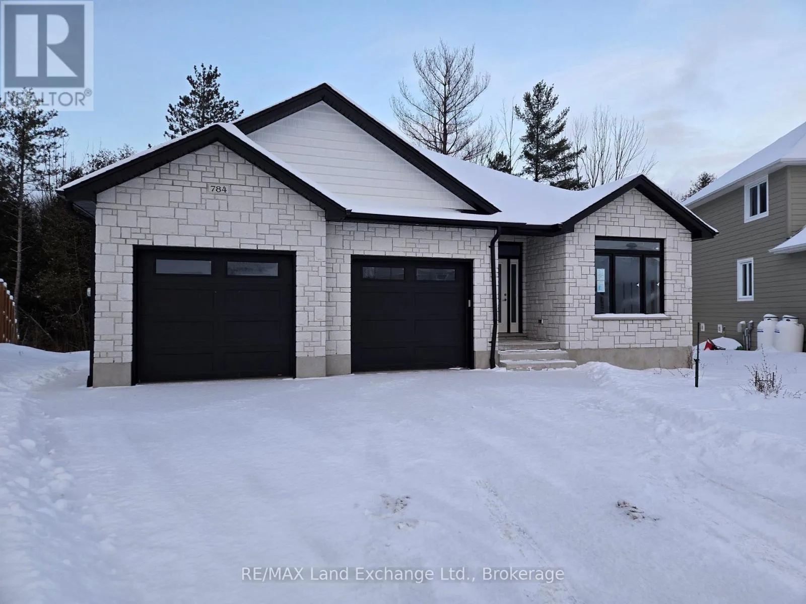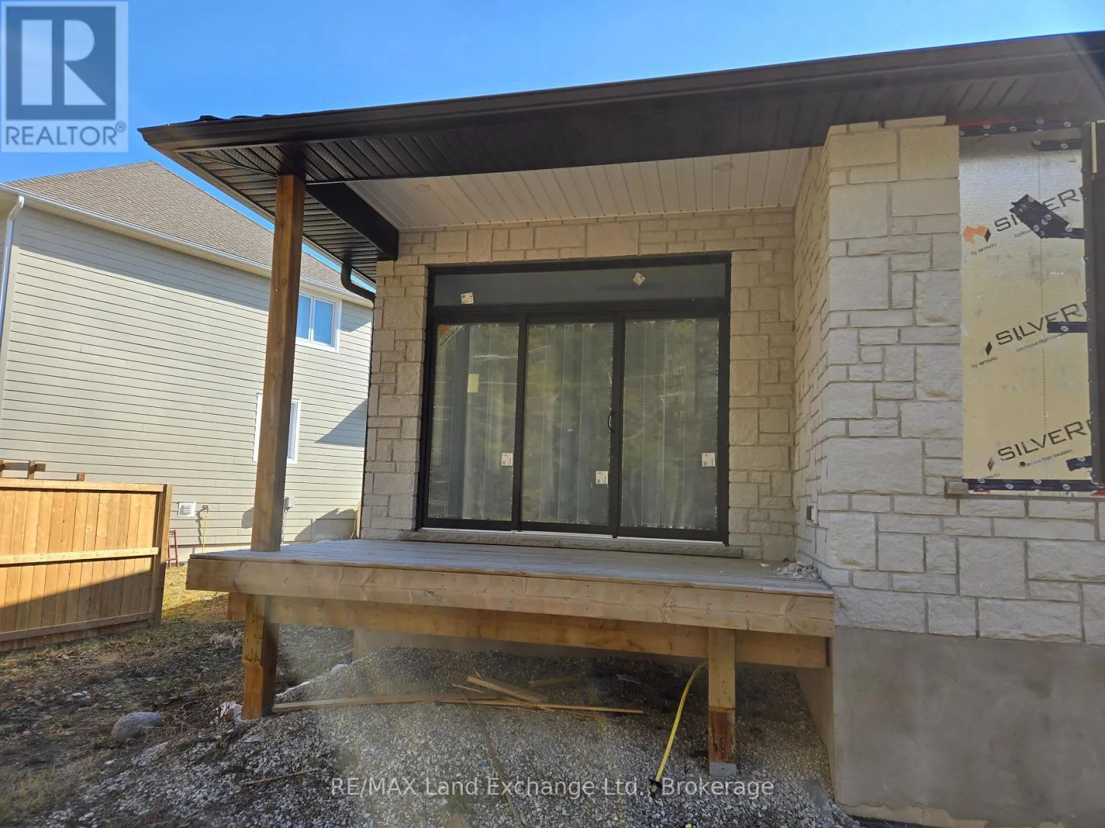 Kincardine - Highway #21 to Russell to Campbell and north. Ravine location brick bungalow, this home is basically completed. Features finished lower level and many special features: AYA kitchen with granite or quartz countertops, center island and walk-in pantry. Patio doors from dinette to covered deck; open concept living / dining / kitchen area, with fireplaces in living areas up and down. Walk-in closets in both main floor bedrooms. Combination garage - entry and main floor laundry and mudroom. Pony panel has been installed to enable a substantial stationary electricity generator. Lower level finished with two extra bedrooms or special purpose rooms; third full bath; huge 16' X 25' family room with fireplace; walkout from utility area to full 2-car garage.1523 square-feet on main floor plus 1323 finished down. All this near parkland and Kincardine trail access and only four blocks to downtown, schools and arena / community centre. Yard will be sodded front and rear. Please note room measurements have been rounded.. (id:27476)