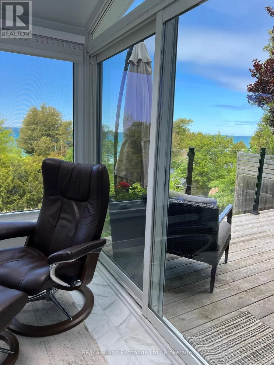 Cross Streets: Penetangore Row & Bruce Ave. ** Directions: Hwy 21 to Kincardine Ave, West to Penetangore Row, turn left, property is located on the west side. If a lakeside lifestyle beckons you, welcome to 222 Penetangore Row in Kincardine. Exuding warmth and ambience, this most desirable year-round home is located on a sought after street in Kincardine, close to the sand beach and Boardwalk, harbour and downtown shopping. The bonus: this stylish, contemporary home enjoys incomparable views of Lake Huron, enjoys the world famous sunsets and sounds of crashing waves from the myriad of windows and the privacy of its sunroom and backyard deck. Upon arrival at the property, you will note the spacious front windows and modern facade, stepping into the foyer you are welcomed by a great room with soaring ceiling, abundance of windows plus striking black brick wall enhanced by a gas fireplace. The open floor plan further leads to a modern kitchen complete with granite countertops and s/s appliances; a dining area beautifully complimented by the stunning views; a three-season sunroom which, with 3 walls of windows, allows endless hours enjoying those panoramic views; and a deck from the sunroom on which to relax during those lazy, hazy days of summer. Stairs from the great room lead up to a landing, open to below, and two spacious bedrooms each with those captivating views, plus 4 piece bathroom. The lower level offers a family room complete with newer bar area, newly completed 3rd bedroom or workout room, laundry/utility room and storage with walkout to backyard. The home has enjoyed many upgrades in the last five years including new siding, front door and garage doors; shingles, skylight and windows; main floor bathroom and kitchen appliances. AND for those looking for an exclusive investment property, this would be ideal as an executive rental in the winter months and a weekly rental in the summer months considering its location, amenities and proximity to the beach, harbour, downtown and restaurants.... (id:27476)