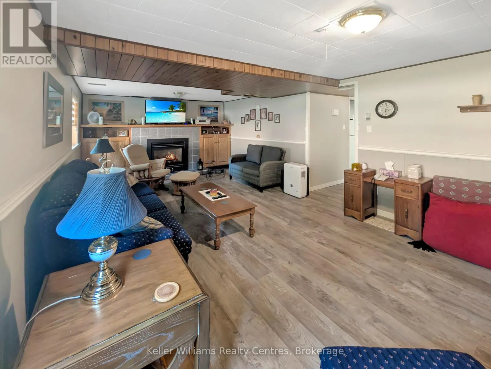 Cross Streets: Highway 21 and Bruce Road 15. ** Directions: Head west on Bruce Road 15 from Highway 21. Continue into Inverhuron- almost to the end of the road,turn left on Victoria. Welcome to this beautifully maintained one-owner home nestled in the heart of Inverhuron, where pride of ownership shines throughout. The main floor features a warm and inviting sunroom that opens onto a stunning backyard oasis perfect for morning coffee or evening relaxation. The bright living room offers a cozy place to unwind, with a peek of the lake just beyond the trees. With 2 spacious bedrooms on the main level and an additional 2 bedrooms in the fully finished basement, there's room for family and guests alike. The lower level also includes a 3-piece bathroom, a generous family/rec room with a fireplace, and a dedicated office space, ideal for working from home or hobbies. Outside, you'll fall in love with the elegant yard bursting with beautiful flowers and mature trees. Soak in the serenity from your private hot tub, surrounded by nature and backing onto a protected forest for total privacy. A detached 2-car garage offers ample storage and parking, with additional space for vehicles and toys, plus a handy garden shed for your tools and lawn mower. Located just minutes from the beach in the quaint lakeside community of Inverhuron, and only a short drive to nearby amenities, 5 minute walk to the beach, minutes to Inverhuron park, short 7 minute drive to Bruce Power and 15 minutes to Kincardine. This home truly offers the best of both worlds, tranquil cottage living with everyday convenience. (id:27476)